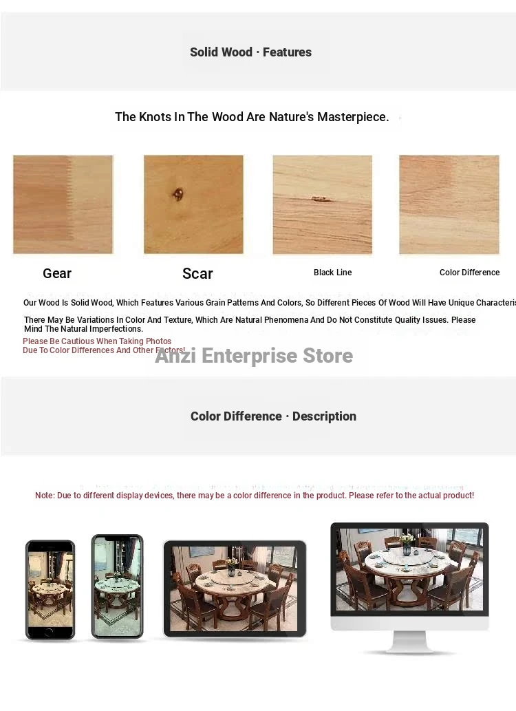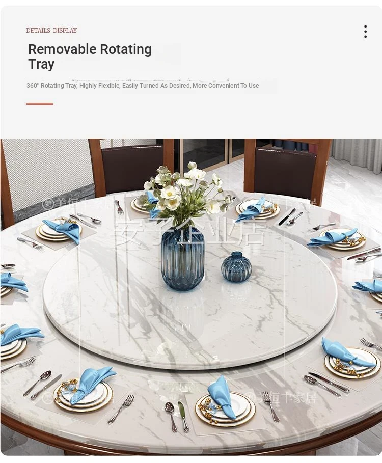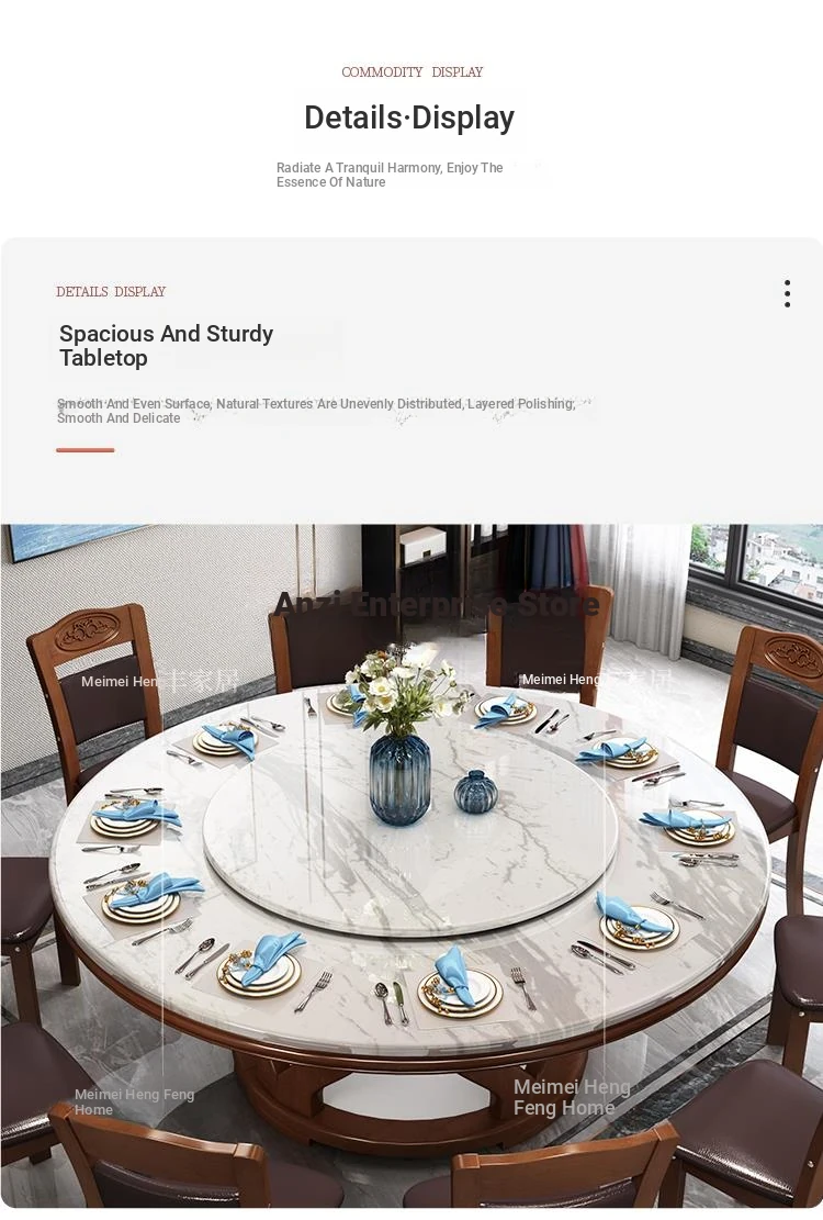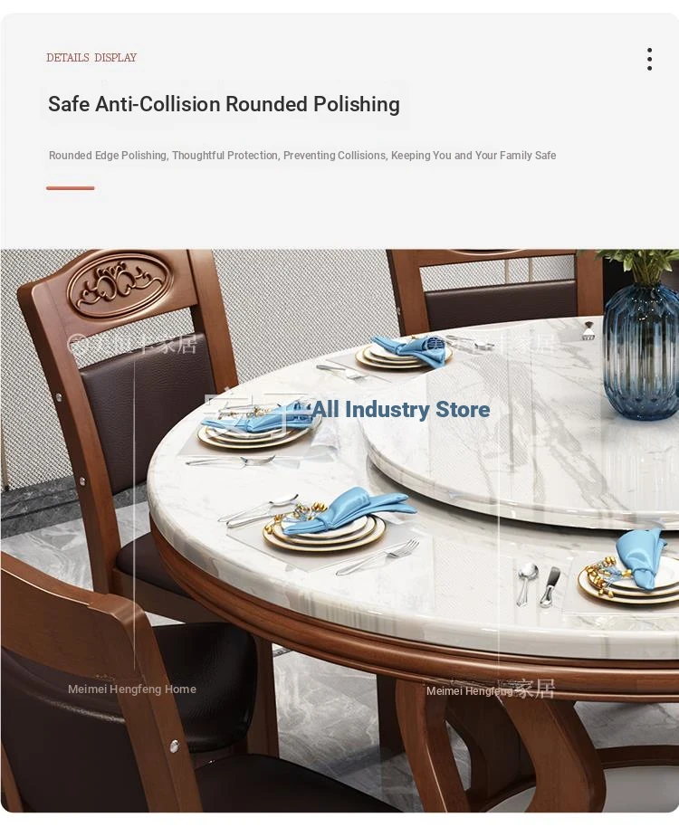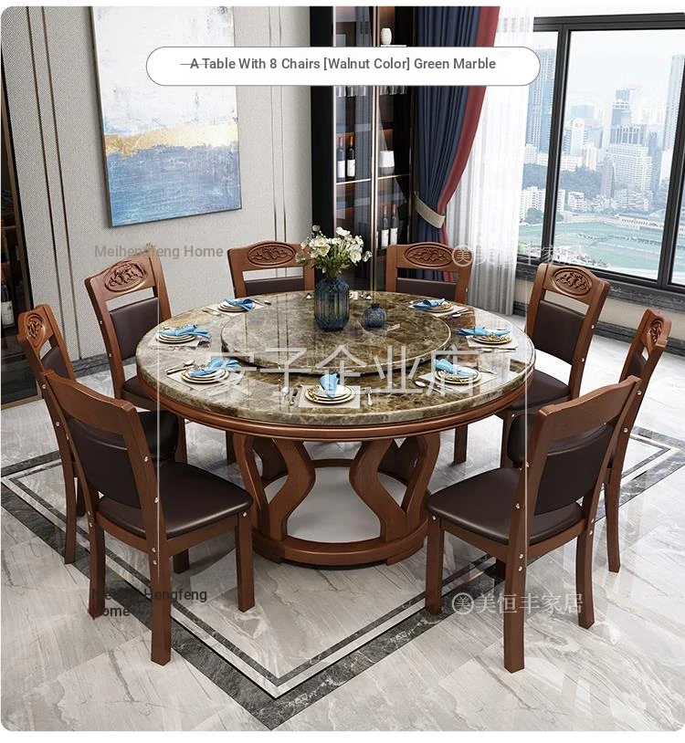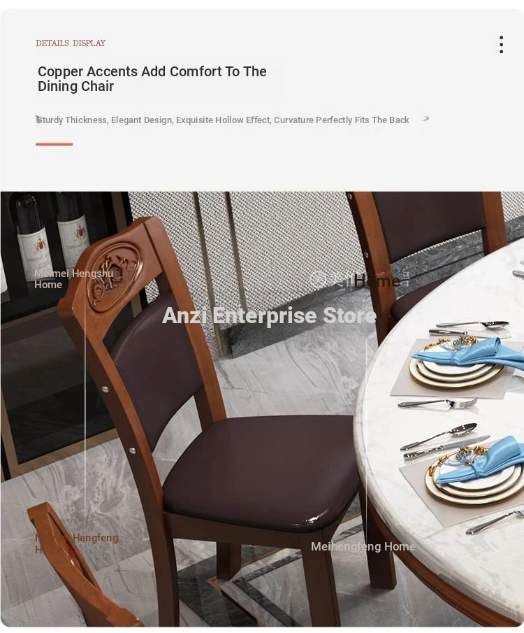 Modern Minimalist New Chinese Style Solid Wood Marble Dining Table and Chair Set for Small Homes - Round Dining Table with Rock Slab Top