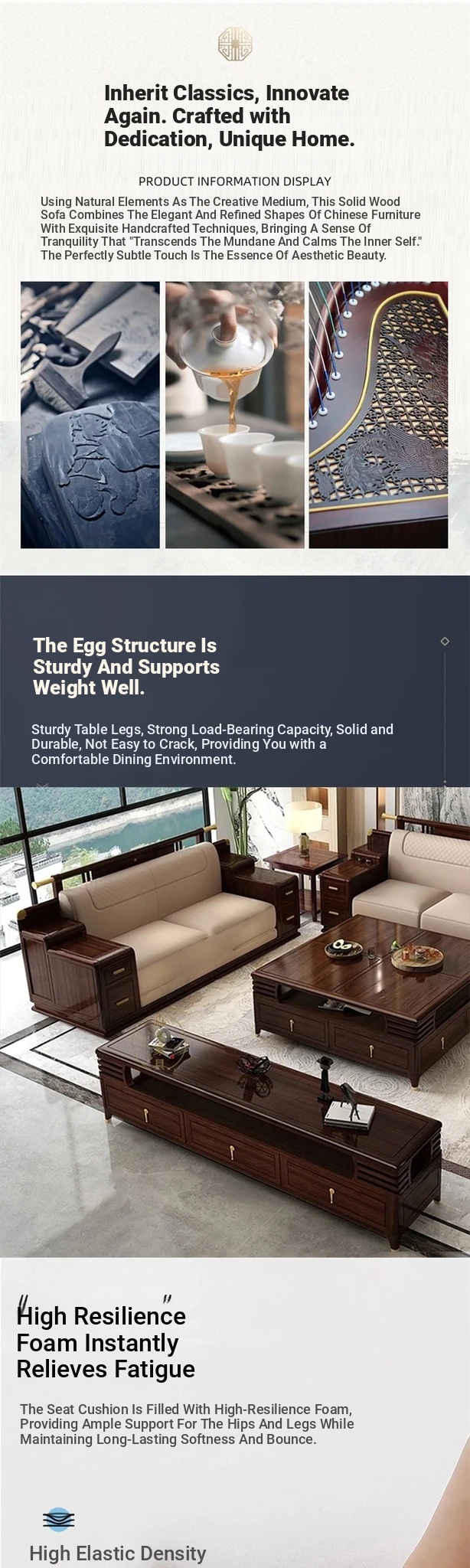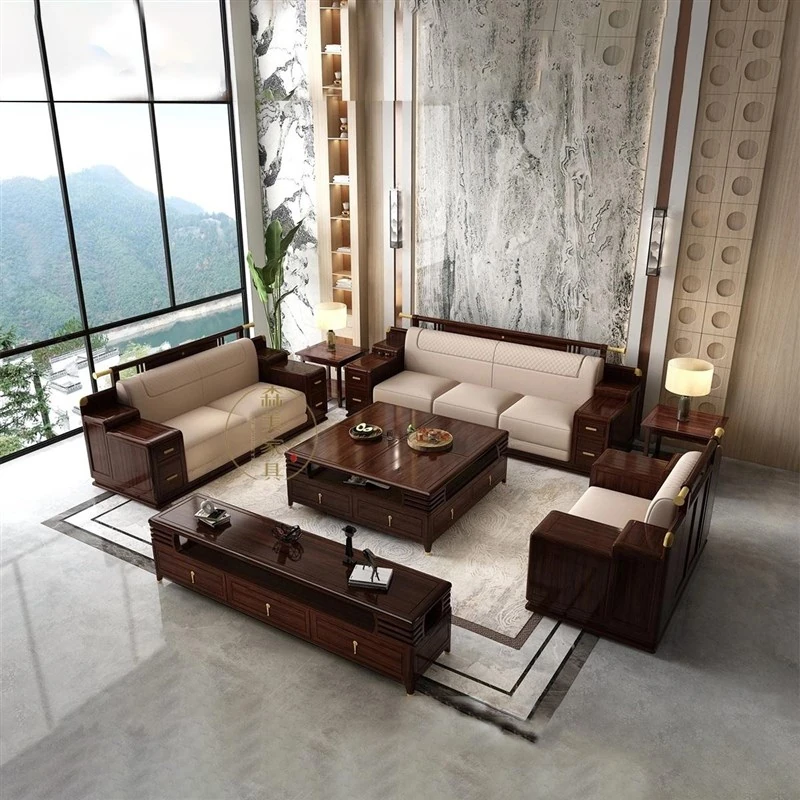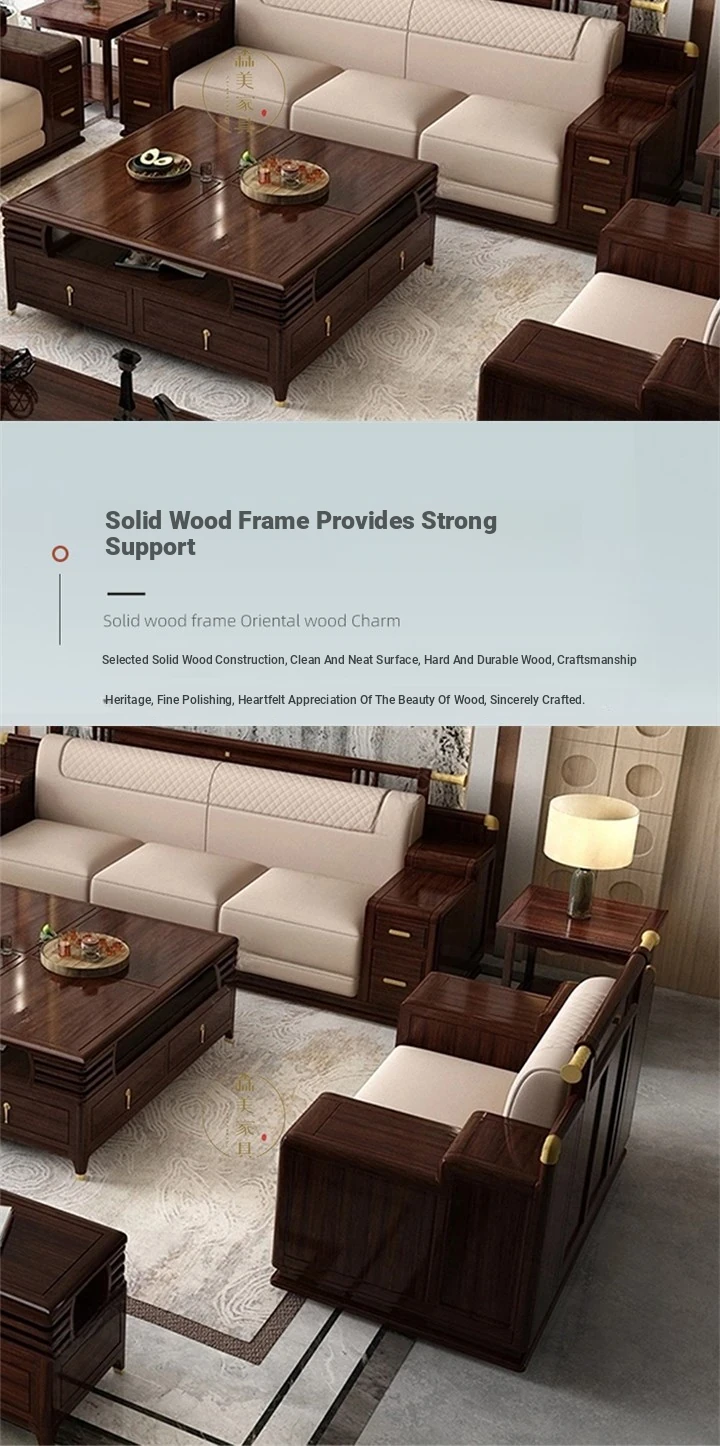 Modern Minimalist New Chinese Style Solid Wood Sofa Set for Small Apartments - Zen-Inspired Ash Wood Furniture for Your Living Room - Perfect Combination of Elegance and Functionality