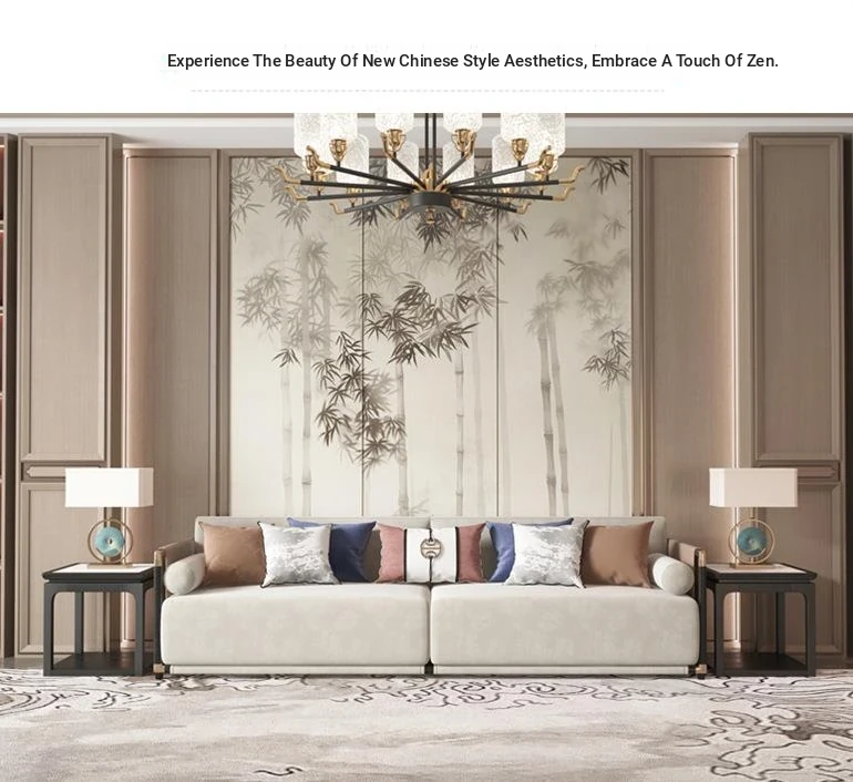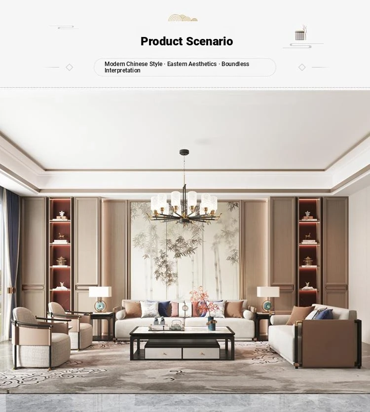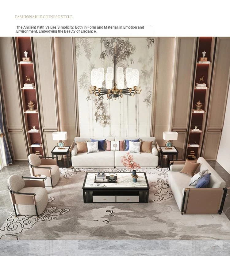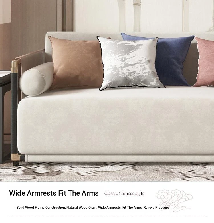 Modern Minimalist New Chinese Style Solid Wood Sofa Set - Luxurious Fabric and Leather Combination for All Apartment Sizes, Perfect for Showroom Living Rooms