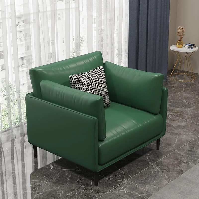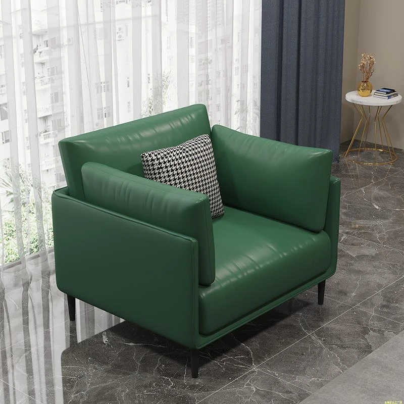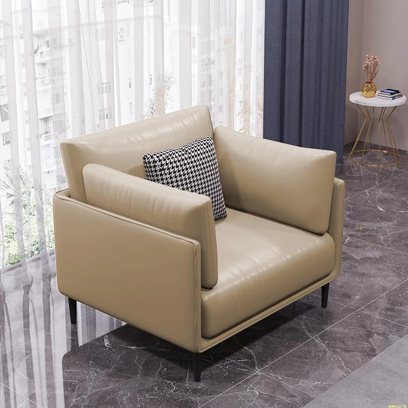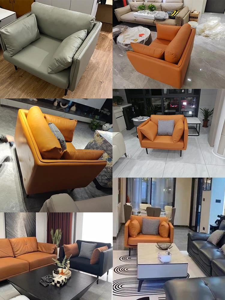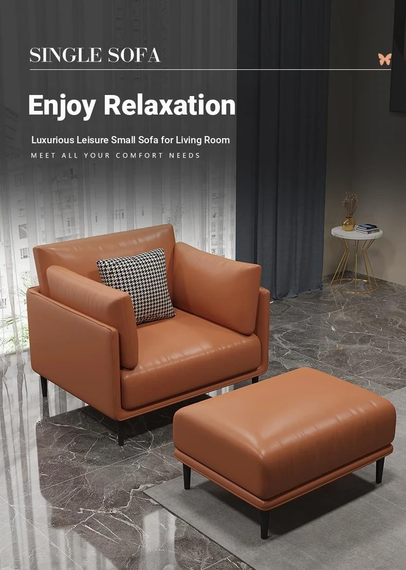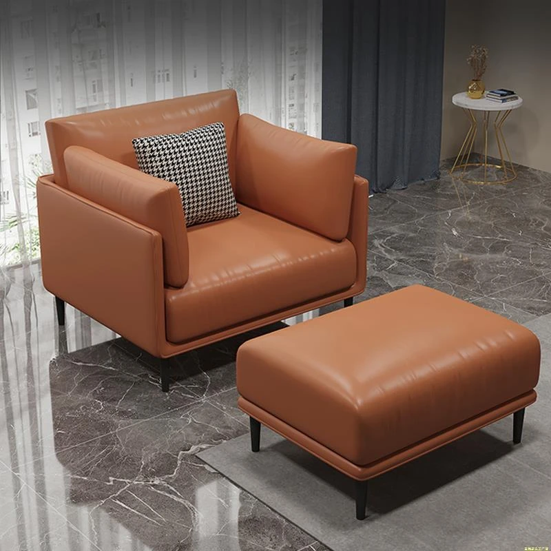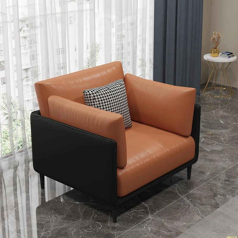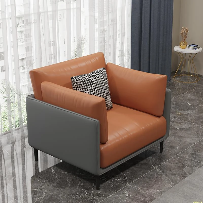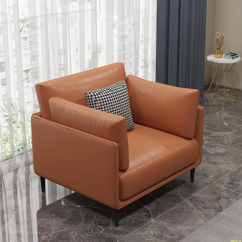 Modern Minimalist Orange Leather Single Sofa Chair - Chic and Comfortable Armchair for Living Room and Reception, Perfect for One Person
