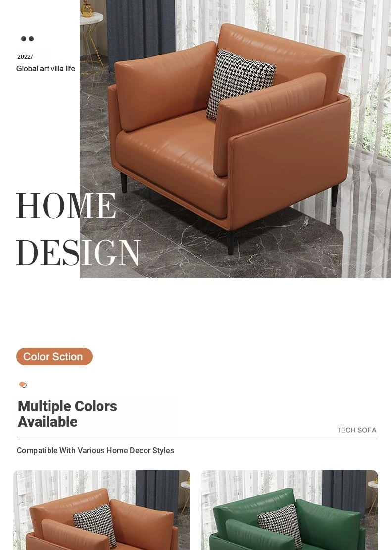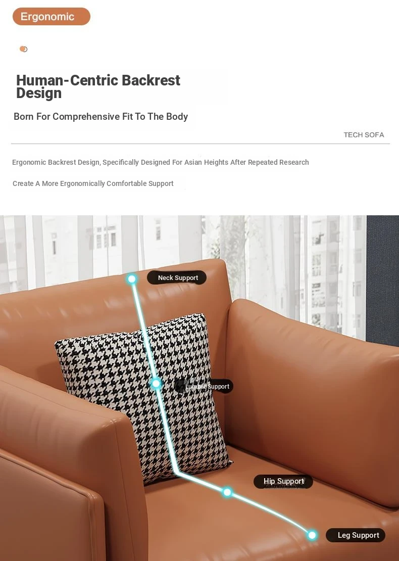 Single person sofa + pedal [Amars Orange] Ultra-fiber leather pillow-#