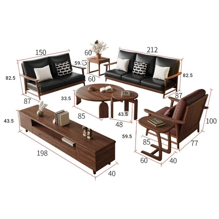 Modern Minimalist Solid North American Black Walnut Sofa Set for Living Room - Versatile Winter/Summer Use, Chinese Style Combination for Villas