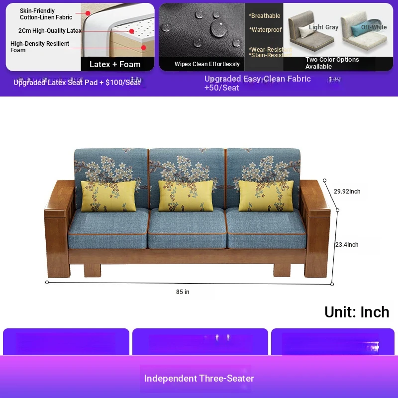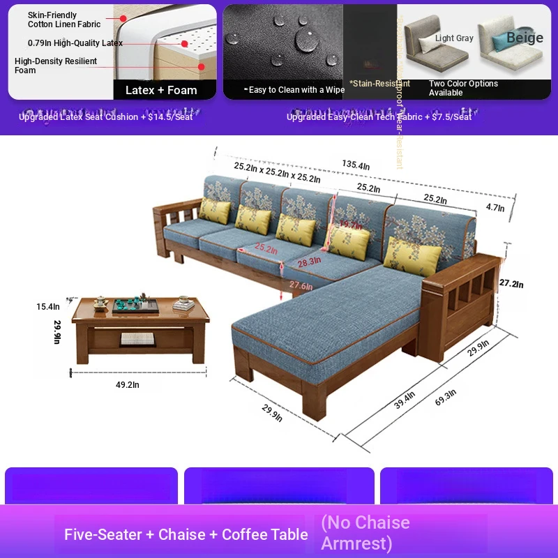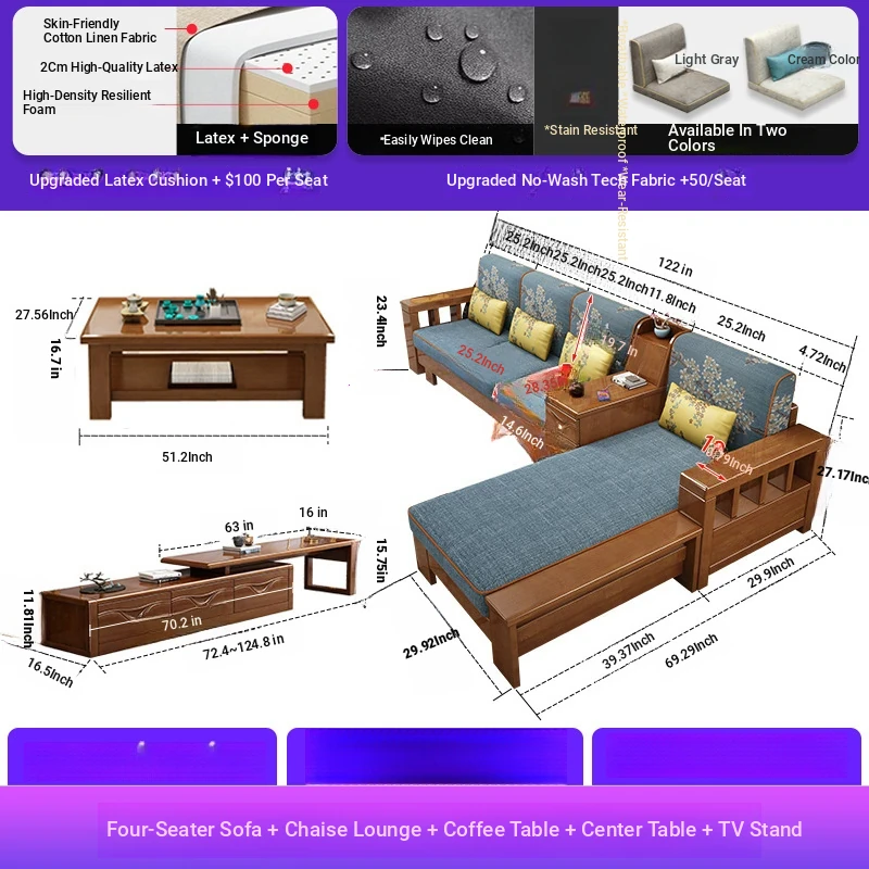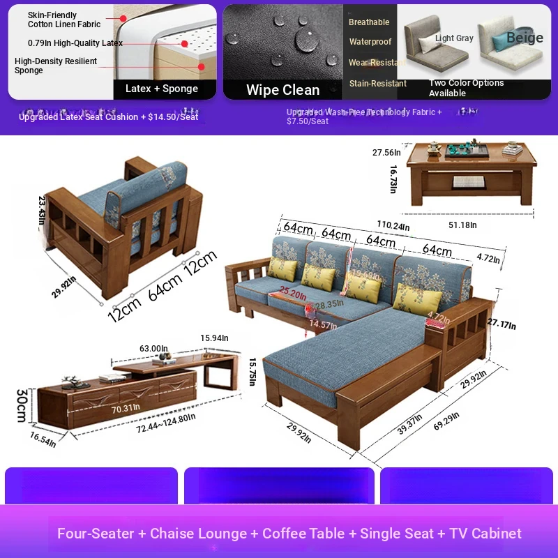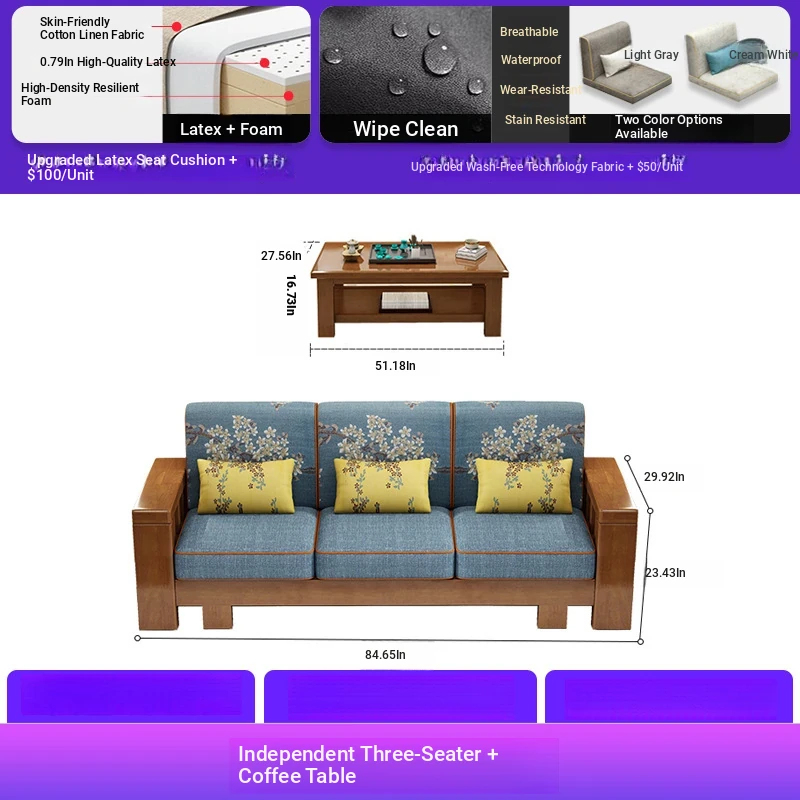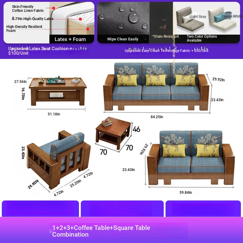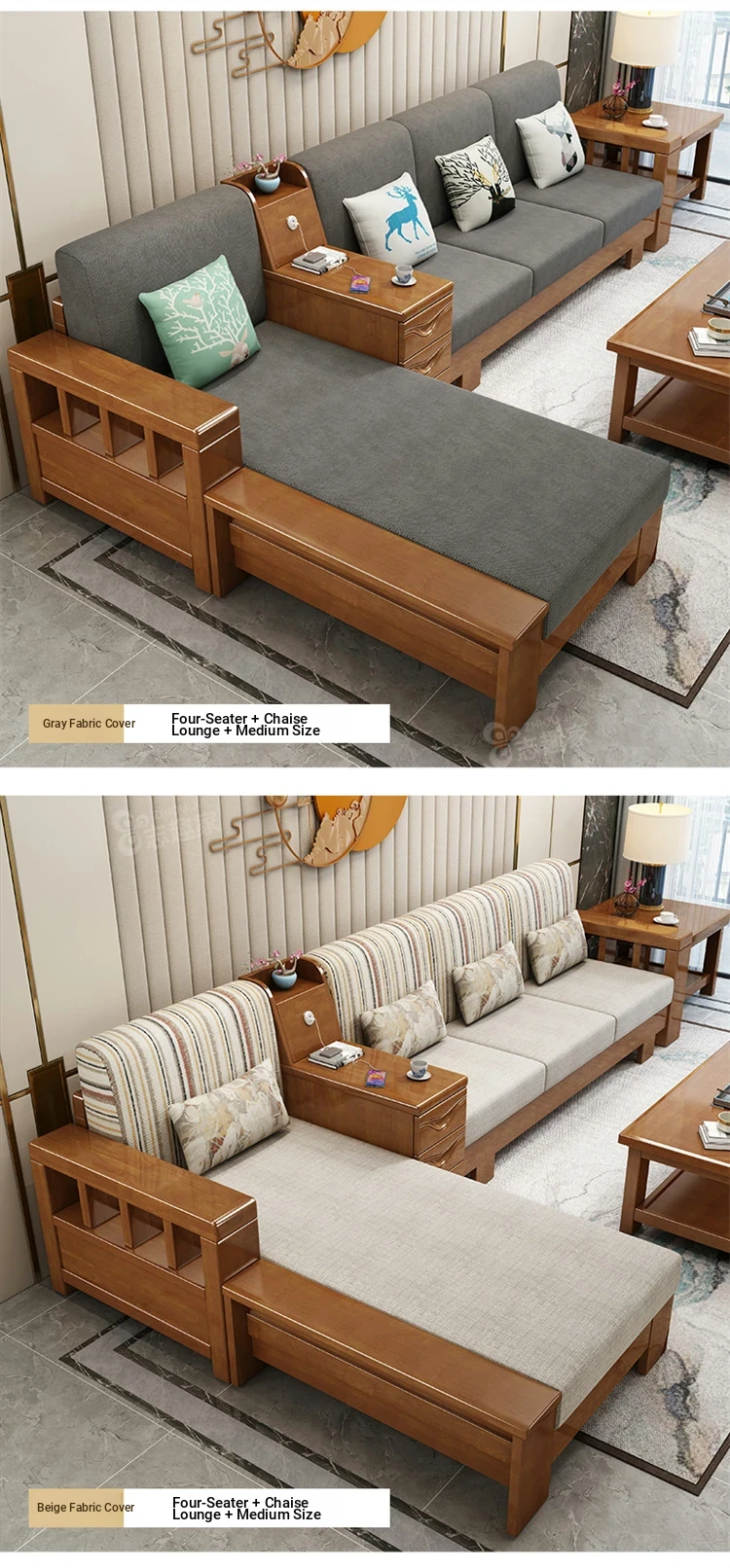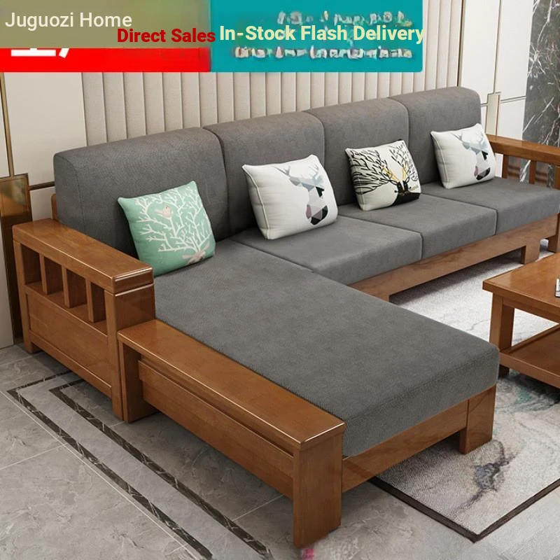 Modern Minimalist Solid Wood Sofa Set for Living Room - All Solid Wood Furniture Combination, Ideal for Small Spaces, Featuring a Chic New Chinese Style and Natural Wood Finish.