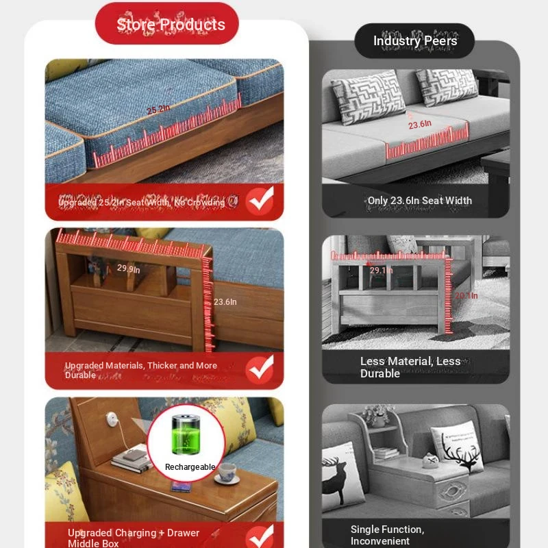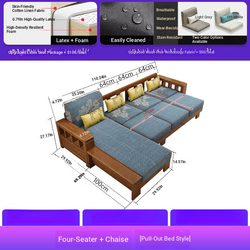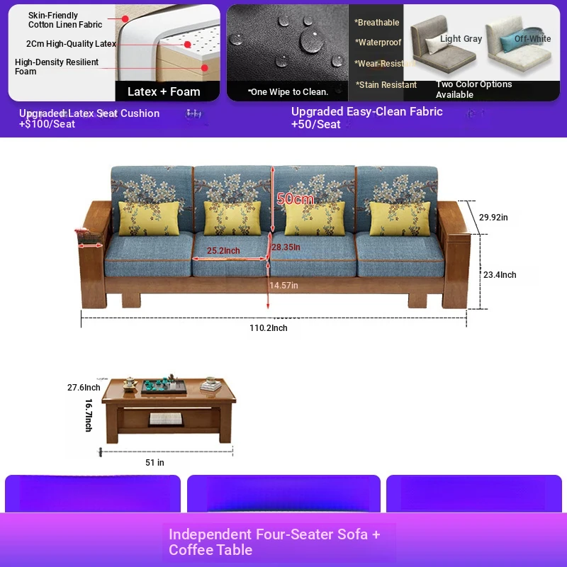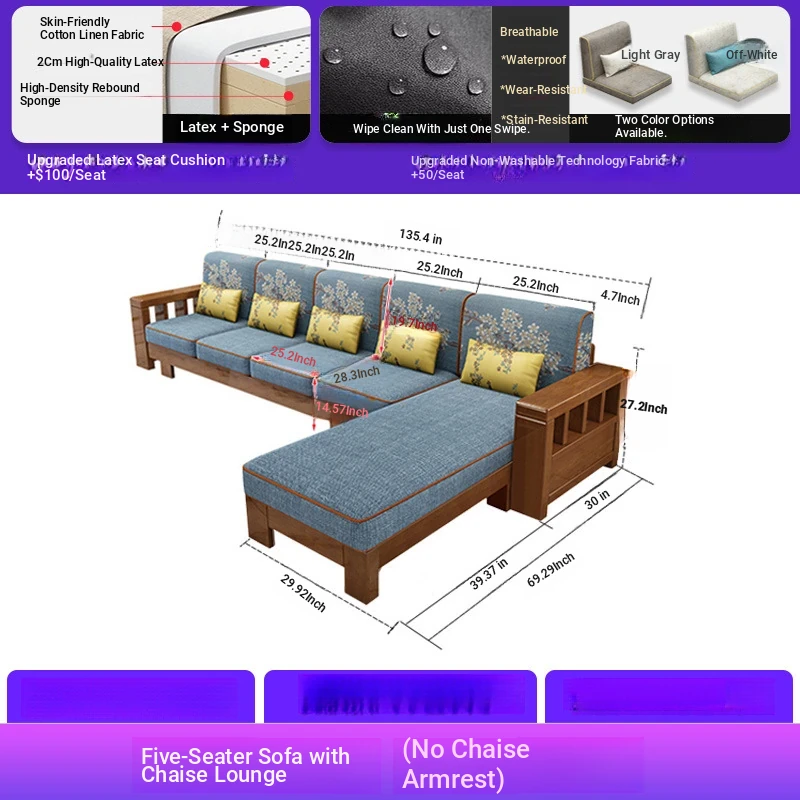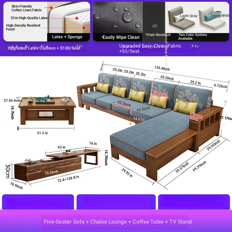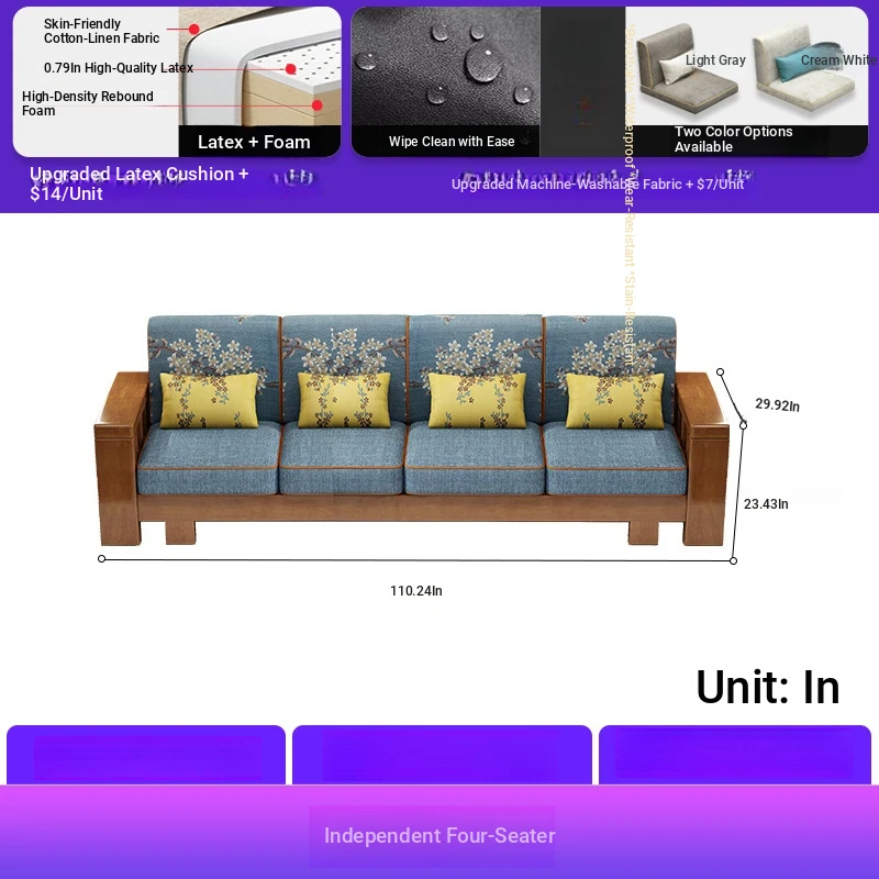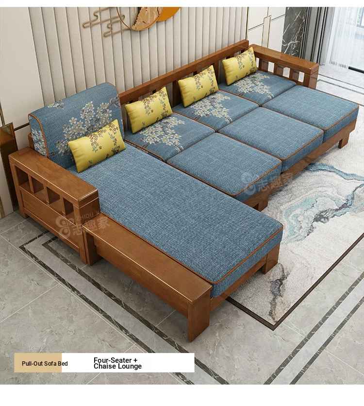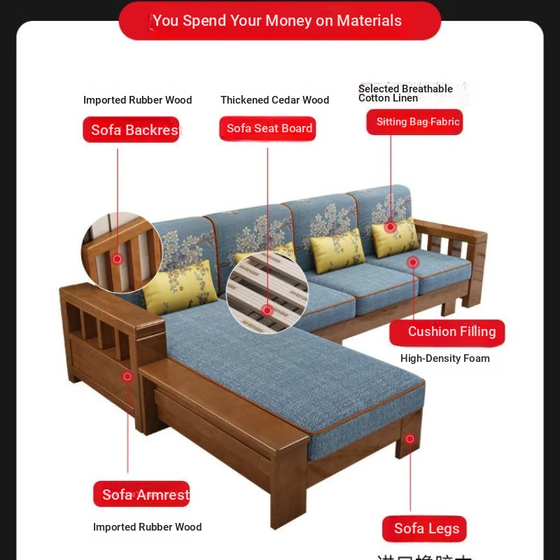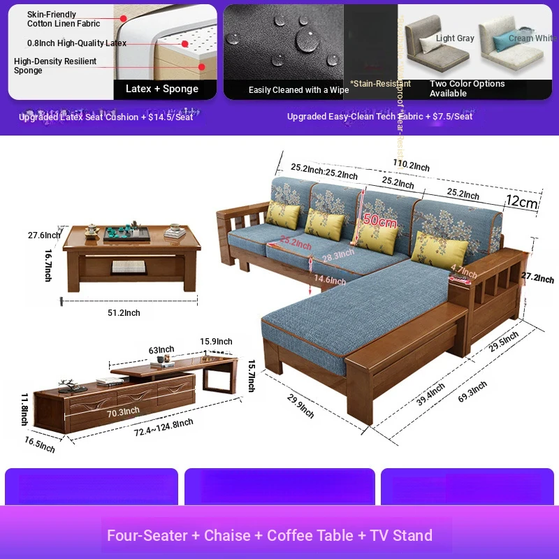 Modern Minimalist Solid Wood Sofa Set for Living Room - All Solid Wood Furniture Combination, Ideal for Small Spaces, Featuring a Chic New Chinese Style and Natural Wood Finish.