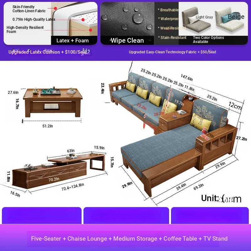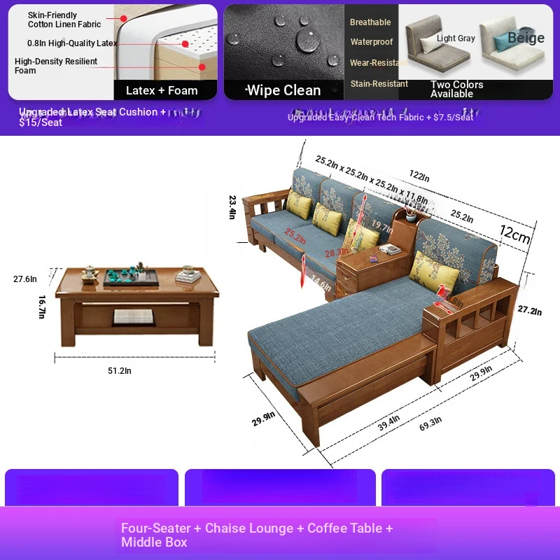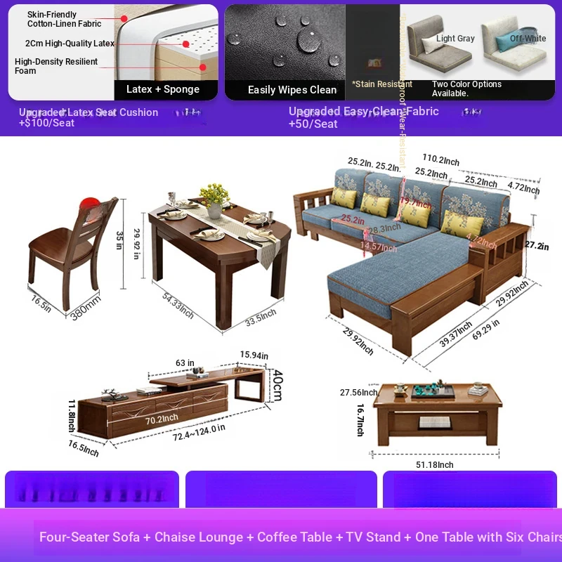 -Four people + imperial concubine + tea table + middle box + TV cabinet (122.05 in long)