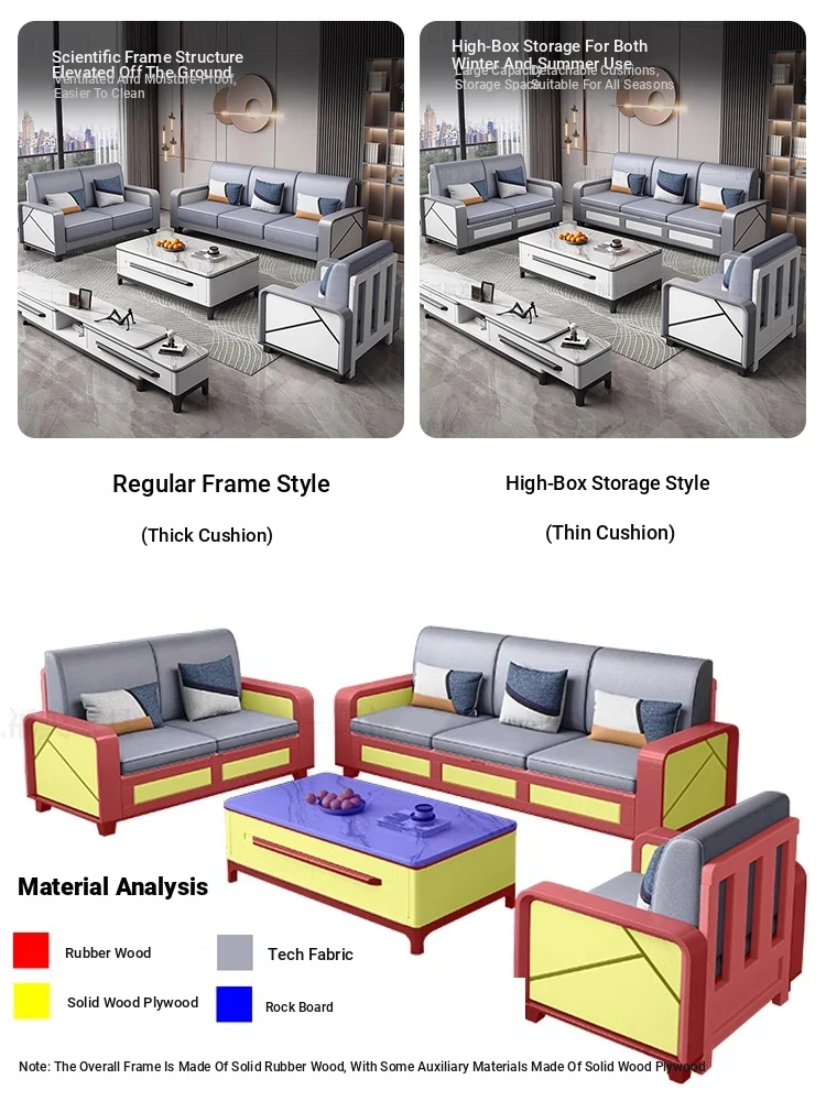 Modern Minimalist Solid Wood Sofa Set - Versatile 1+2+3 Seating for Small to Medium Living Rooms, All-Season Storage Sofa for Ultimate Comfort and Style