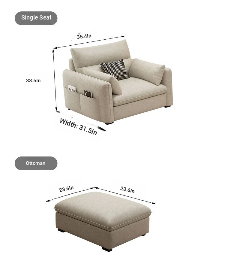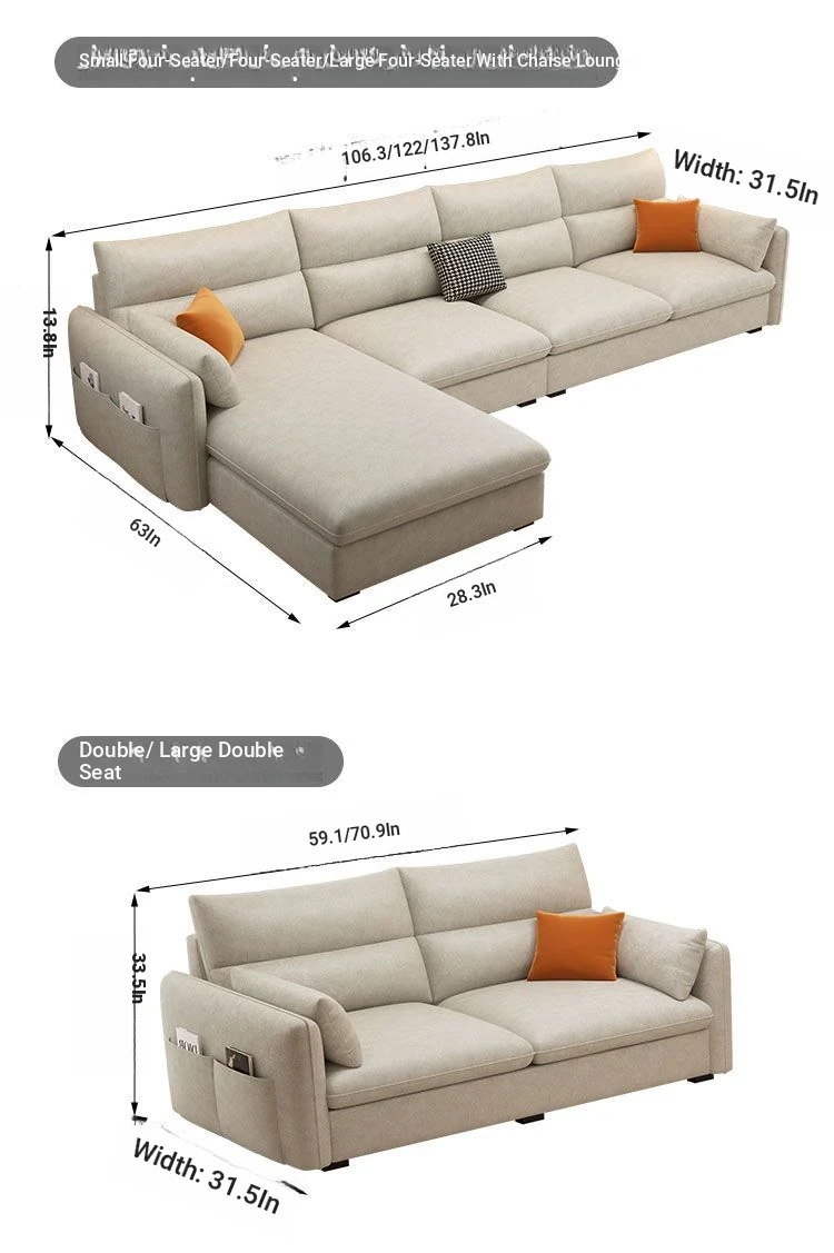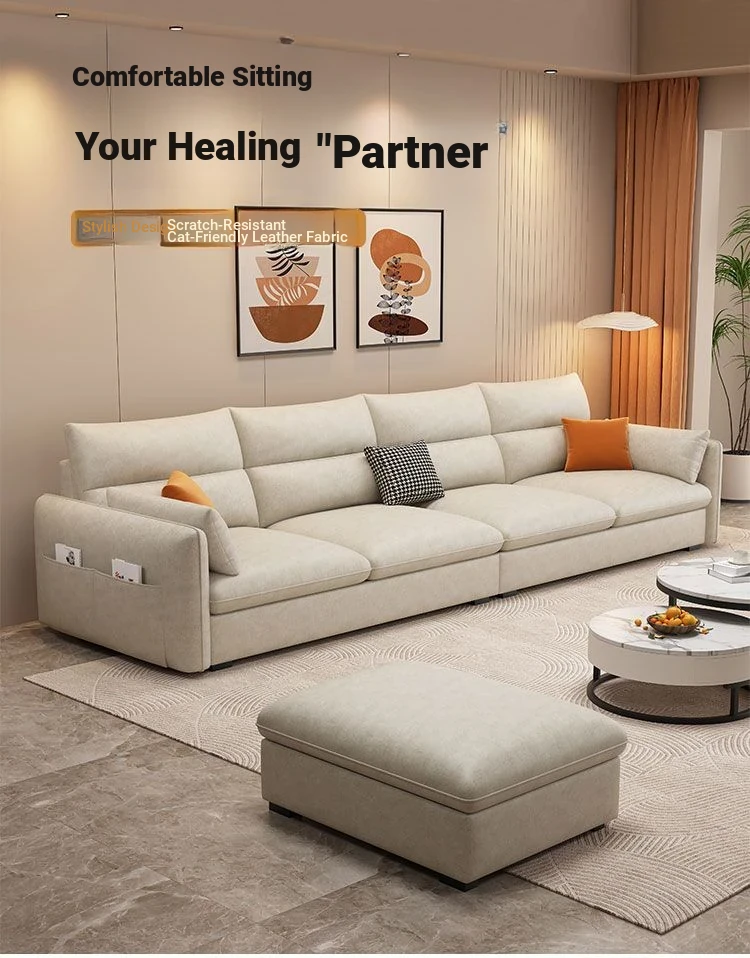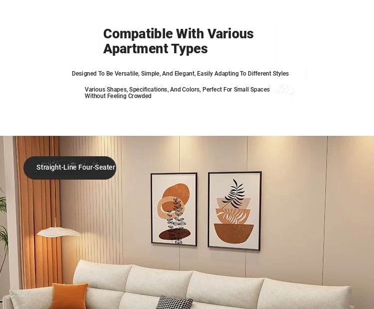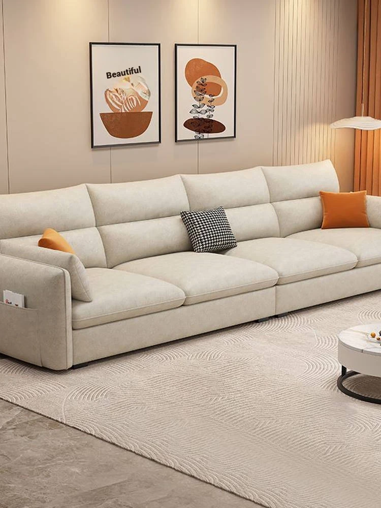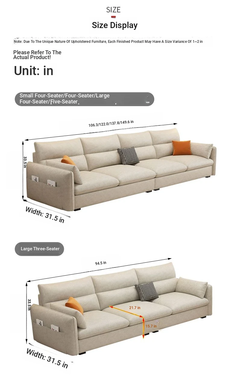 Modern Minimalist Straight-Line Sofa for Small Spaces - Easy Care, Stylish Fabric Couch for Living Room