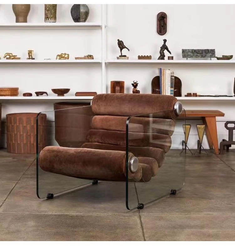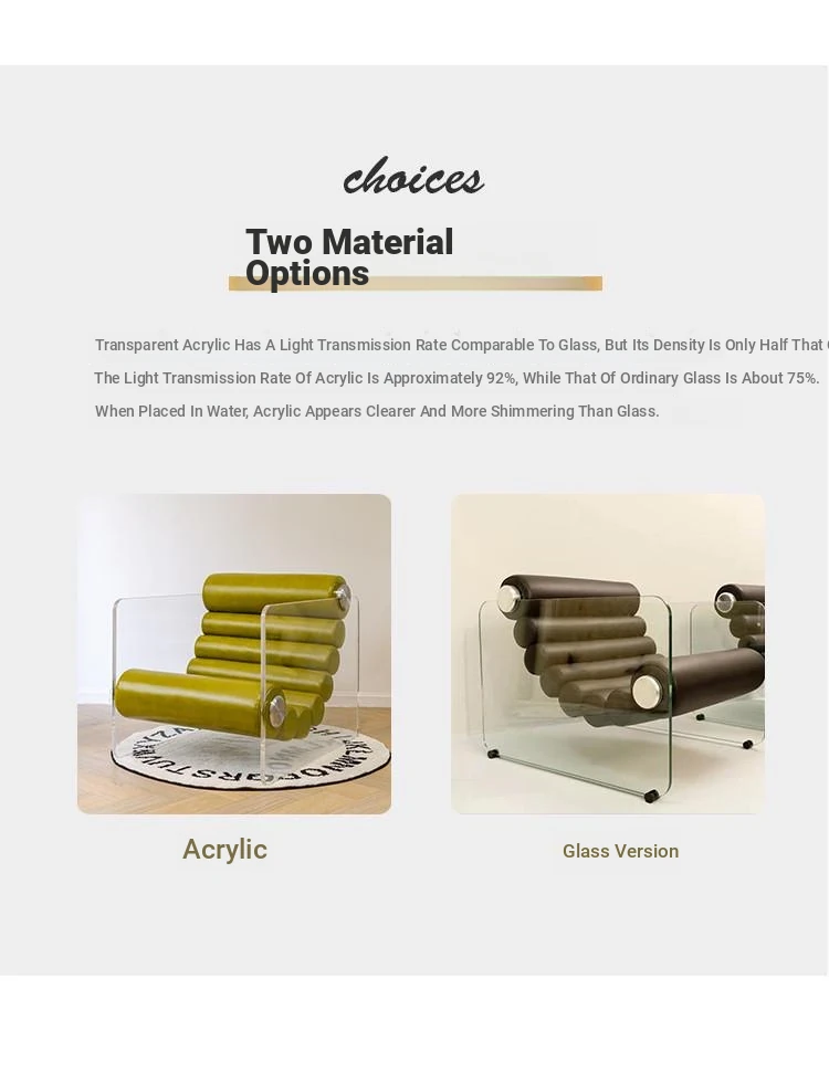 Modern Minimalist Transparent Acrylic Sofa Chair - Nordic Style Home Fabric Leisure Chair, Unique Single Armchair for Living Room