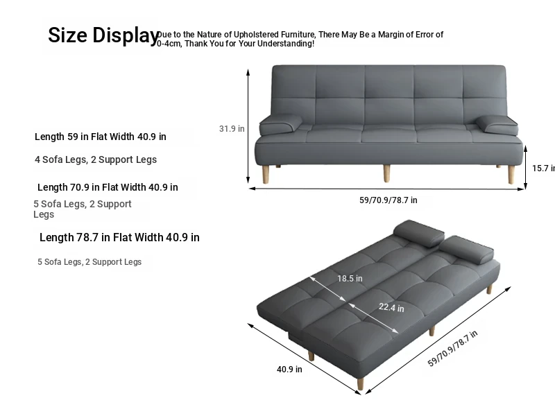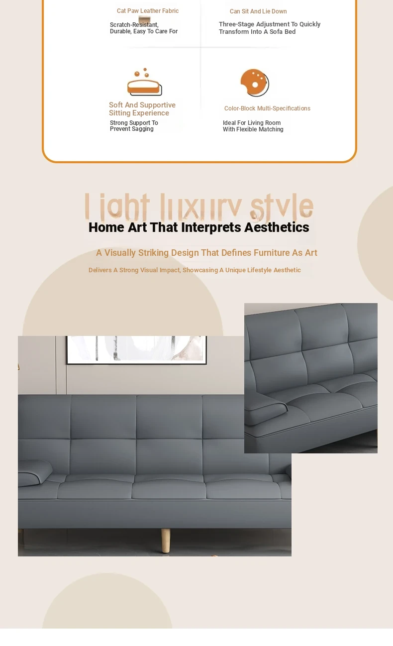 Modern Multi-functional 2L Folding Sofa Bed for Small Living Rooms - Simple and Stylish Design, Perfect for Home and Office Use, Featuring Durable Cat-Friendly Fabric - Model 2389