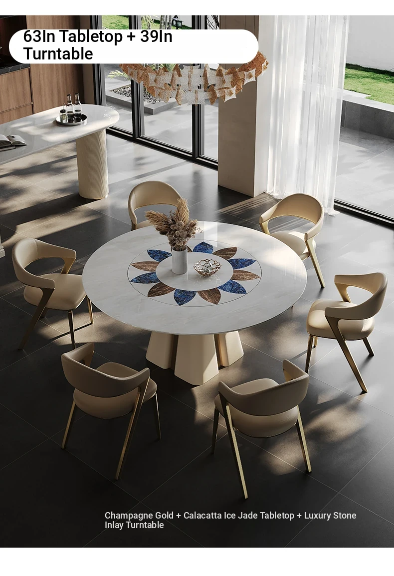 Modern Simple High-End Round Marble Dining Table and Chair Set - Elegant Natural Wood Design, Stylish and Luxurious Furniture for Your Home