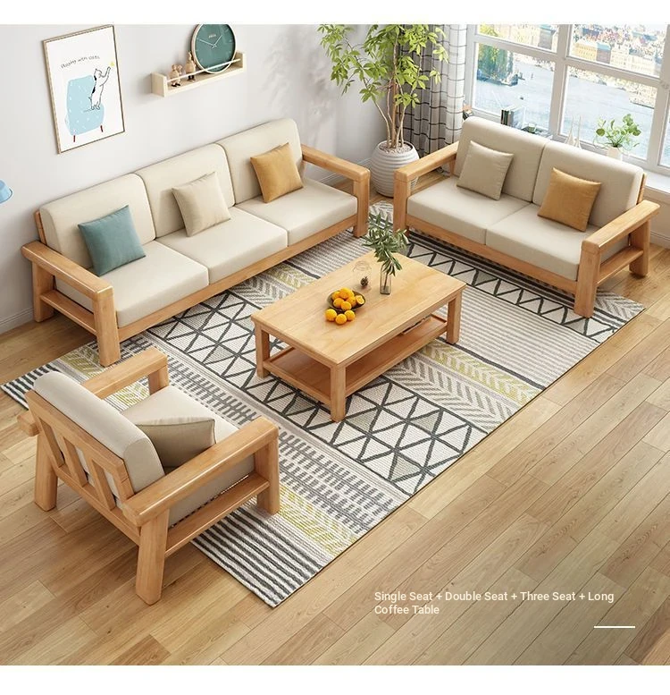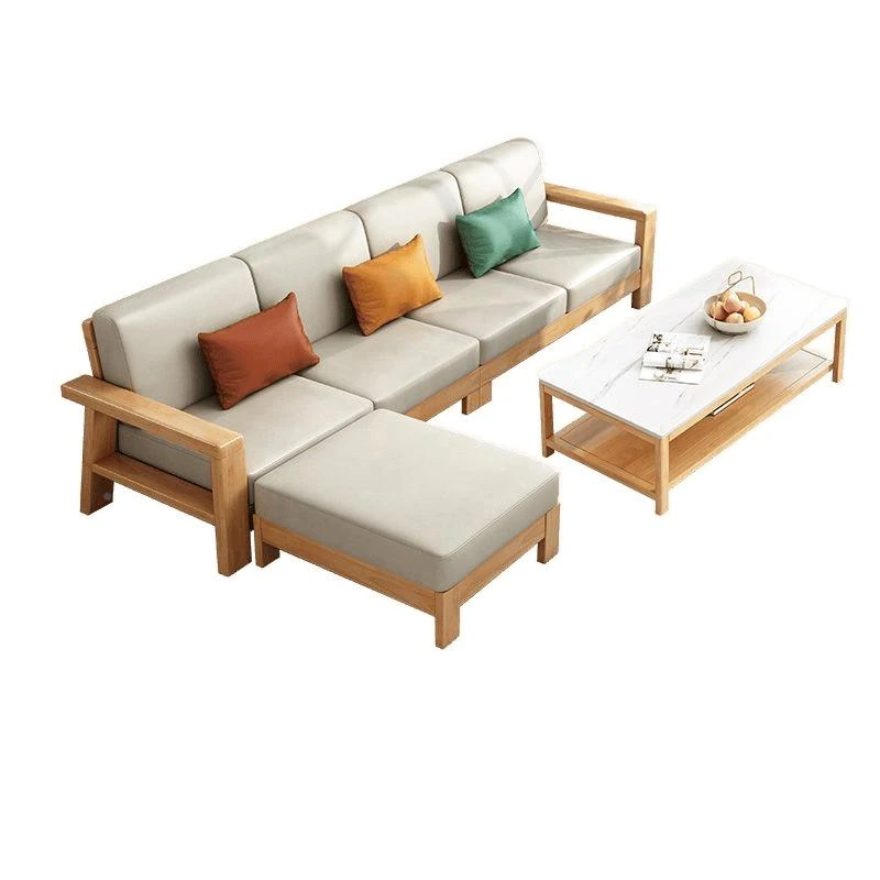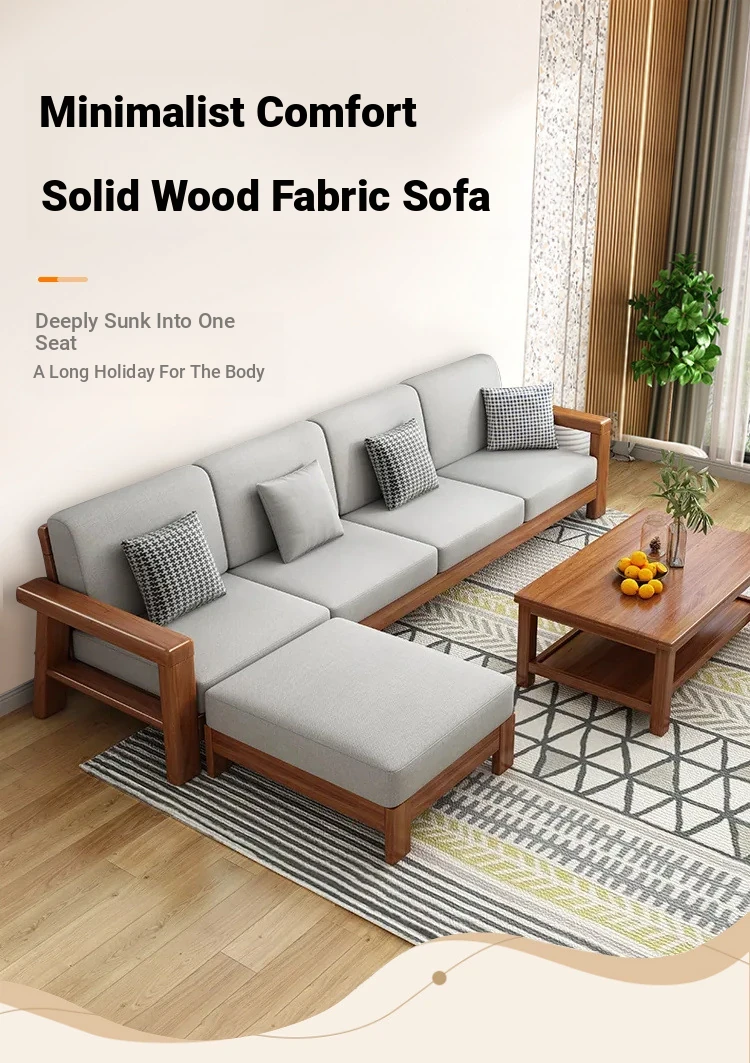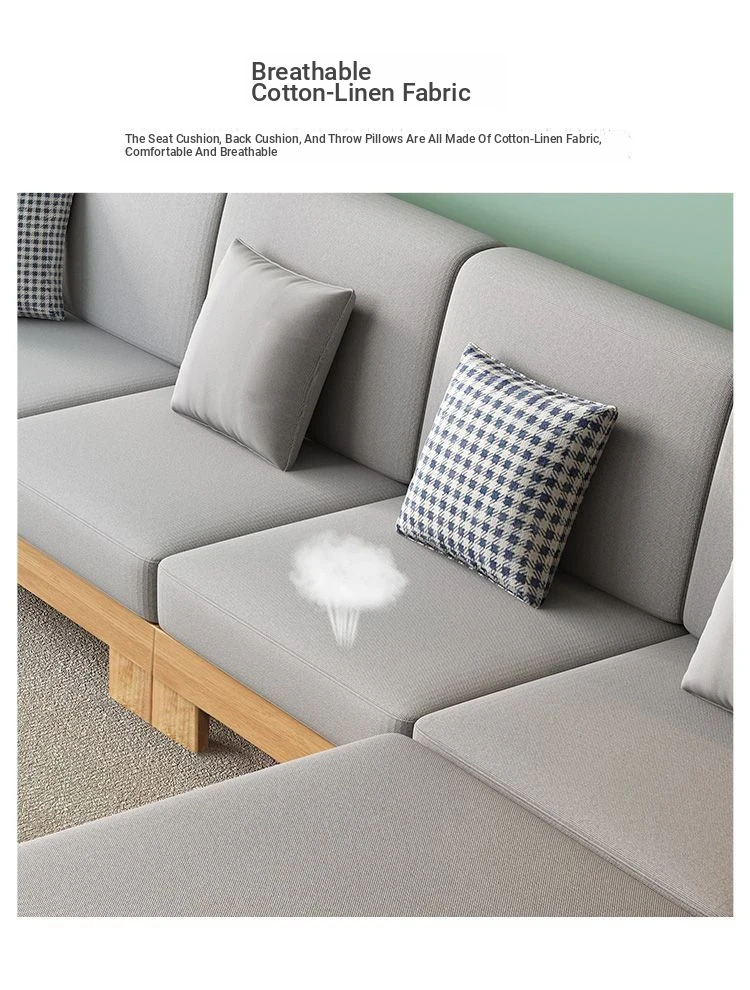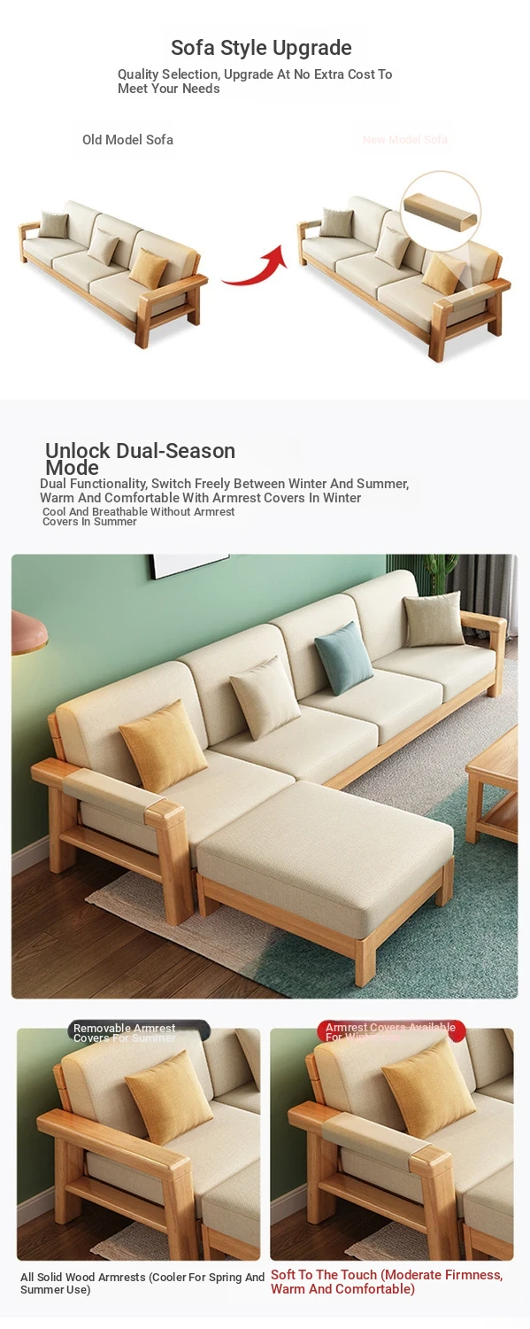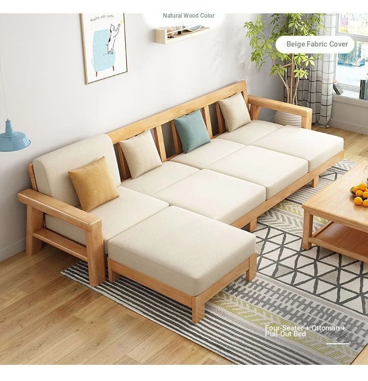 Modern Versatile Wooden Sofa Set with Corner Design - Stylish Upholstered Couch for Living Room, Dual-Use Sofa Bed with Solid Wood Frame, Perfect for Chinese Style Interiors