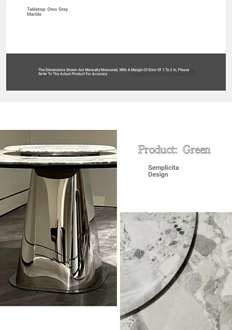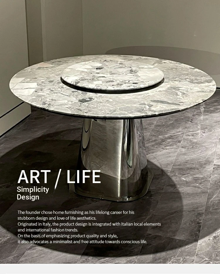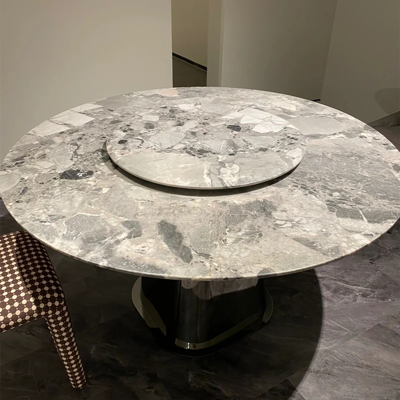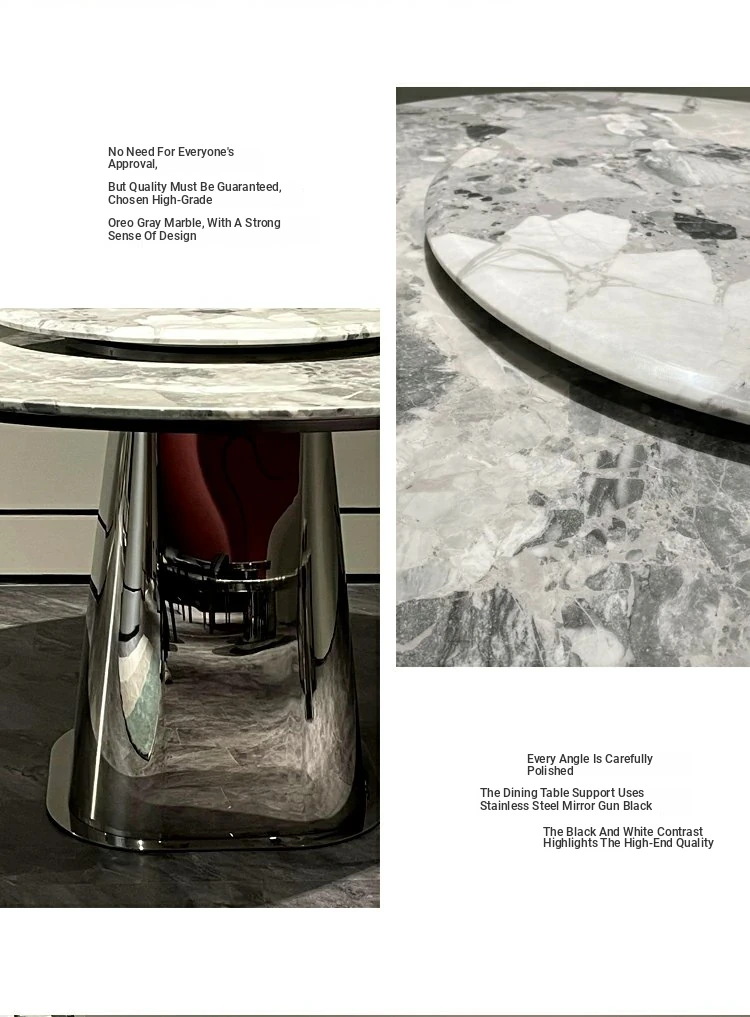 Natural Marble Round Dining Table - Oreo Gray Designer Edition, Modern Italian Minimalist Luxury Design