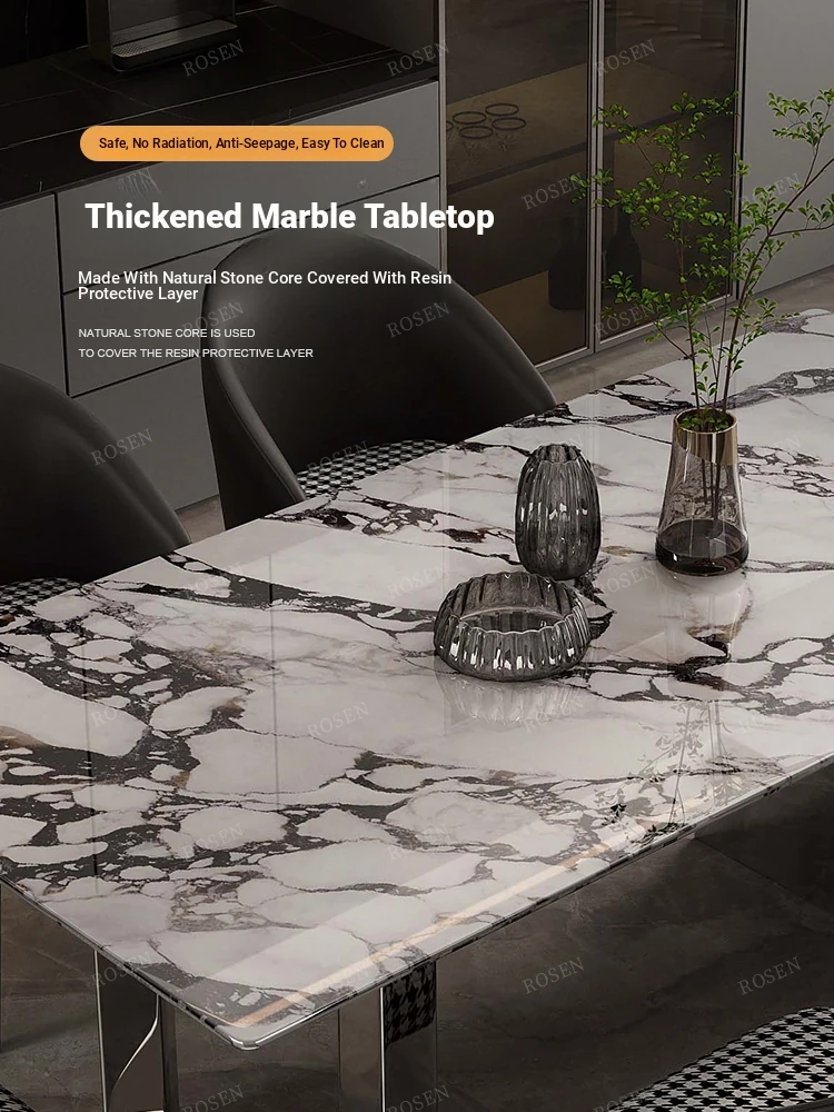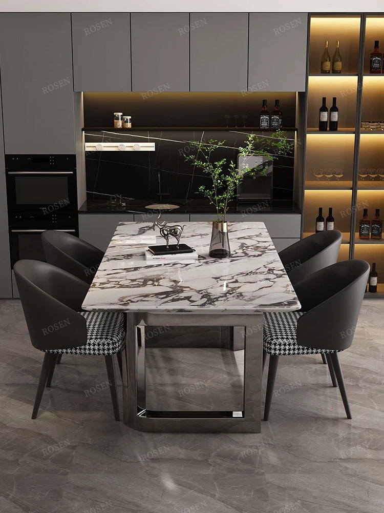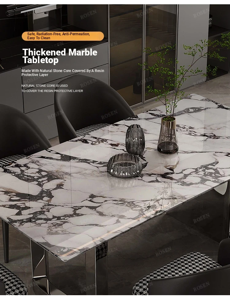Nordic Minimalist Marble Dining Table and Chair Set - Modern Luxury for Small Spaces, Perfect for Casual Dining with a Rectangular Design for Home Use
