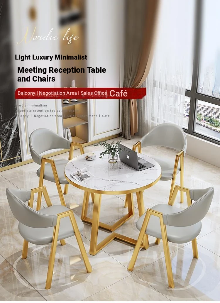 Nordic Minimalist Round Table Set – Stylish Meeting and Reception Furniture for Offices, Coffee Shops, and Tea Houses, Perfect for Casual Gatherings.