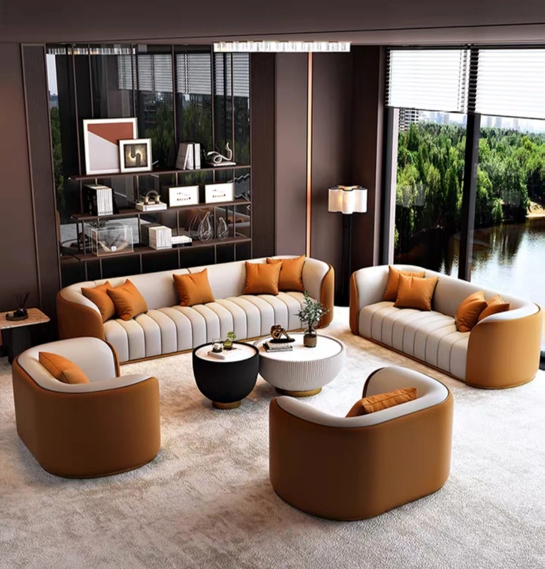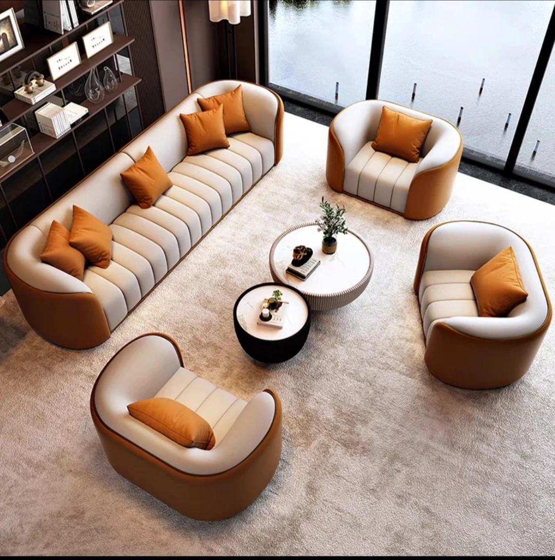 1+1+1+3 person sofa + tea table combination rice White + Orange