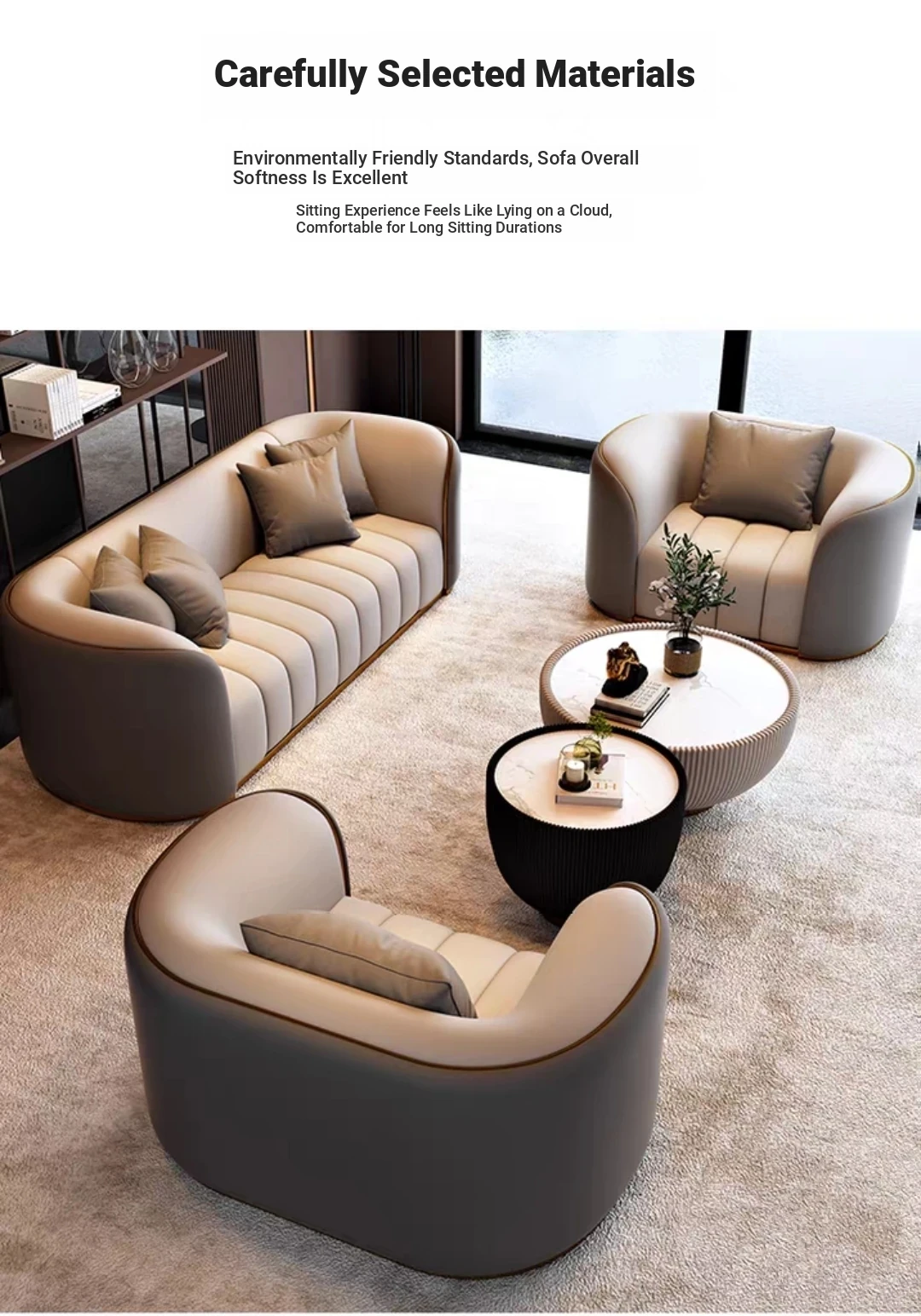 Nordic Style Business Casual Sofa and Coffee Table Set - Elegant Lounge Furniture for Office Reception Areas and Hotel Meeting Spaces