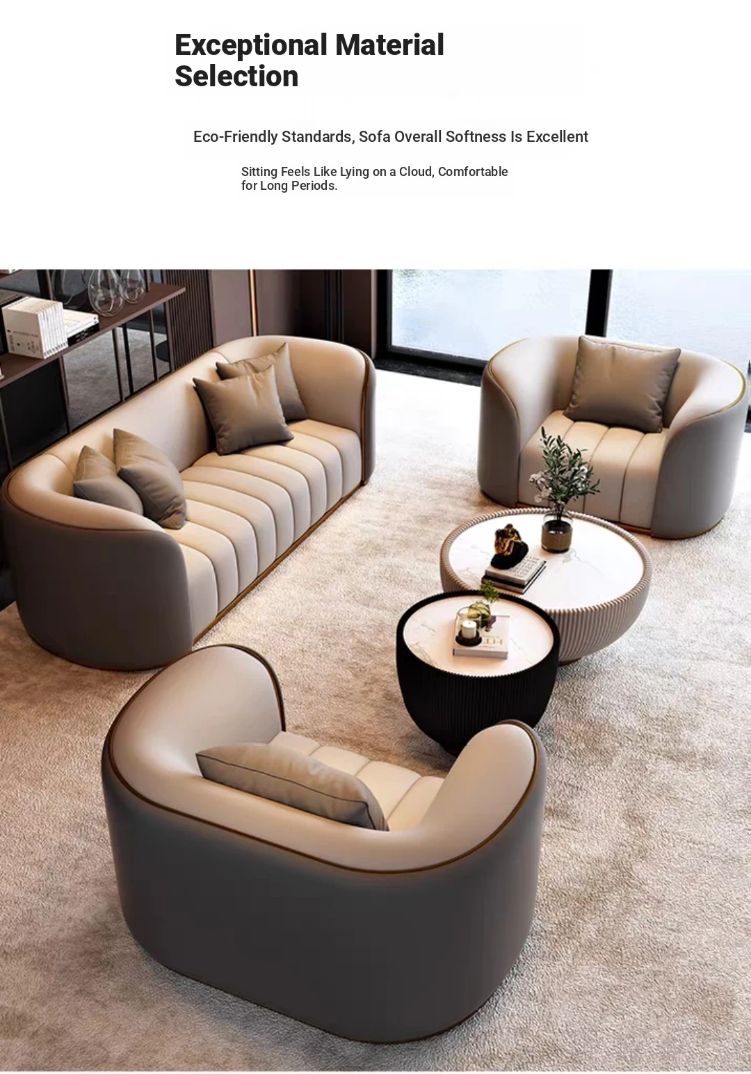 1+2+3 sofa + tea table combination rice White + light gray
