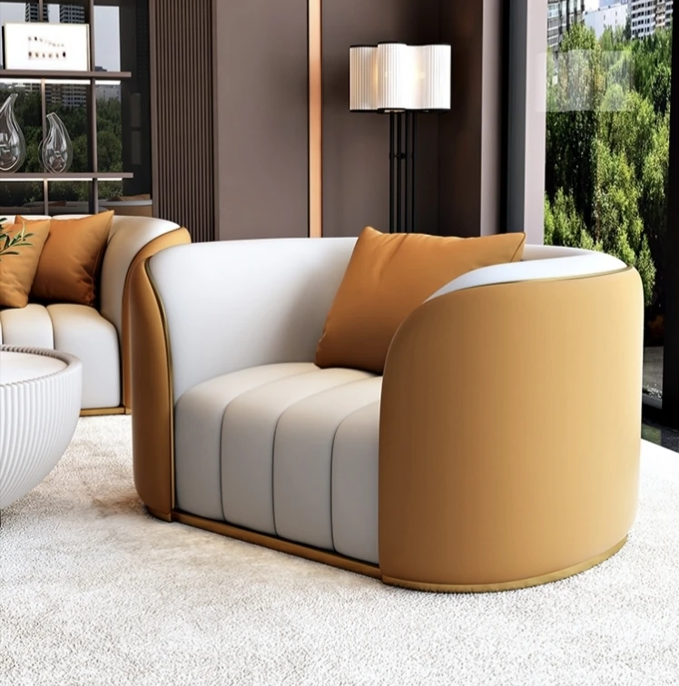 Single sofa [creamy-white spell Orange]]