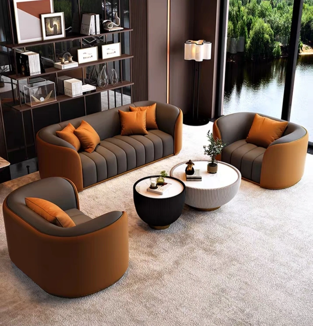 Three sofa [Orange spell dark gray]]