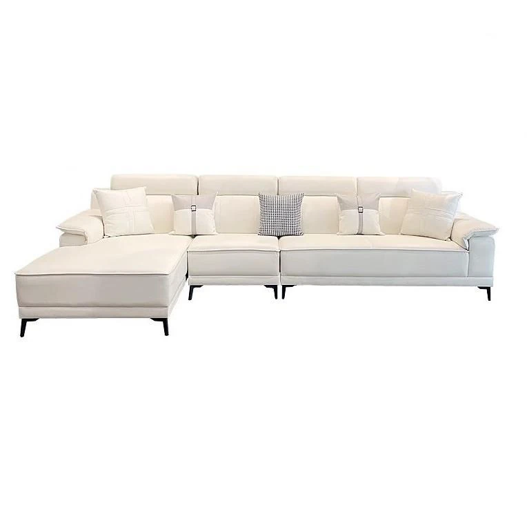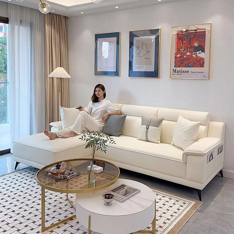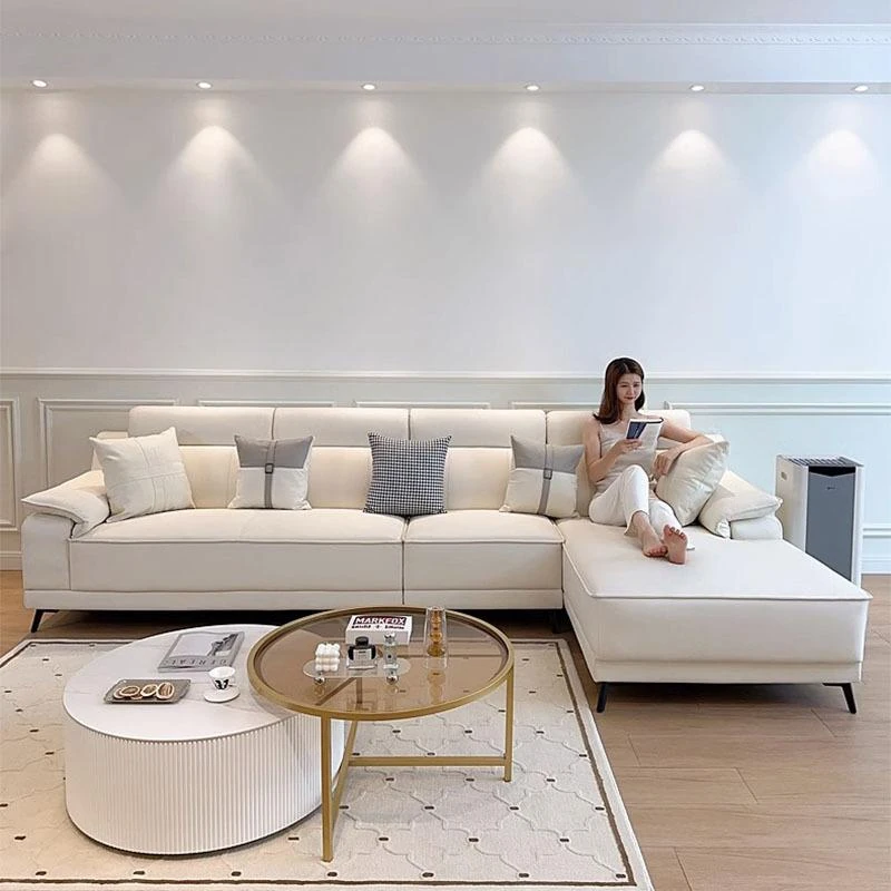 Nordic Style Cat Scratch Resistant Cream Sofa for Small Spaces - Trendy L-Shaped Chaise Lounge with Straight Three-Seater, Made with Tech Fabric for Durability and Comfort