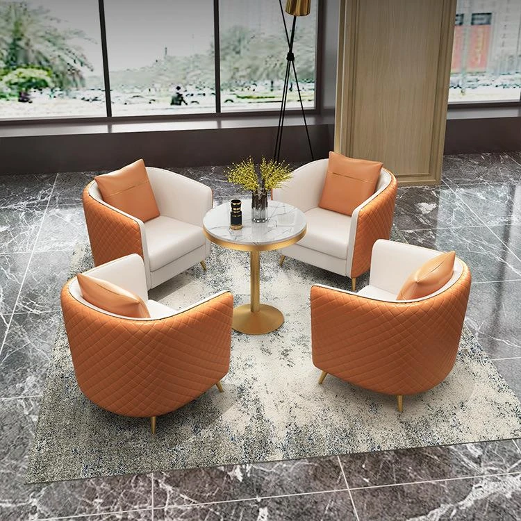 Nordic Style Leather Sofa Set for Beauty Salons - Elegant Reception and Lounge Seating for Commercial Spaces, Perfect for Client Meetings and Discussions