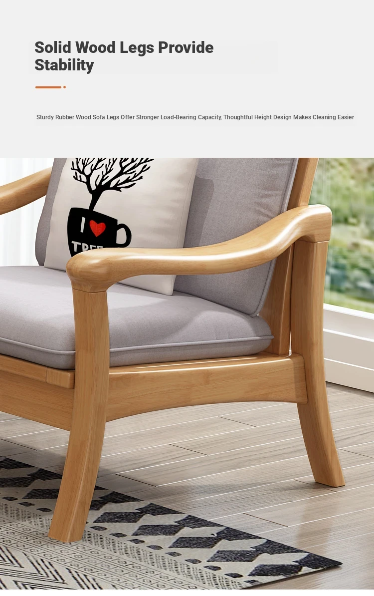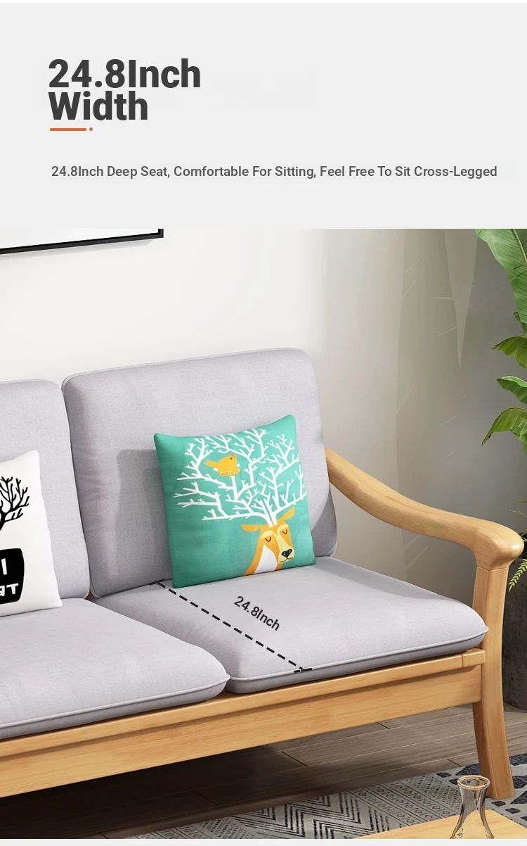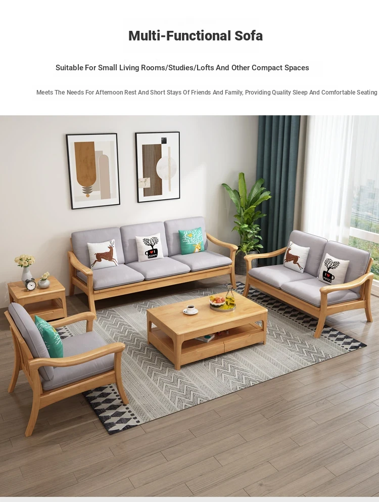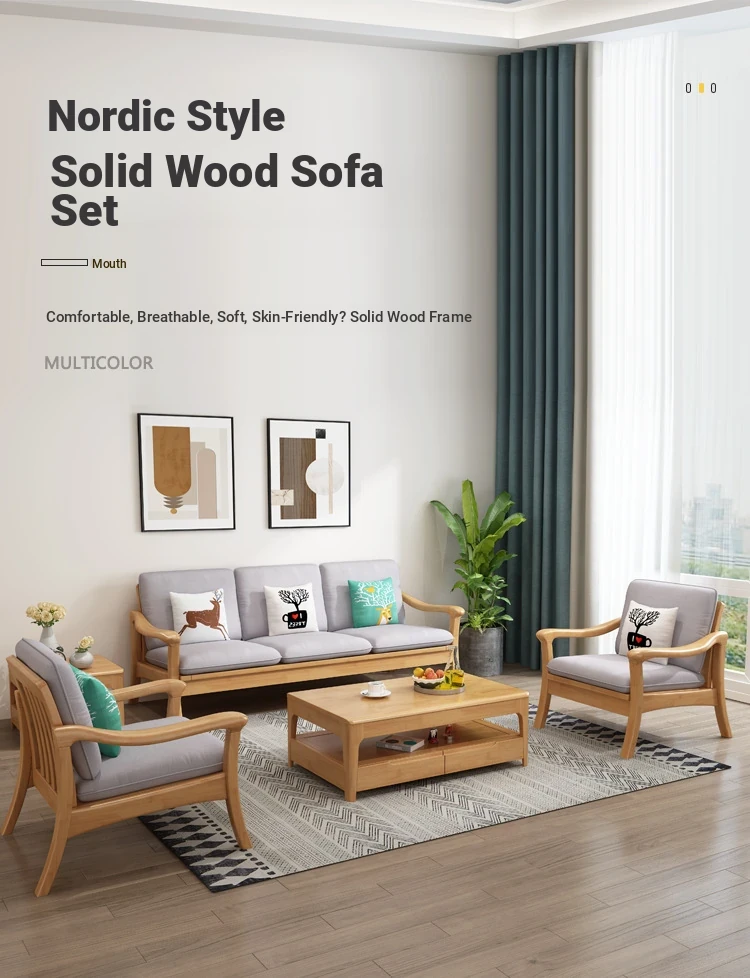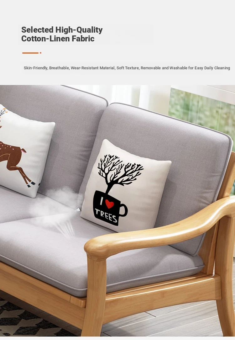 Nordic Style Solid Wood Sofa Set - Modern Minimalist Fabric Chaise Lounge Corner Sofa for Small Spaces - 3-Seat Living Room Furniture