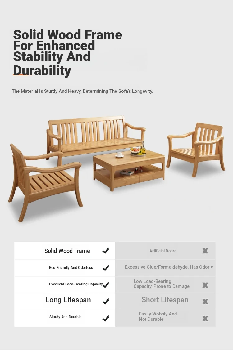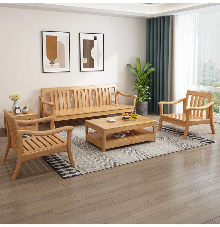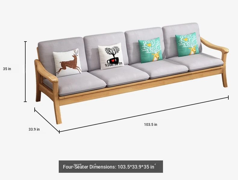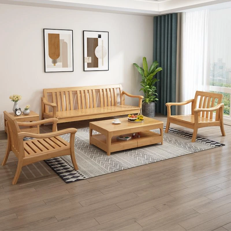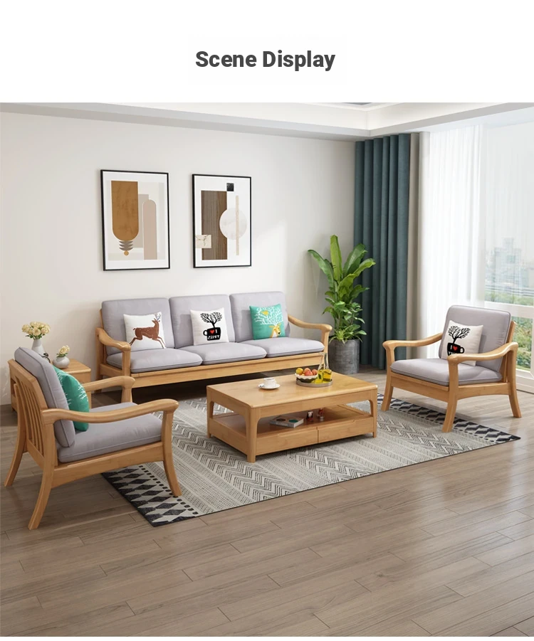 Nordic Style Solid Wood Sofa Set - Modern Minimalist Fabric Chaise Lounge Corner Sofa for Small Spaces - 3-Seat Living Room Furniture