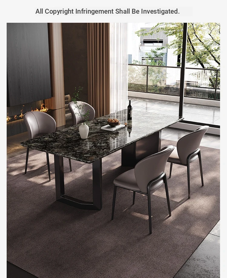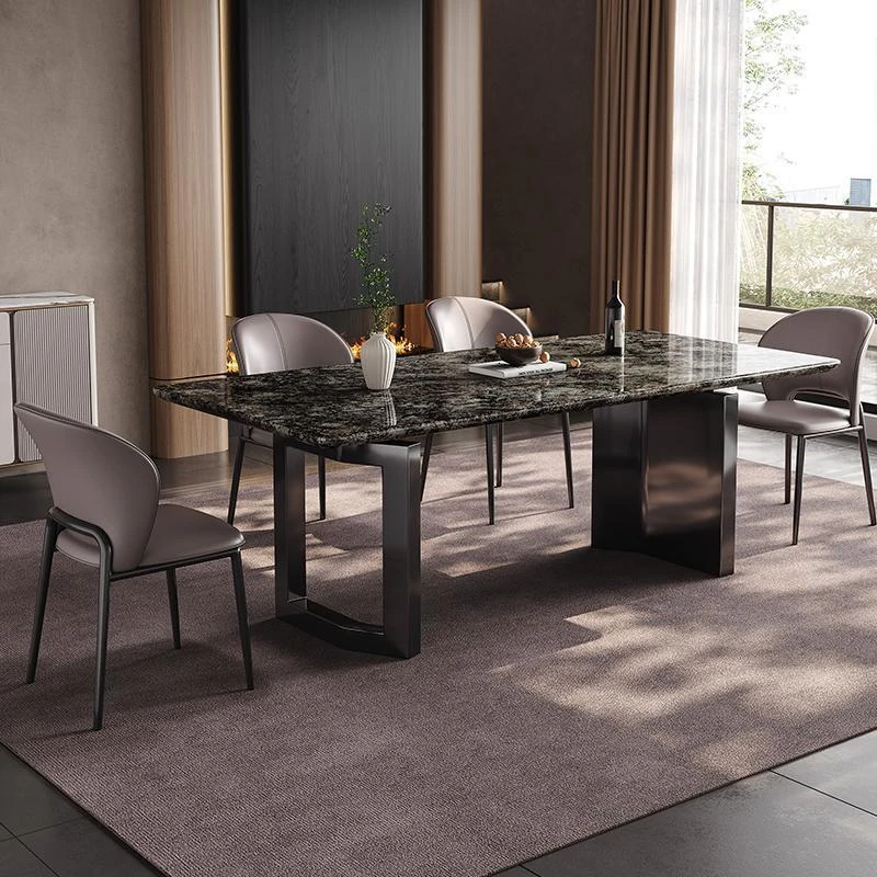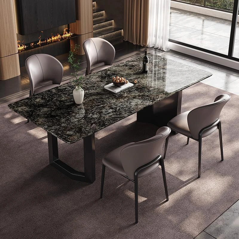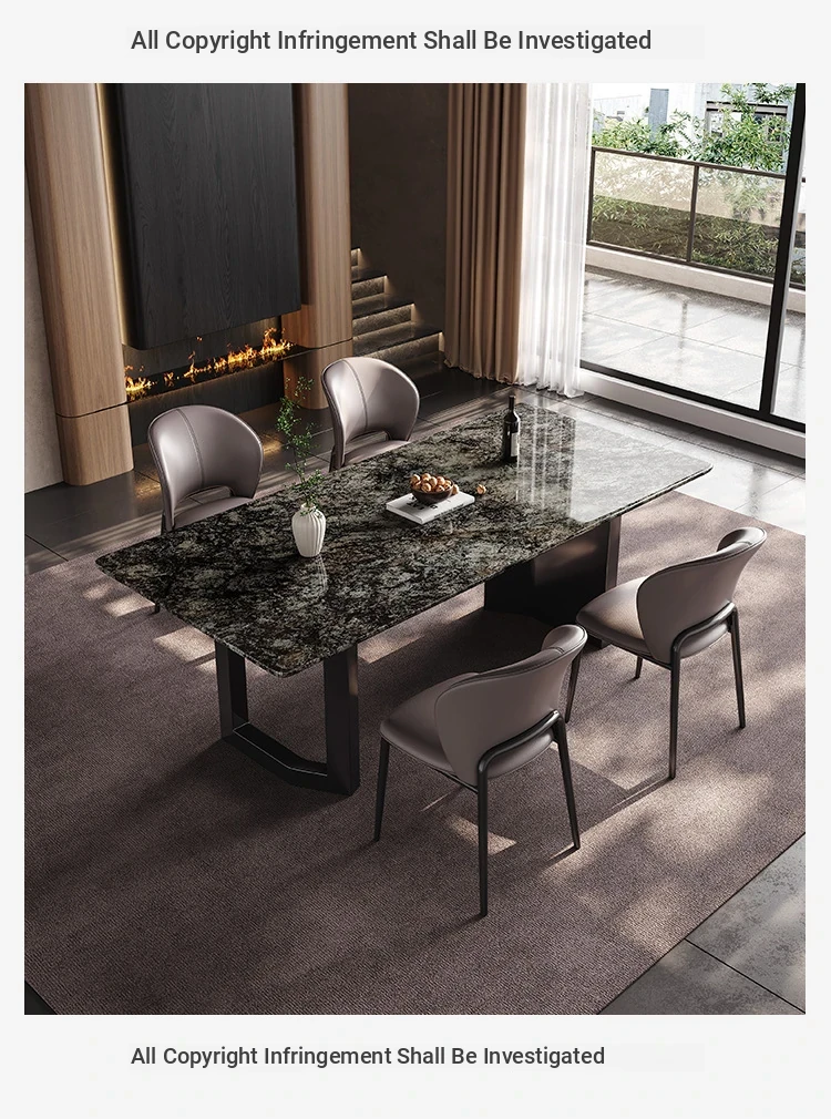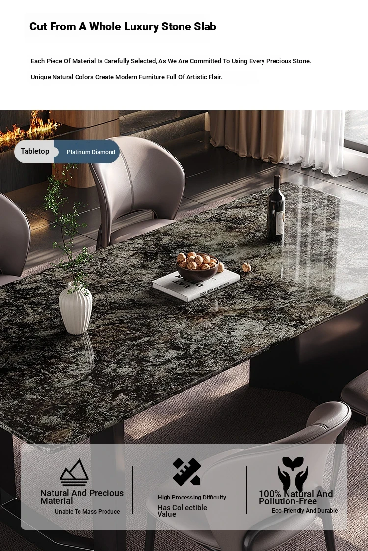 Platinum Diamond Natural Marble Rectangular Dining Table - Elegant Italian Modern Luxury for Home, Designer Table for High-End Villas