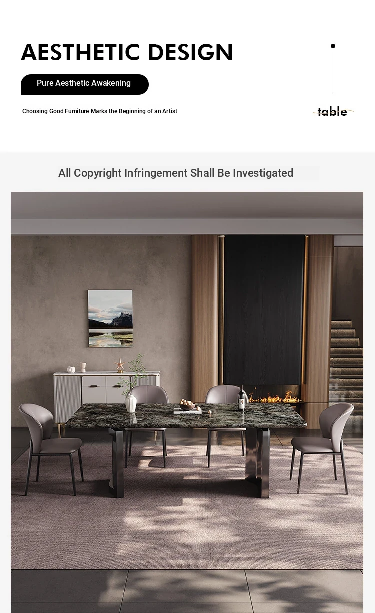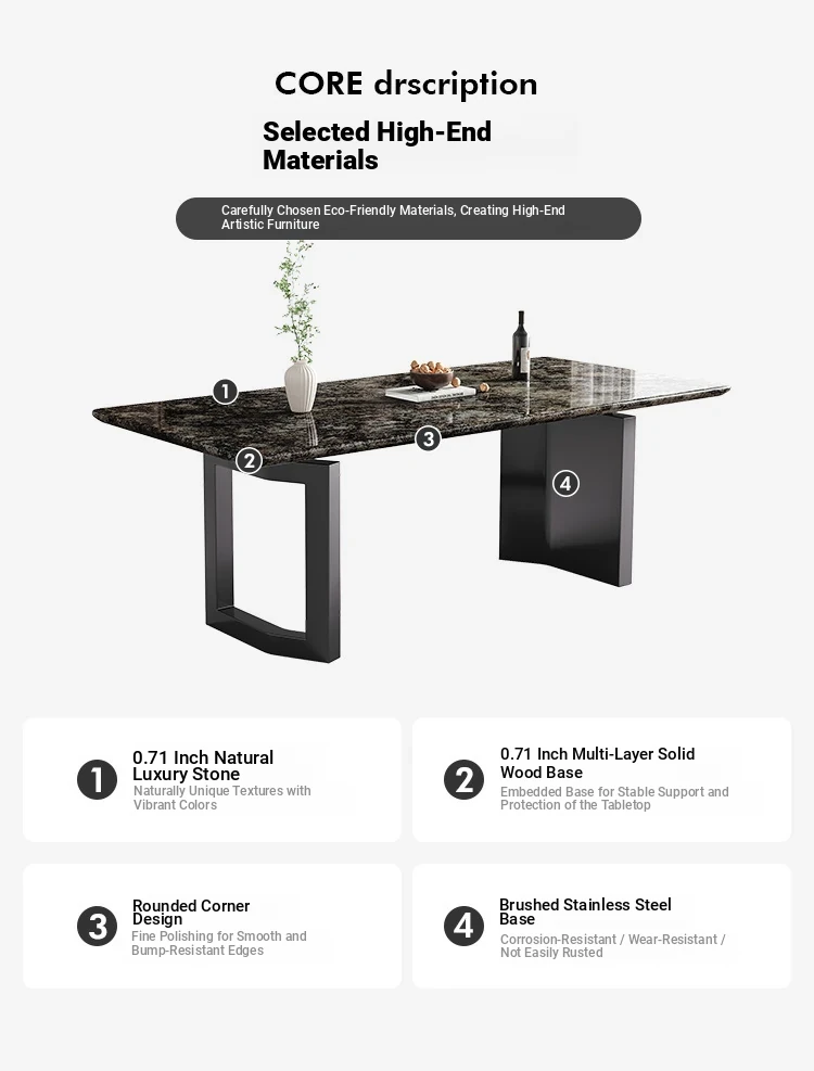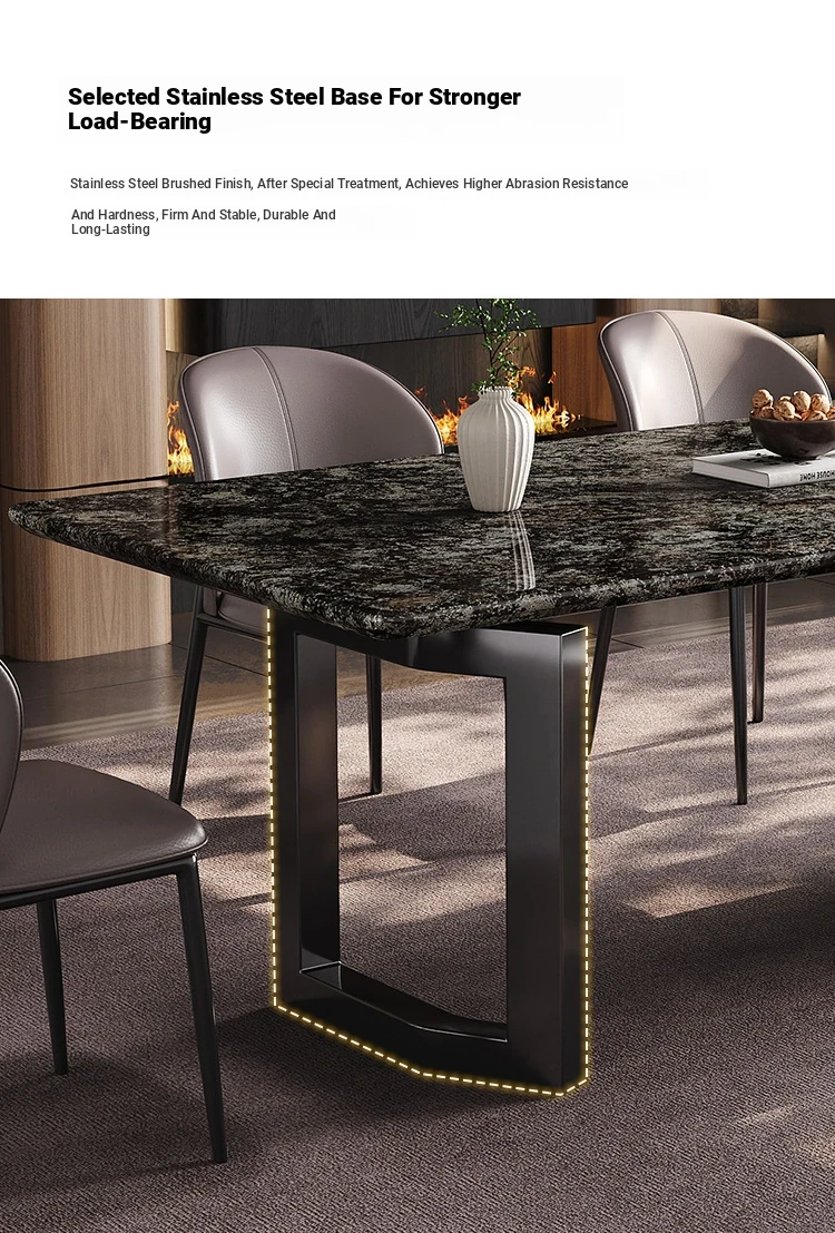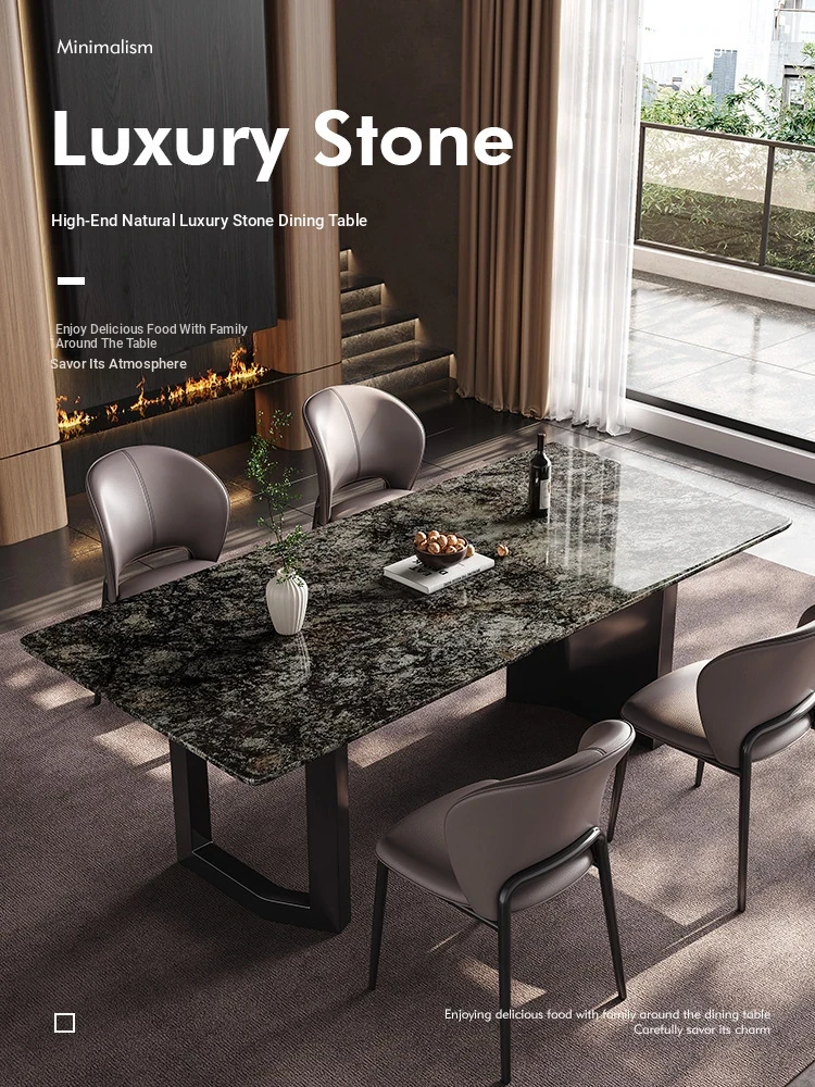 Platinum Diamond Natural Marble Rectangular Dining Table - Elegant Italian Modern Luxury for Home, Designer Table for High-End Villas