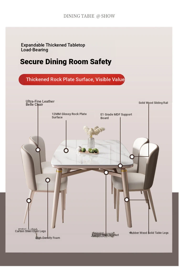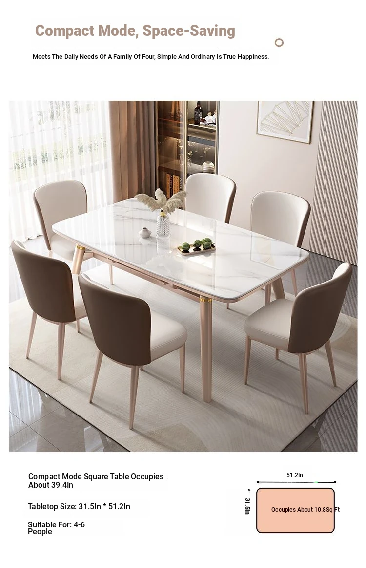 [0.47in Rock Plate] Telescopic Dining Table + Guangpai Chair * 6