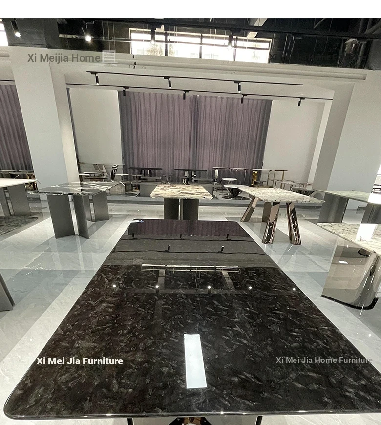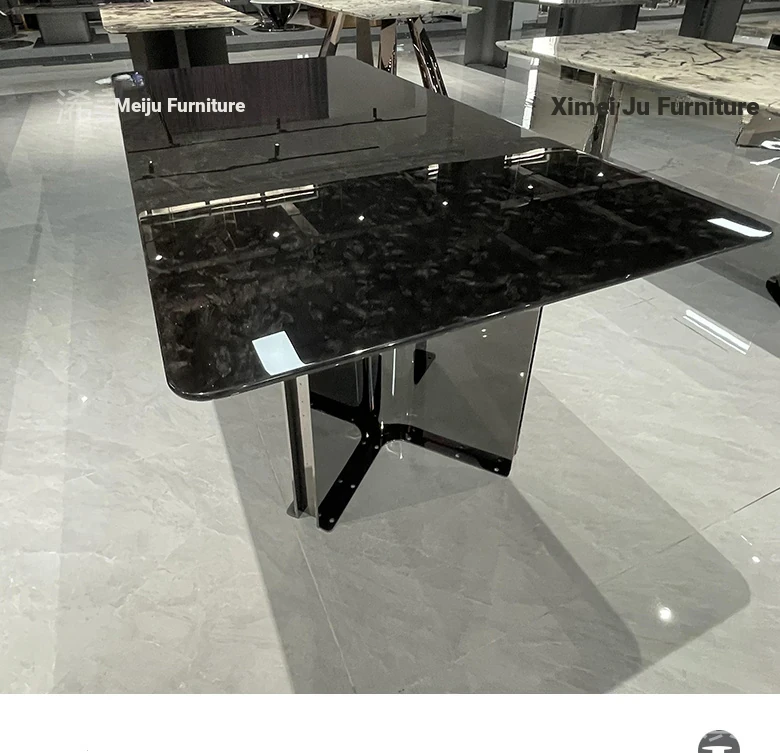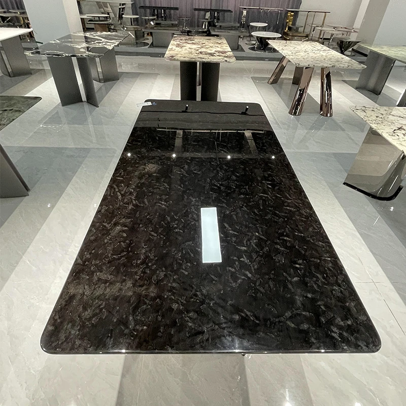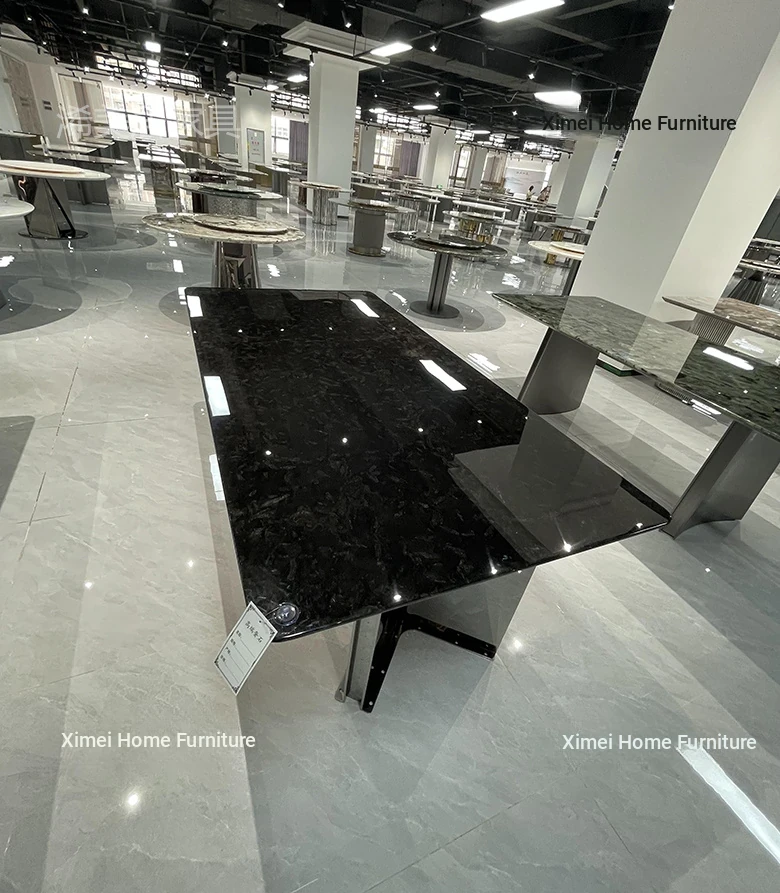 Premium Imported Natural Black Marble Rectangular Dining Table - Luxury Stone for Villas and High-End Homes, Perfect for Living Room Dining