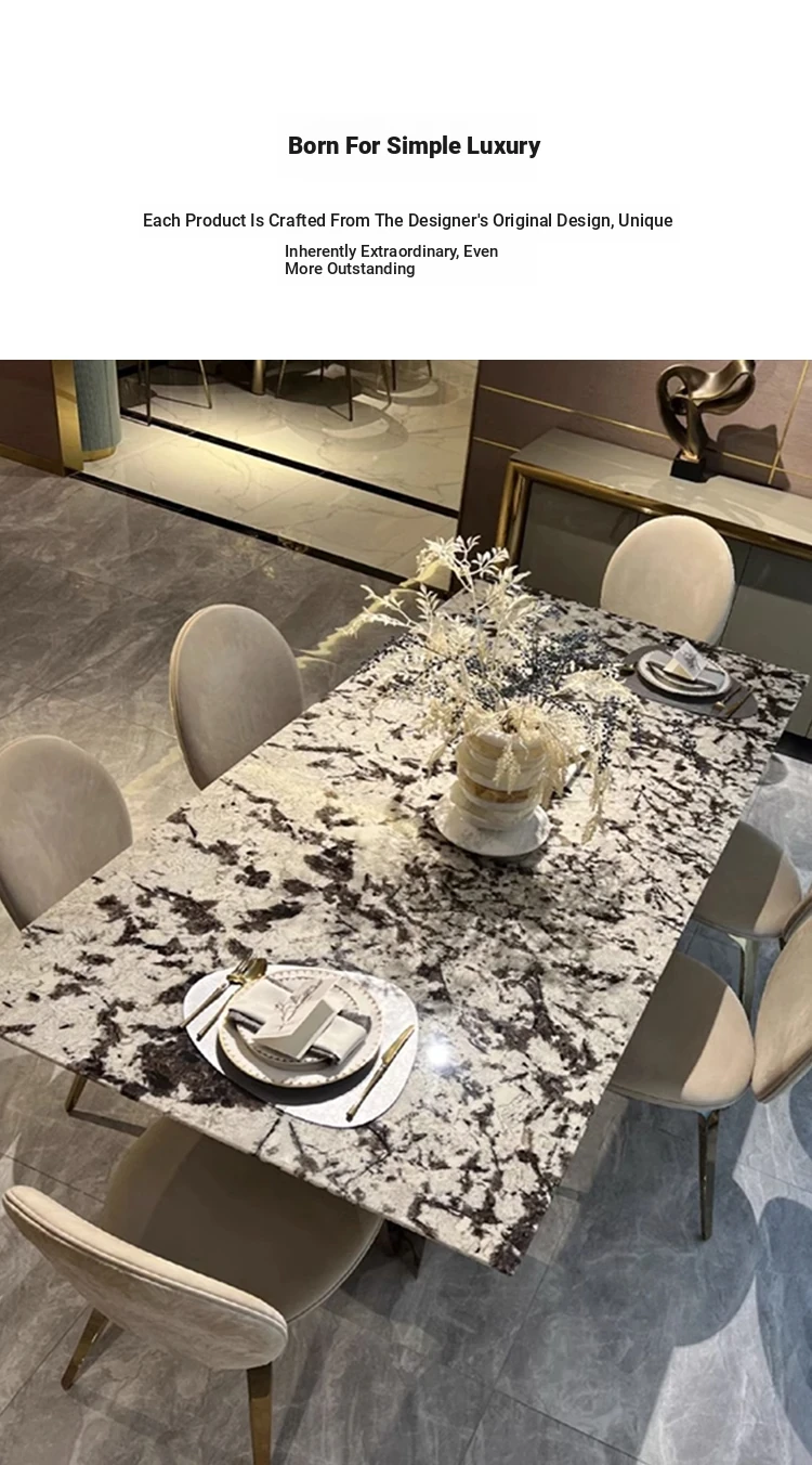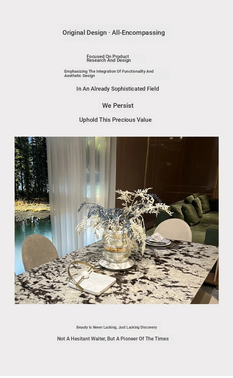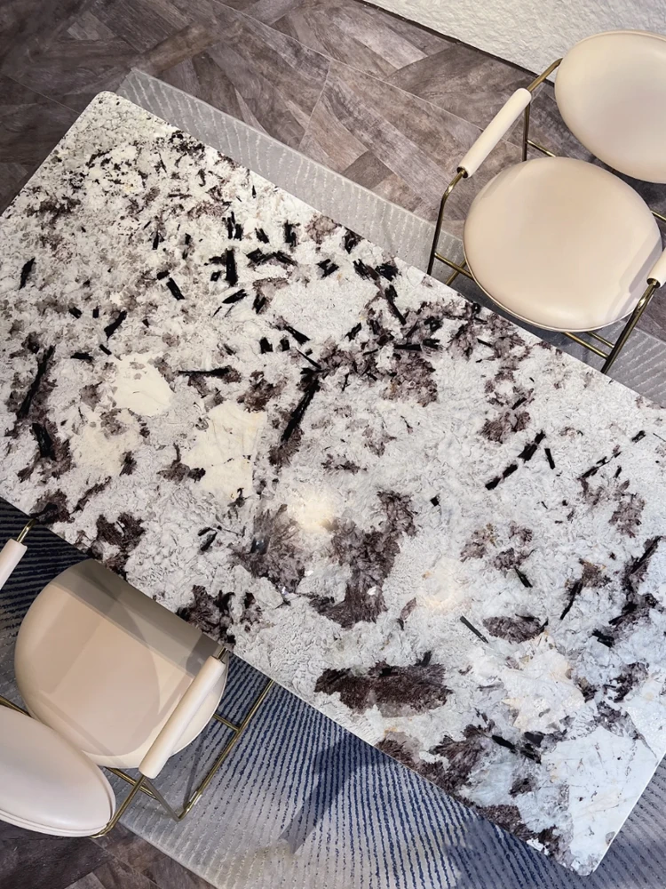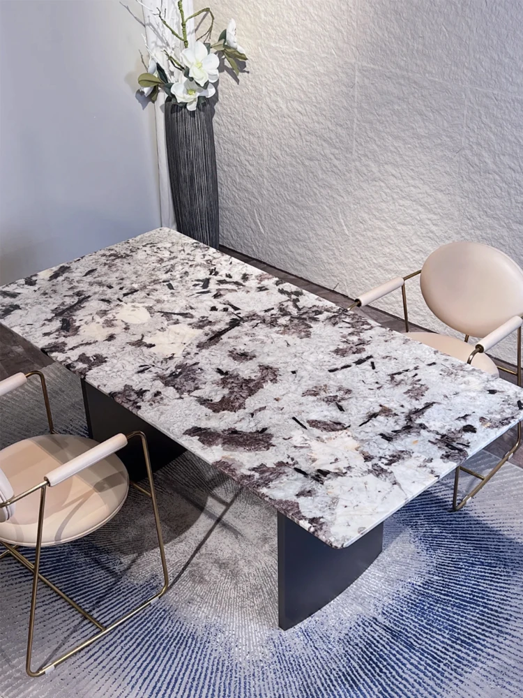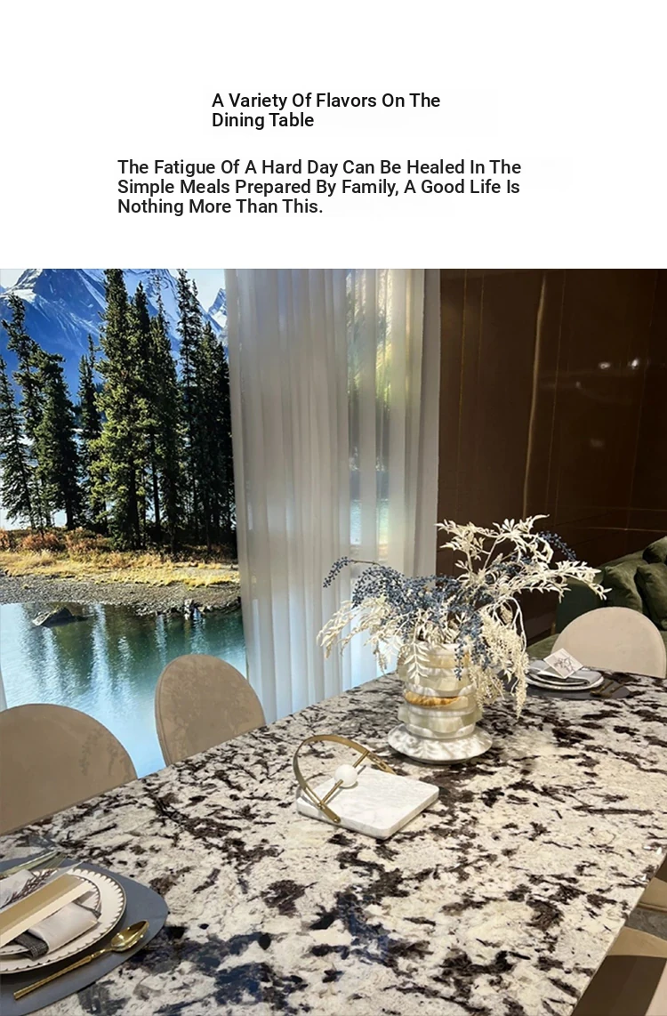 Premium Natural Snow Mountain Orchid Luxury Stone Dining Table - Elegant Italian Design, High-End Aesthetic with Snow Mountain Flying Fox Marble for Your Spacious Living Room.