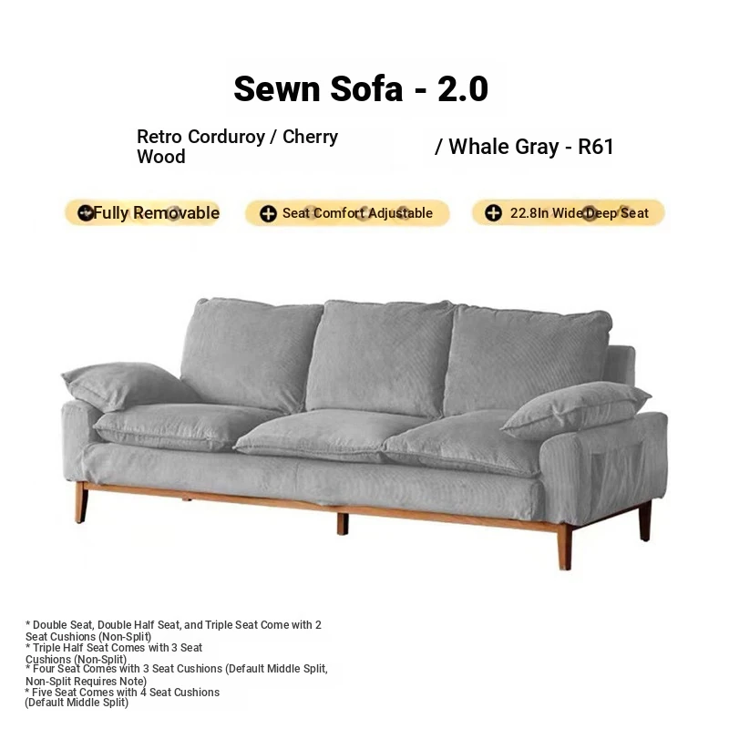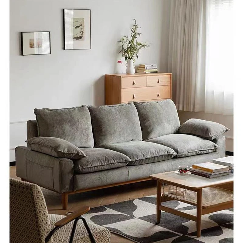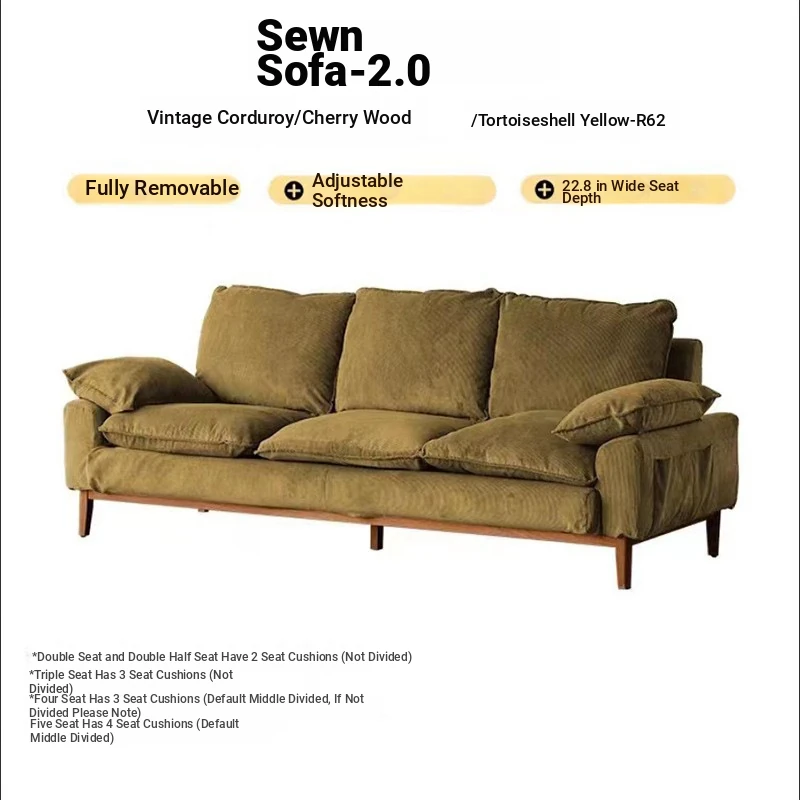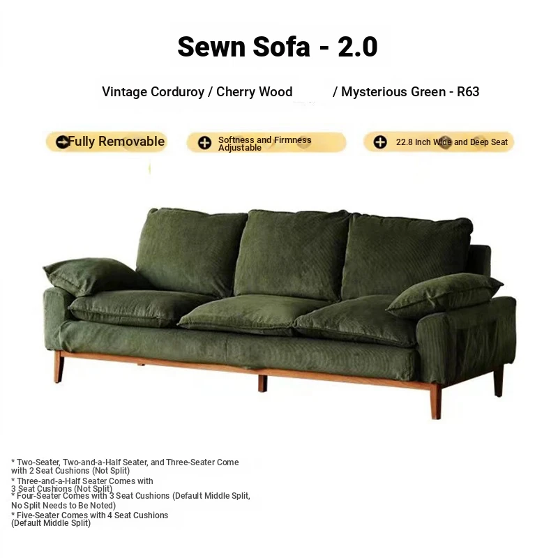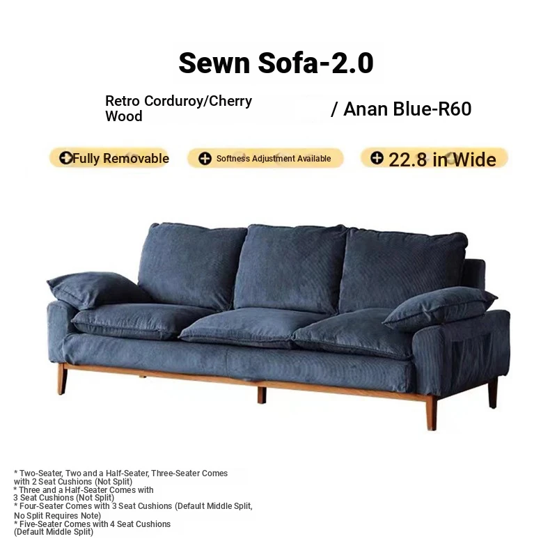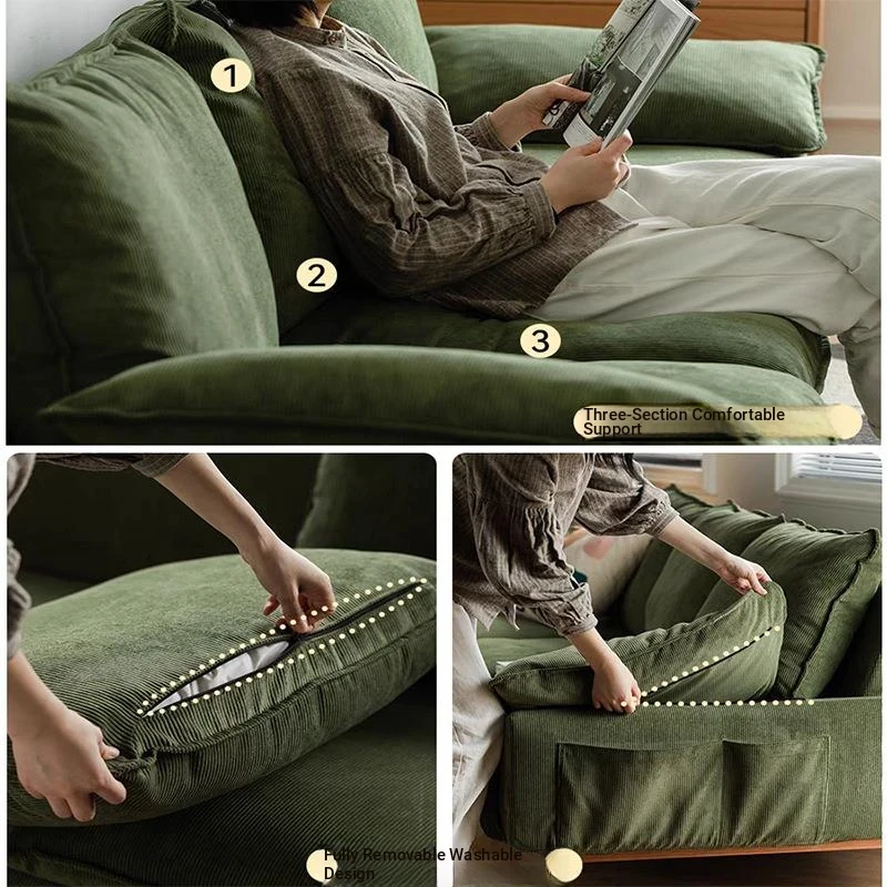 Scandinavian Fabric Sofa - Stylish Minimalist Retro Design for Small Living Rooms, Featuring Corduroy Upholstery and Solid Wood Frame, Perfect 3-Person Configuration for Cozy Spaces