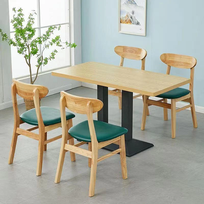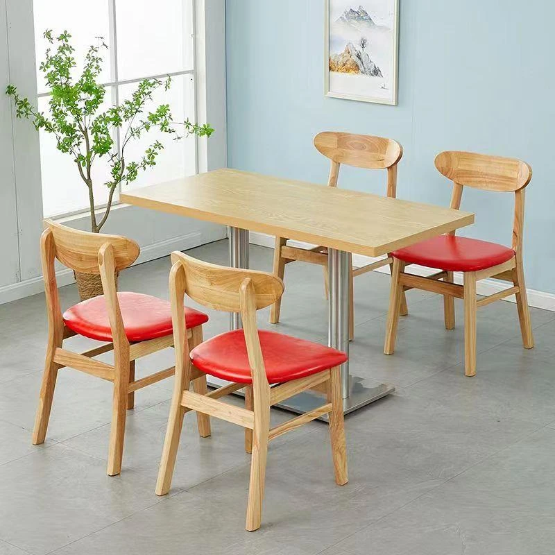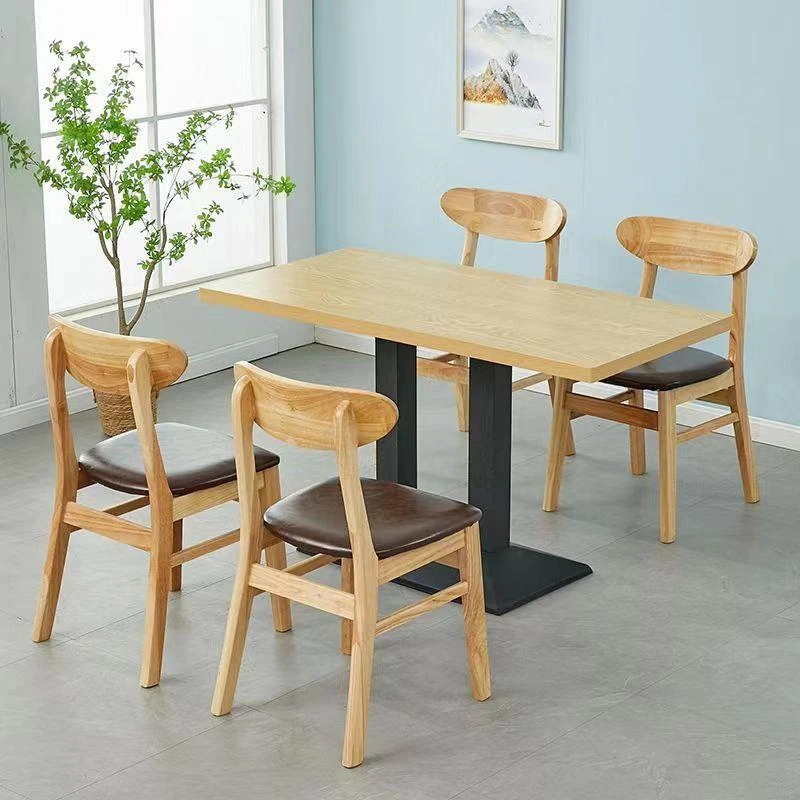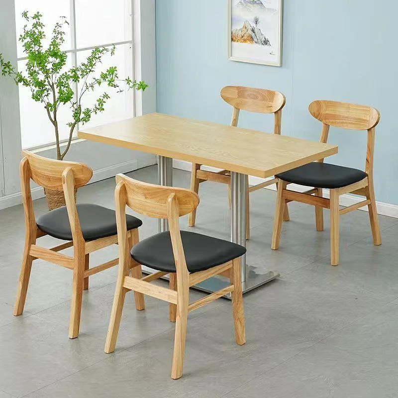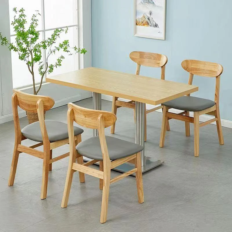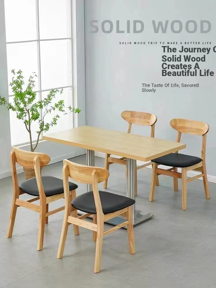 Solid Wood Restaurant Furniture Set for Staff Canteens, Tea Shops, Noodle Houses, Snack Bars, Hot Pot, and BBQ Restaurants - Durable and Stylish Dining Tables and Chairs for Commercial Use