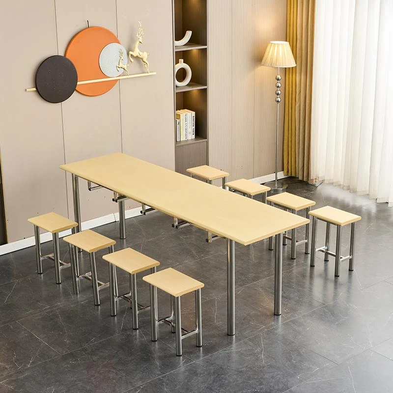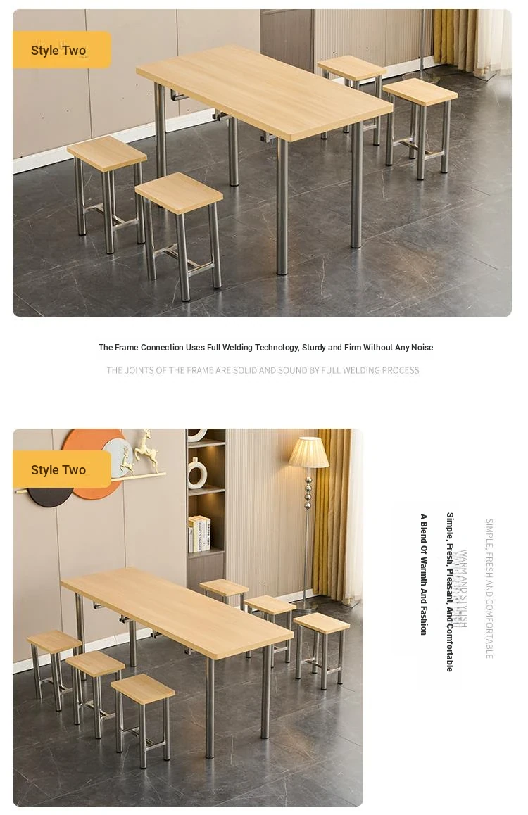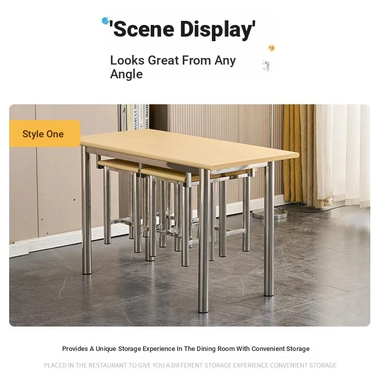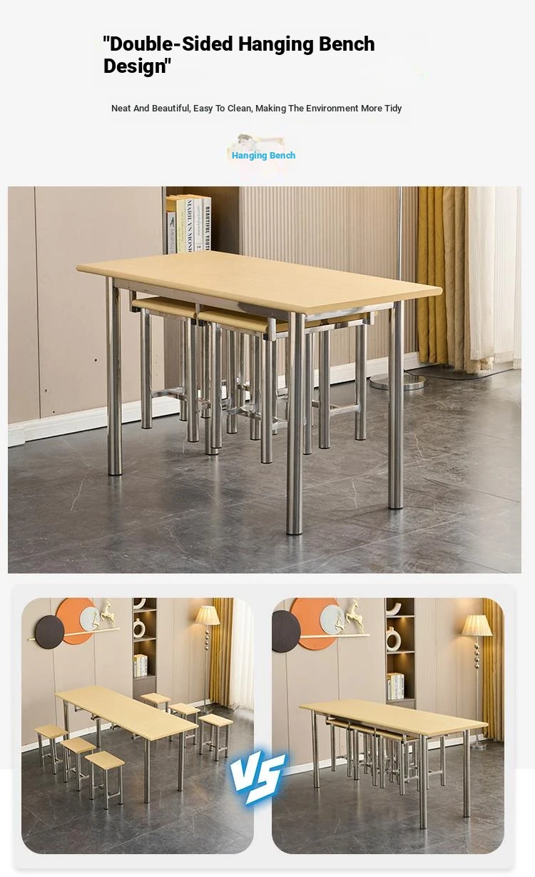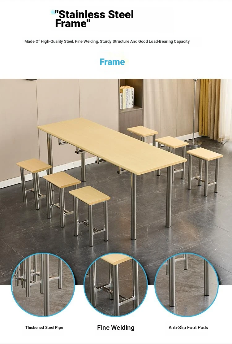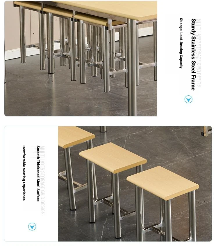 Stainless Steel Dining Table Set for Employee Canteens - Perfect for Factories and Restaurants, Comfortable Seating for 4, Durable and Stylish Design for Company Cafeterias