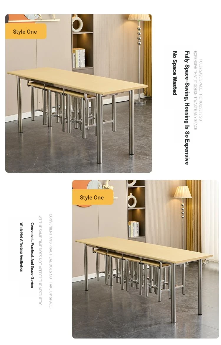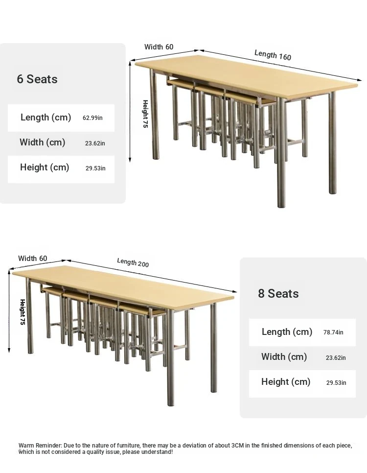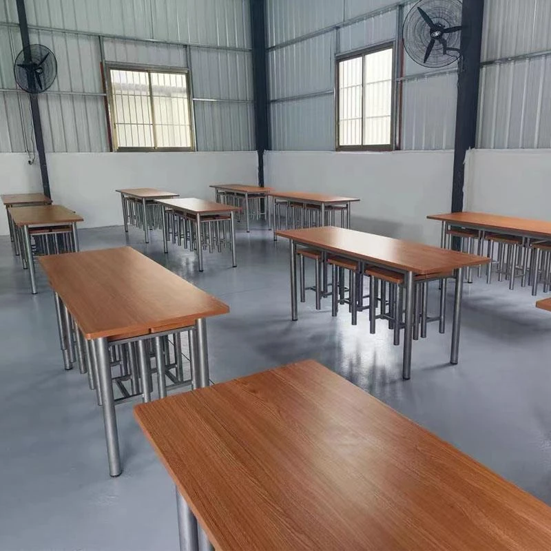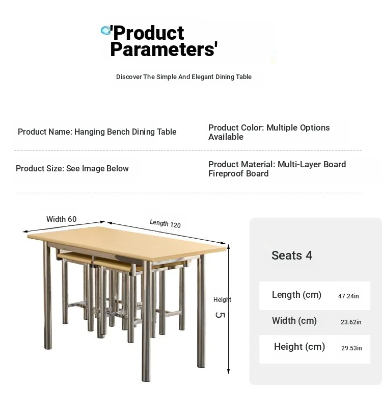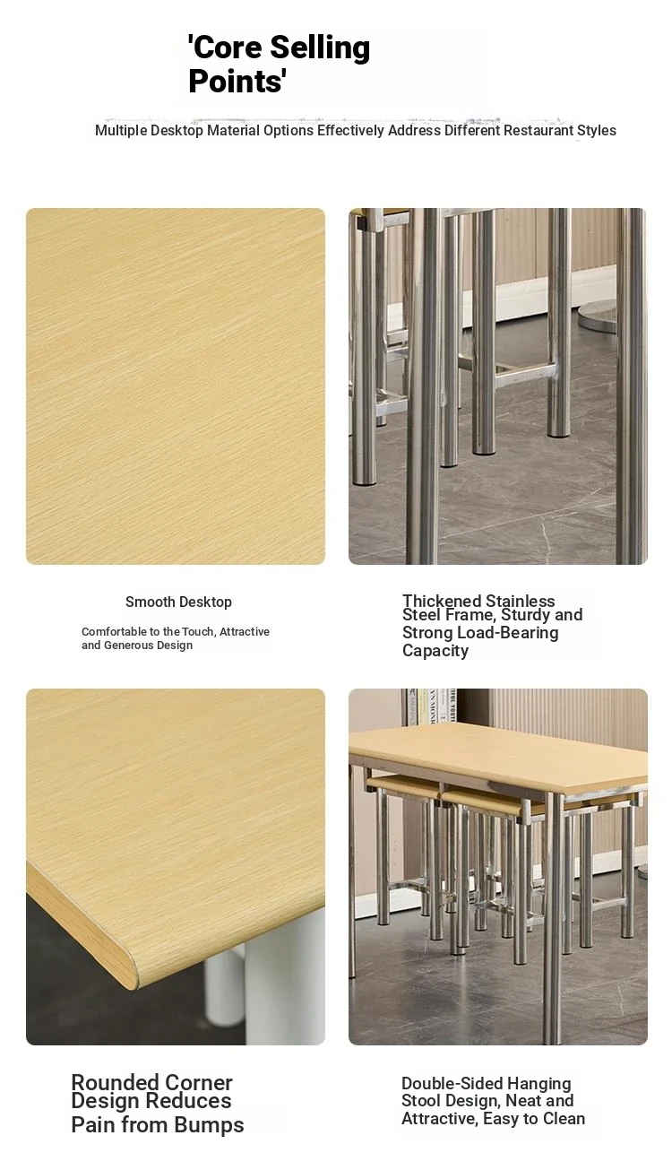 Stainless Steel Dining Table Set for Employee Canteens - Perfect for Factories and Restaurants, Comfortable Seating for 4, Durable and Stylish Design for Company Cafeterias