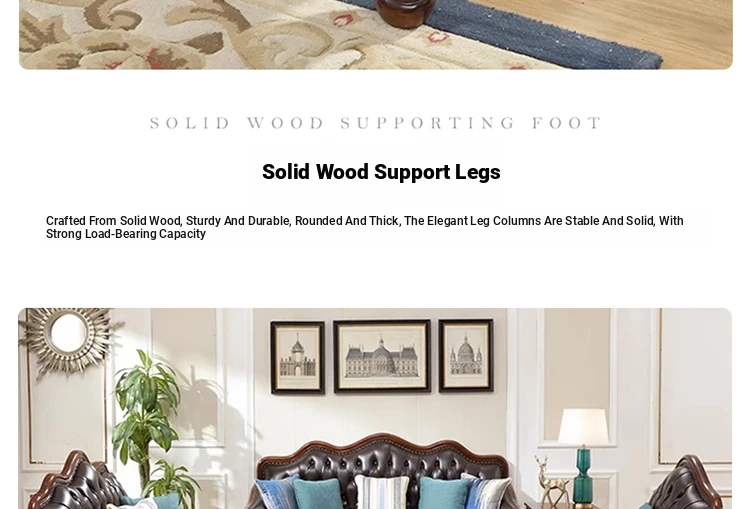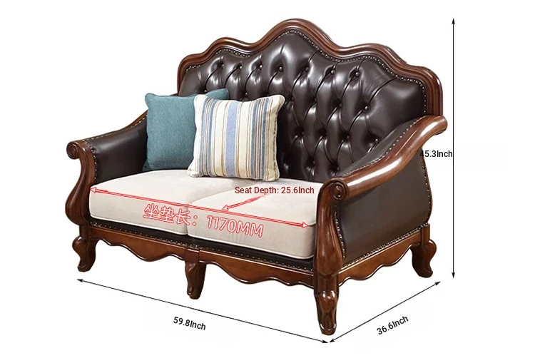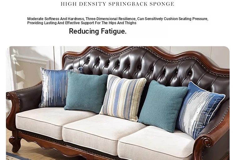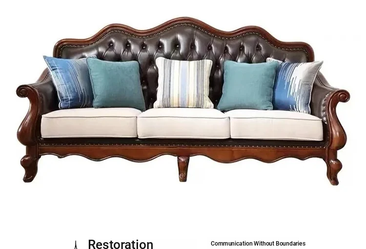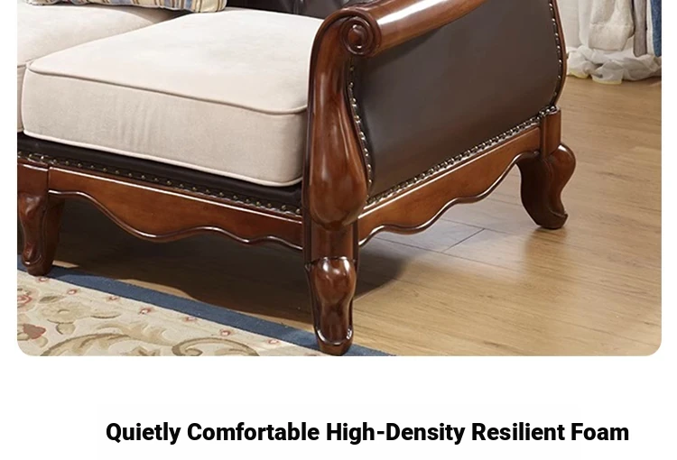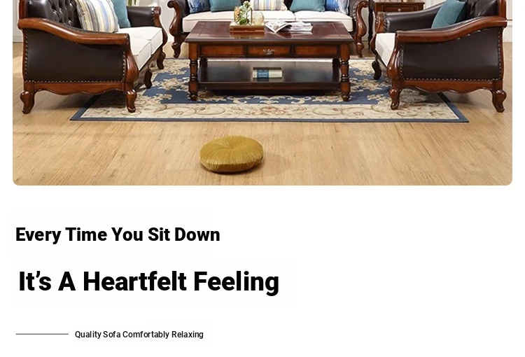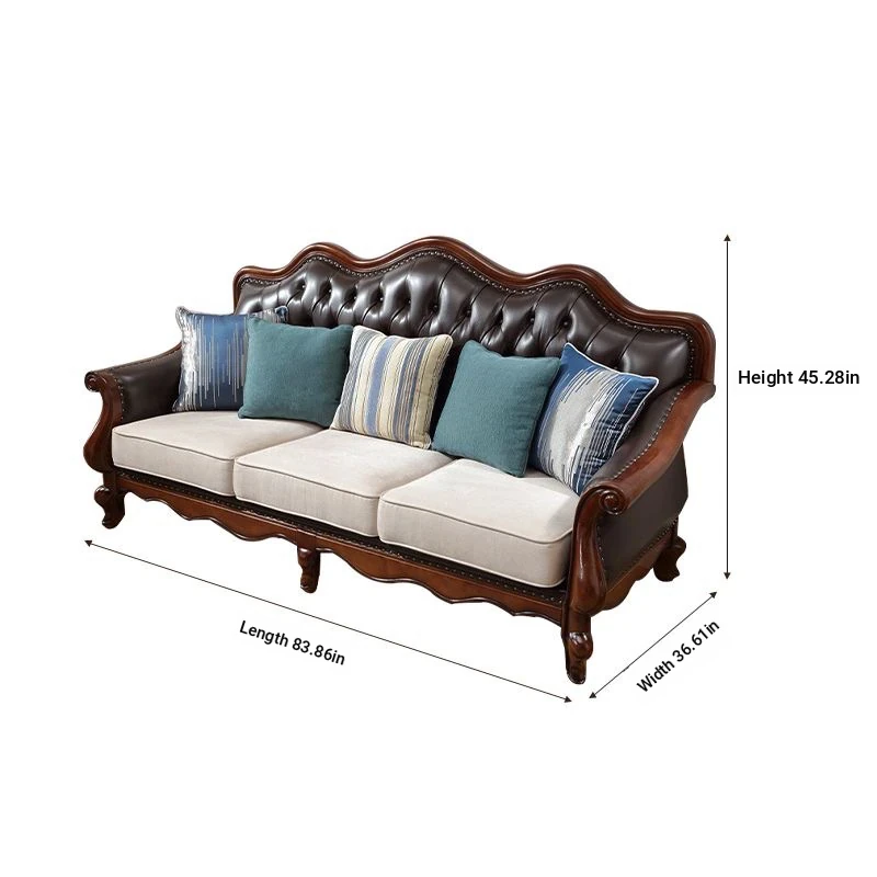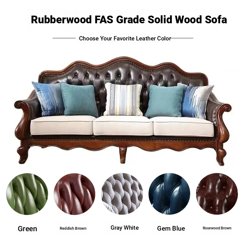 Stylish American Solid Wood & Genuine Leather Sofa Set with Coffee Table - Modern European Minimalist Design for Living Rooms of All Sizes, Comfortable 3-Seater Fabric Sofa