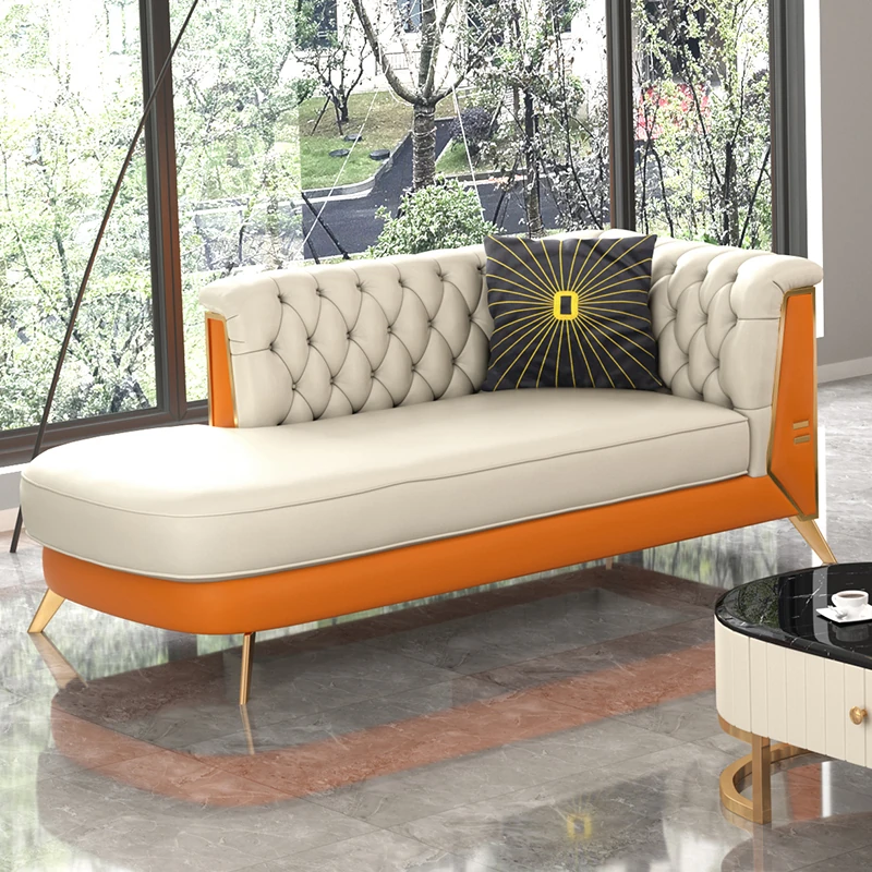 Stylish American-Style Chaise Lounge Chair for Small Spaces – Luxurious Leather Sofa Bed and Recliner for Living Room and Bedroom – Premium Top-Grain Leather Single Sofa for Ultimate Relaxation