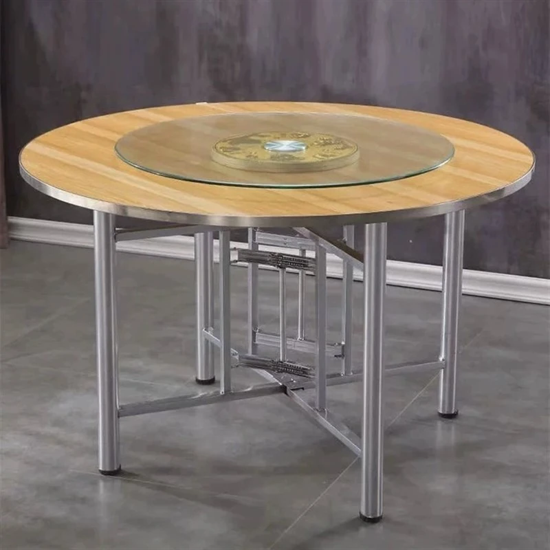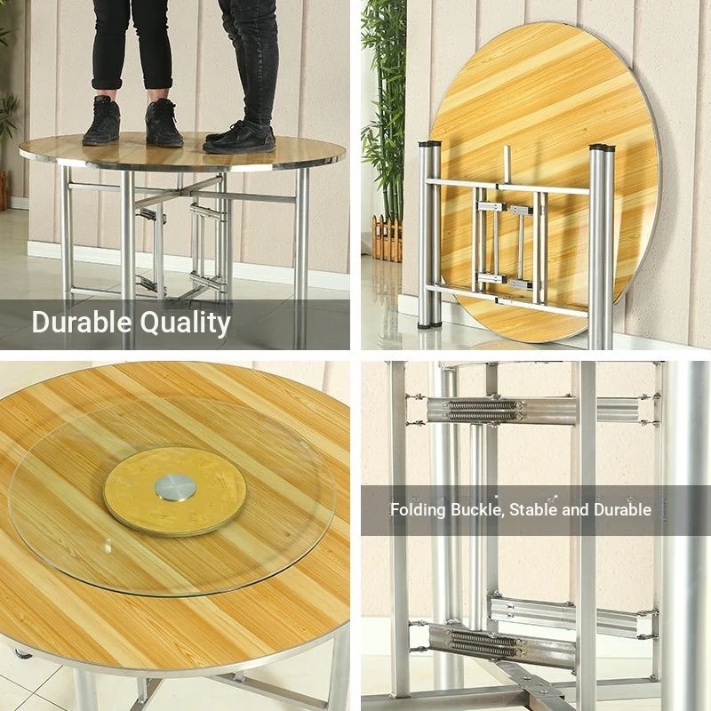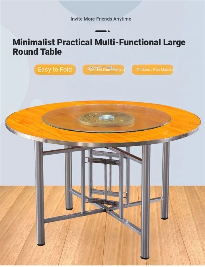 Thickened Folding Dining Table with Rotating Tray - 12-Person Large Round Tabletop for Home Dining, Ideal for Restaurants and Cafes, Perfect for 15-Person Gatherings