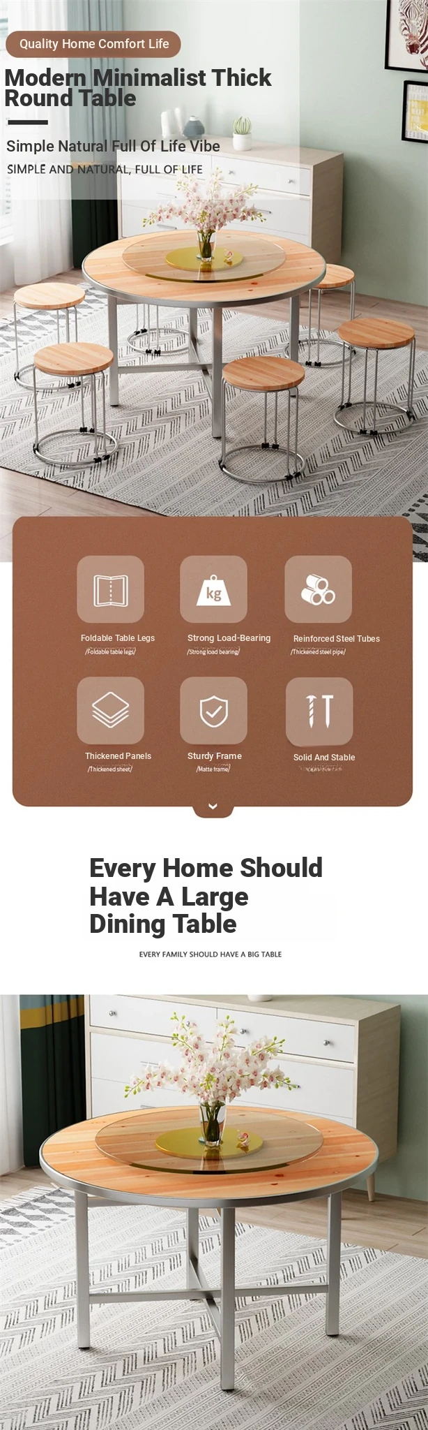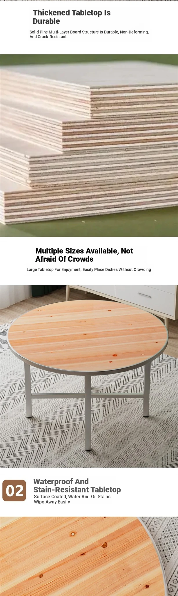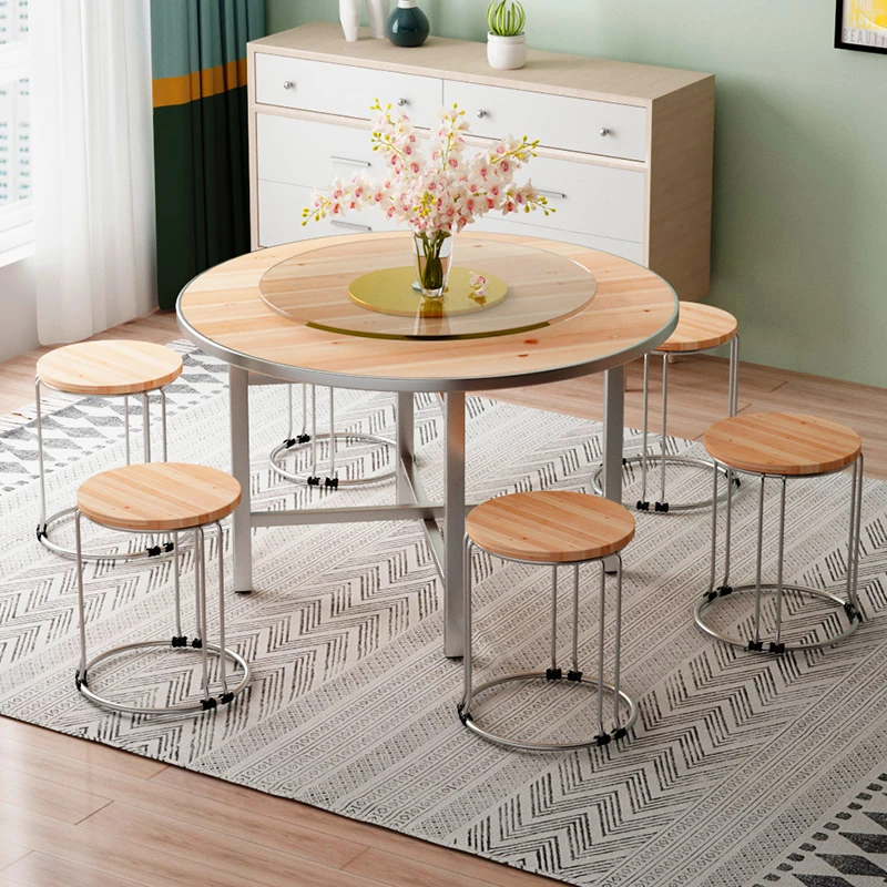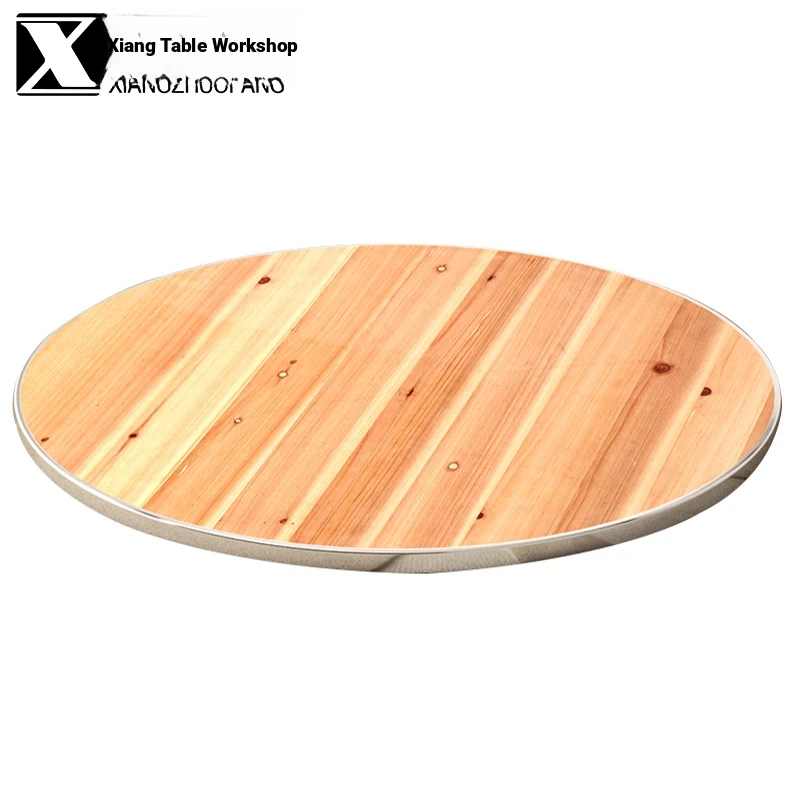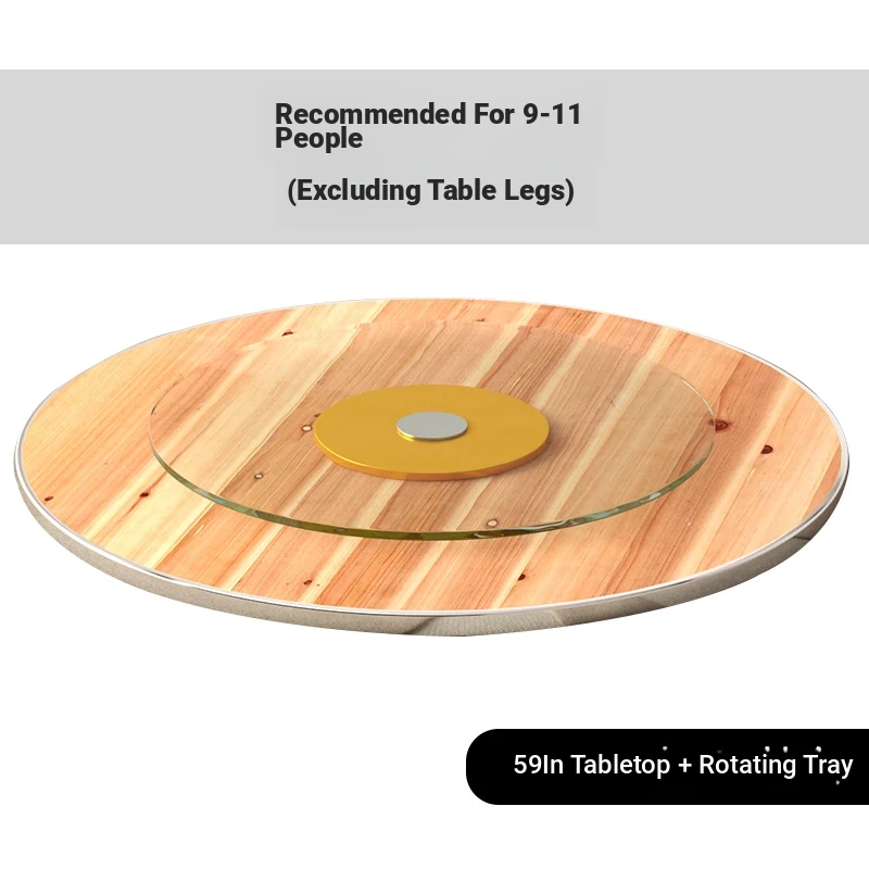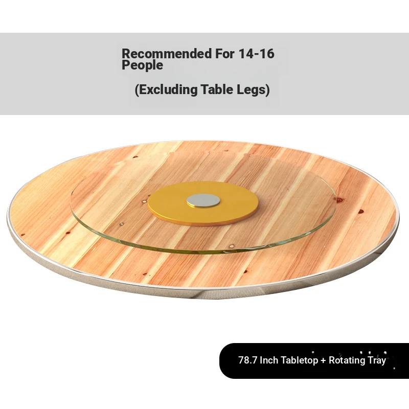 Thickened Solid Wood Round Dining Table with Tempered Glass Lazy Susan - Ideal for Home Use, Accommodates 10-15 People - Perfect for Restaurants and Gatherings!