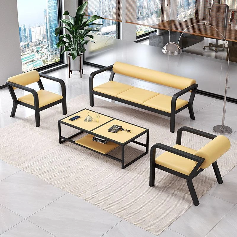 Trendy Office Sofa for Business Reception - Stylish Two-Person Compact Waiting Chair for Small Spaces - Modern Iron Frame Design