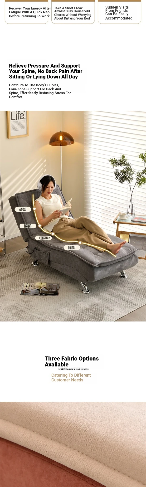 Versatile Chaise Lounge Chair for Small Spaces - Perfect for Bedrooms, Living Rooms, and Balconies! Foldable Recliner for Afternoon Naps and Relaxation - Ideal for Cozy Homes!