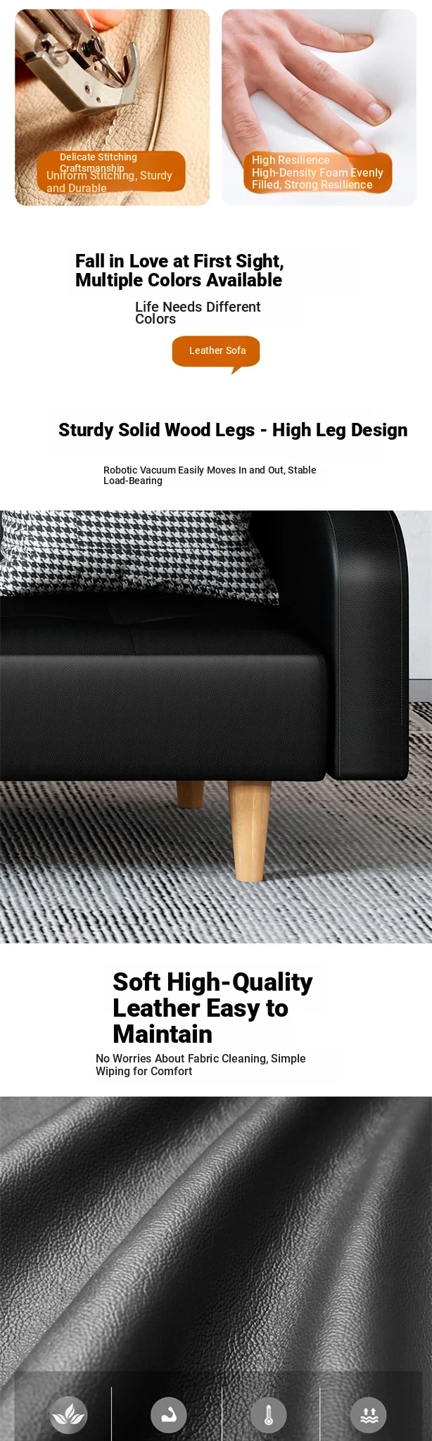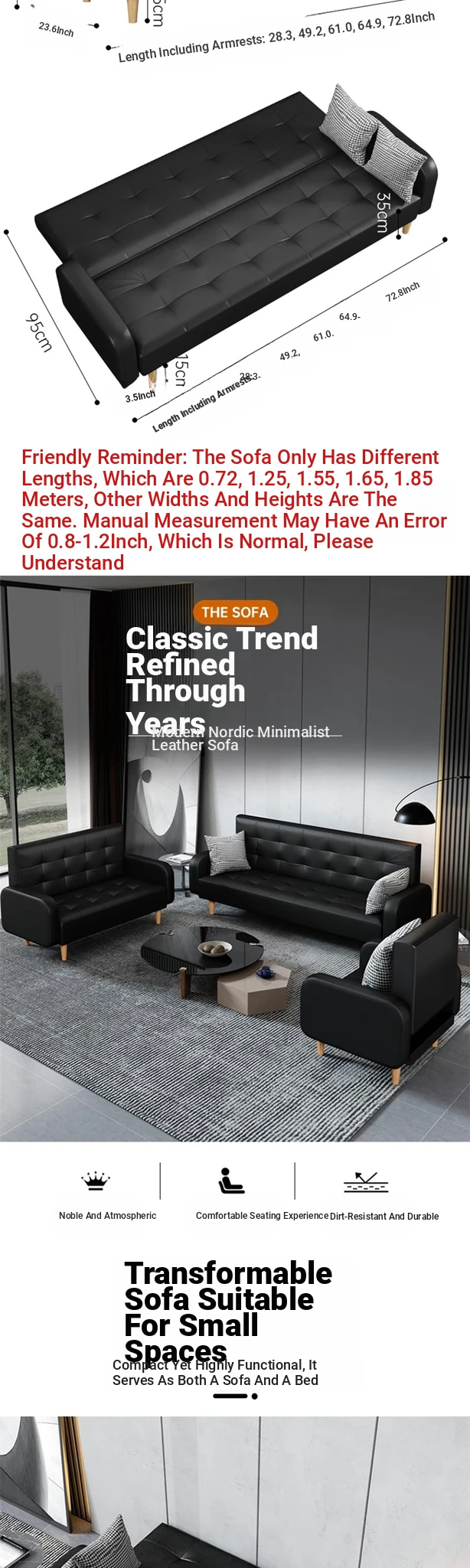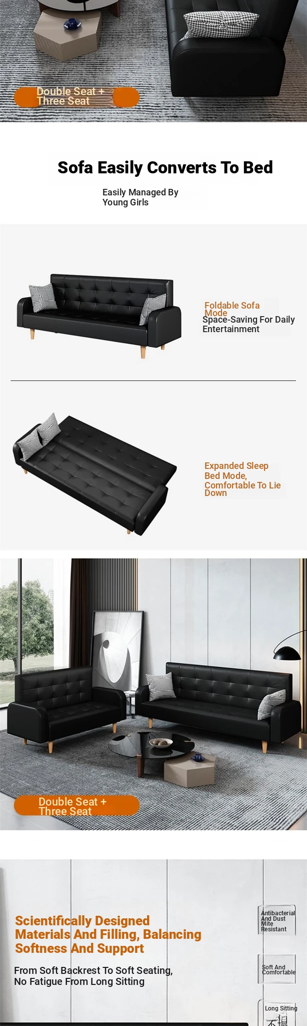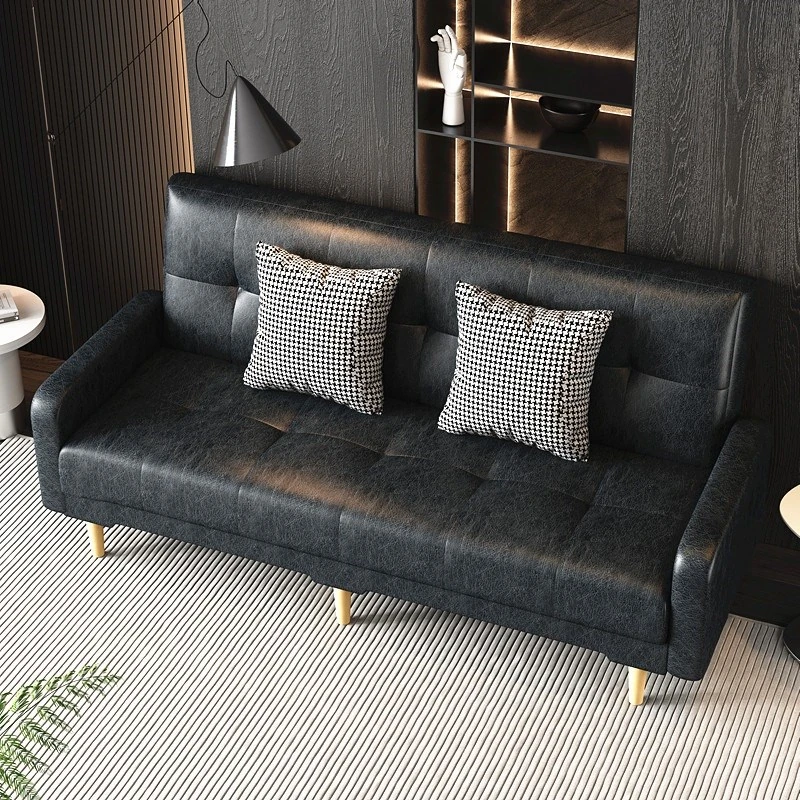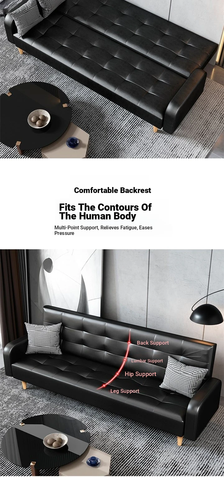 Versatile Folding Leather Sofa Bed for Small Spaces - Ideal for Rentals! Stylish 2-in-1 Double Sofa for Living Room, Bedroom, or Balcony - Perfect for Cozy Apartments!