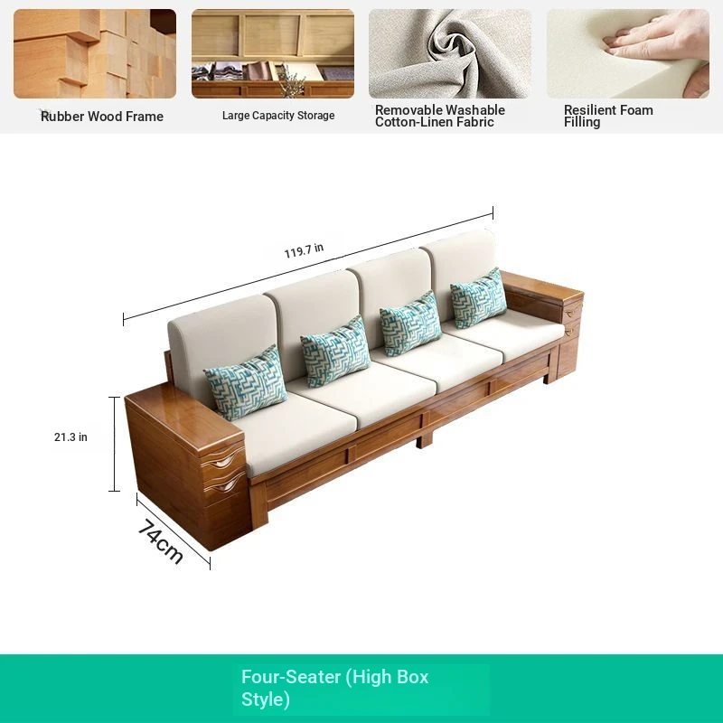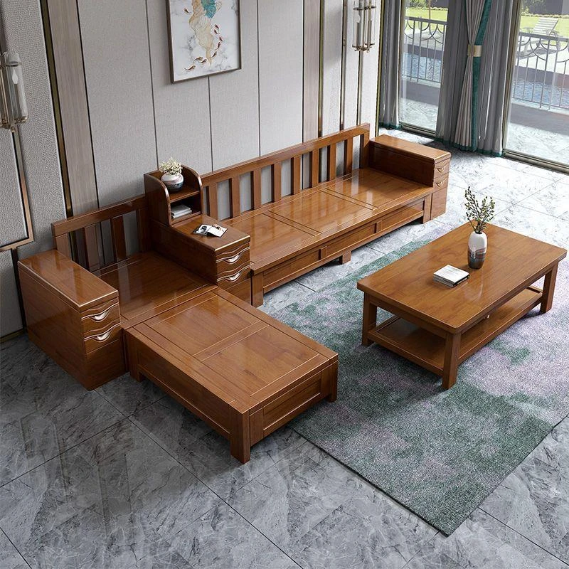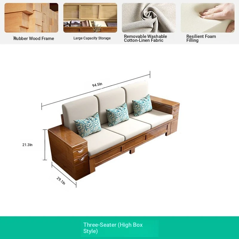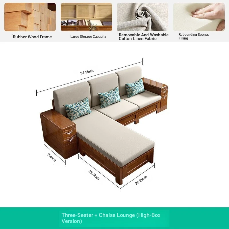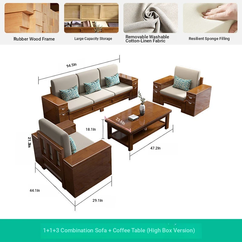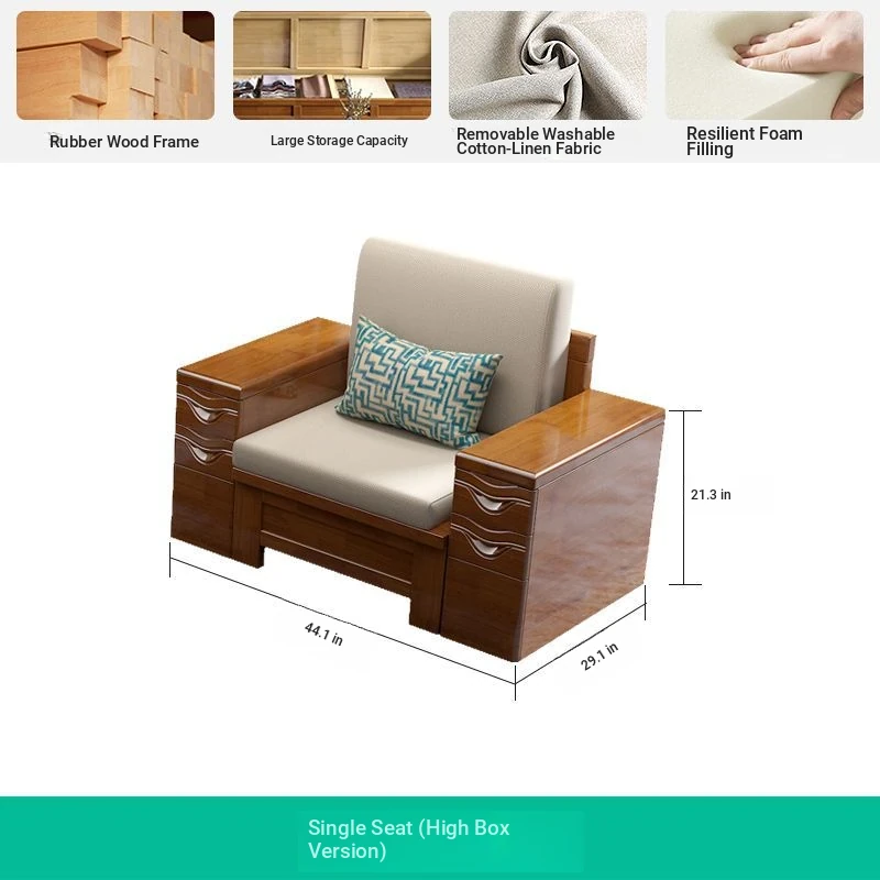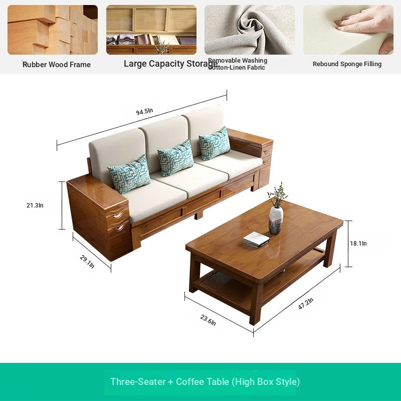 Versatile Solid Wood Sofa Set for Small Spaces - Stylish New Chinese Design with High Storage Capacity, Perfect for Year-Round Comfort