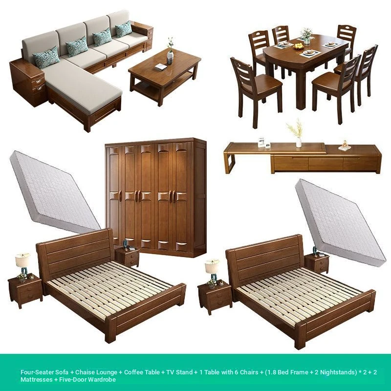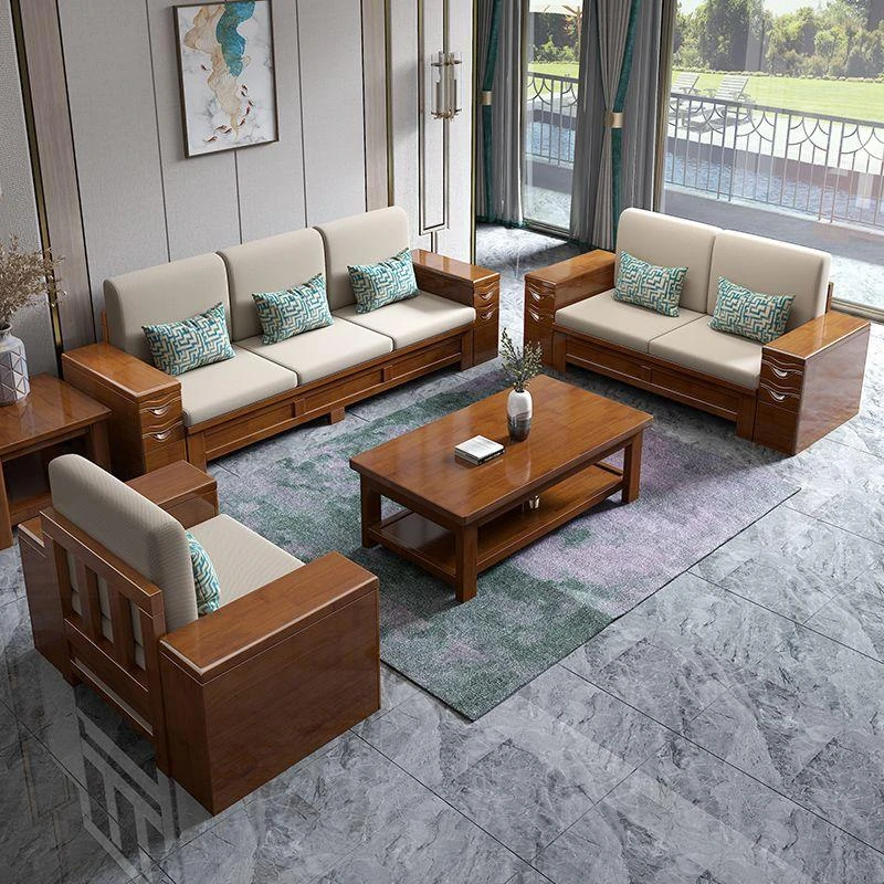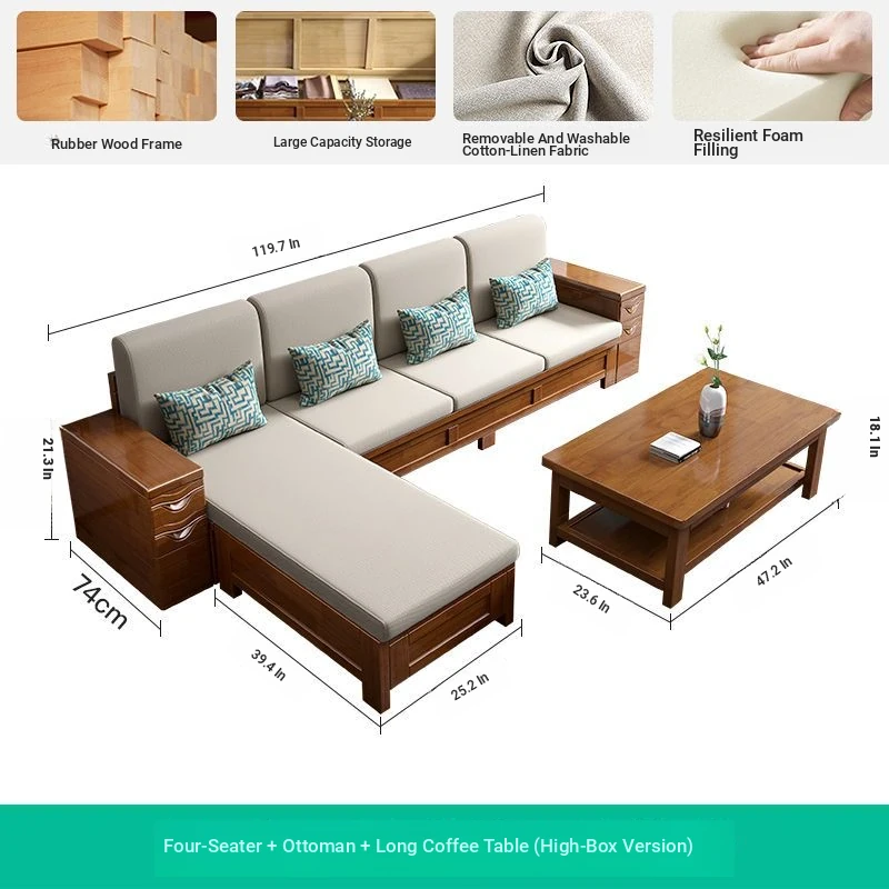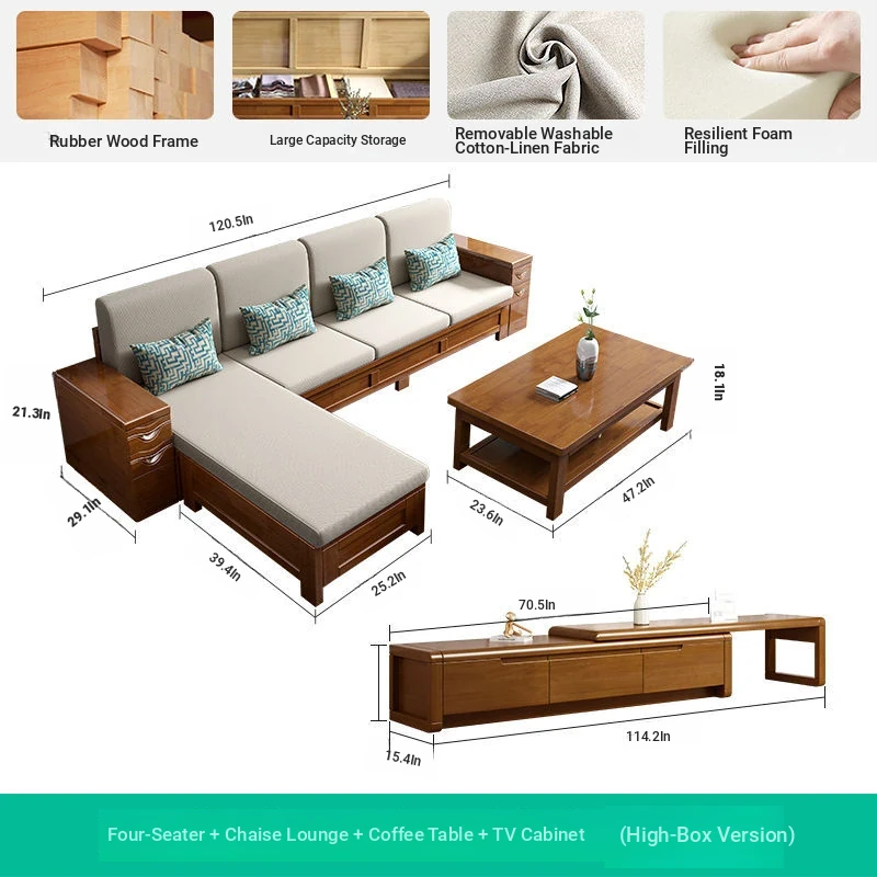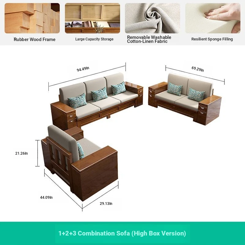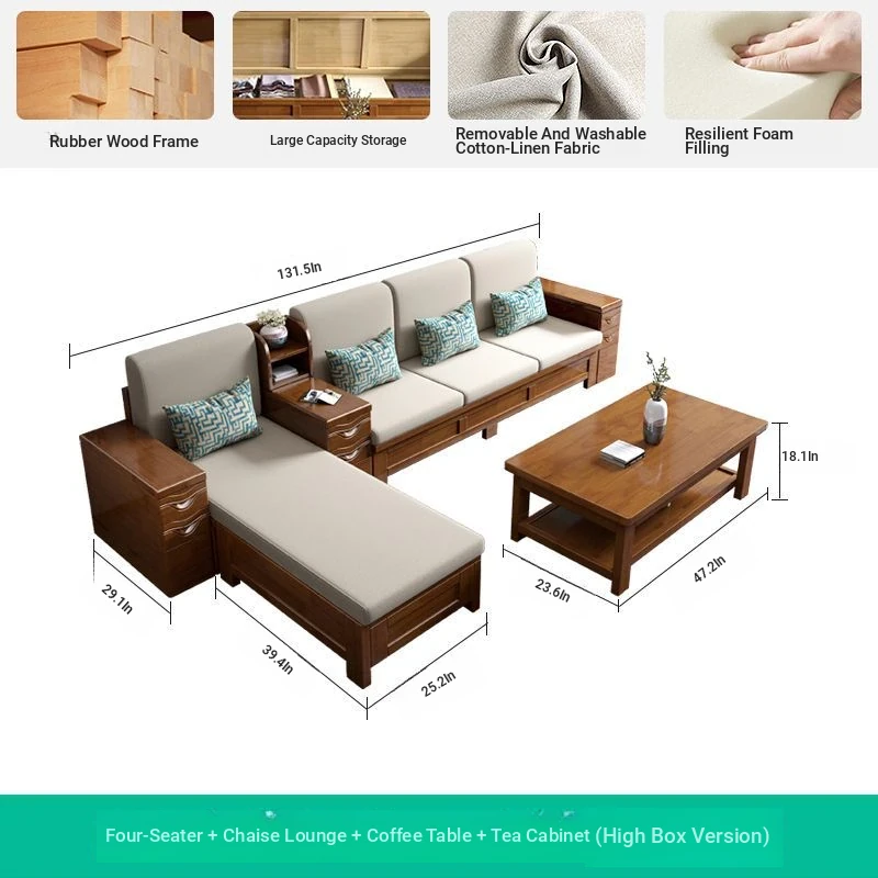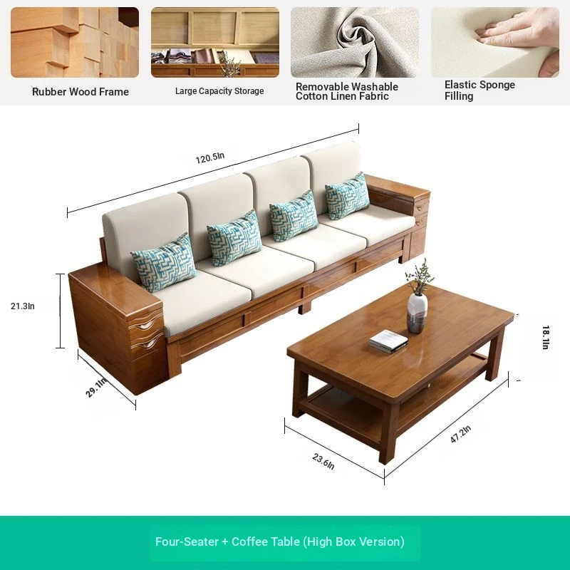 Versatile Solid Wood Sofa Set for Small Spaces - Stylish New Chinese Design with High Storage Capacity, Perfect for Year-Round Comfort