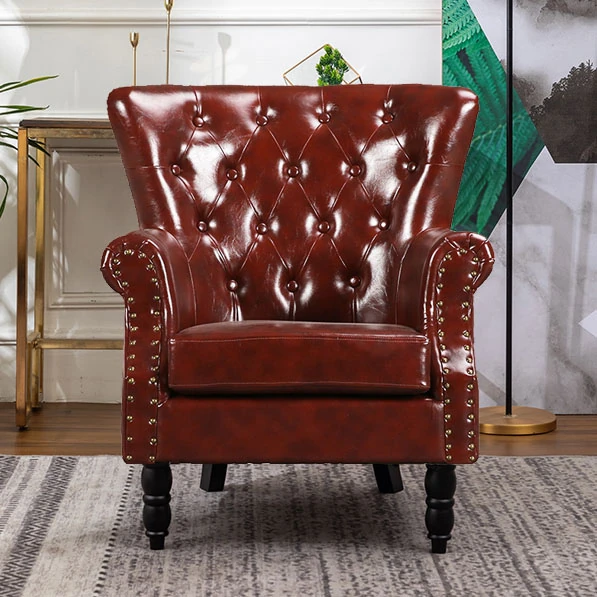 Vintage Single Leather Sofa - Stylish American Bar & Lounge Chair for Small Living Rooms & Hotels - Special Price on Trendy Tiger Chair