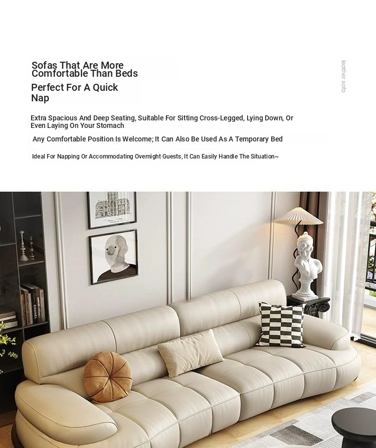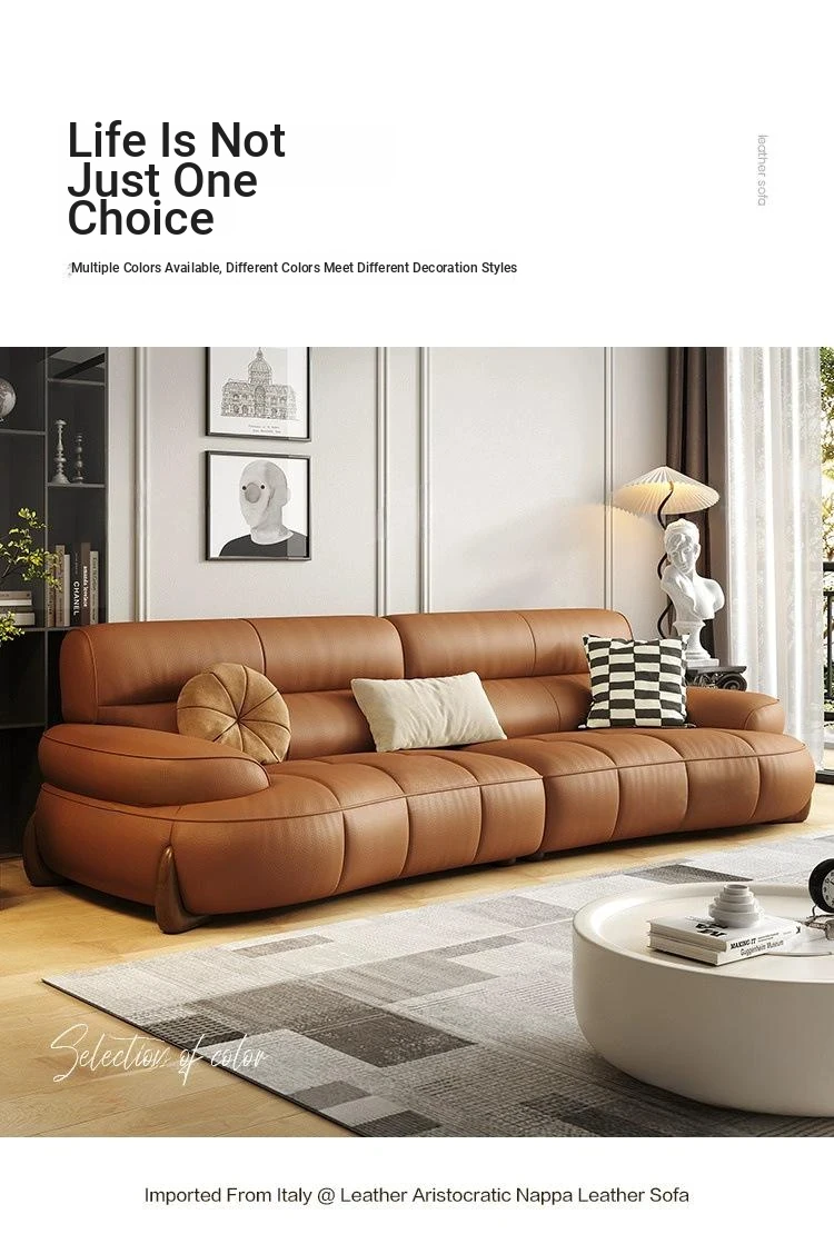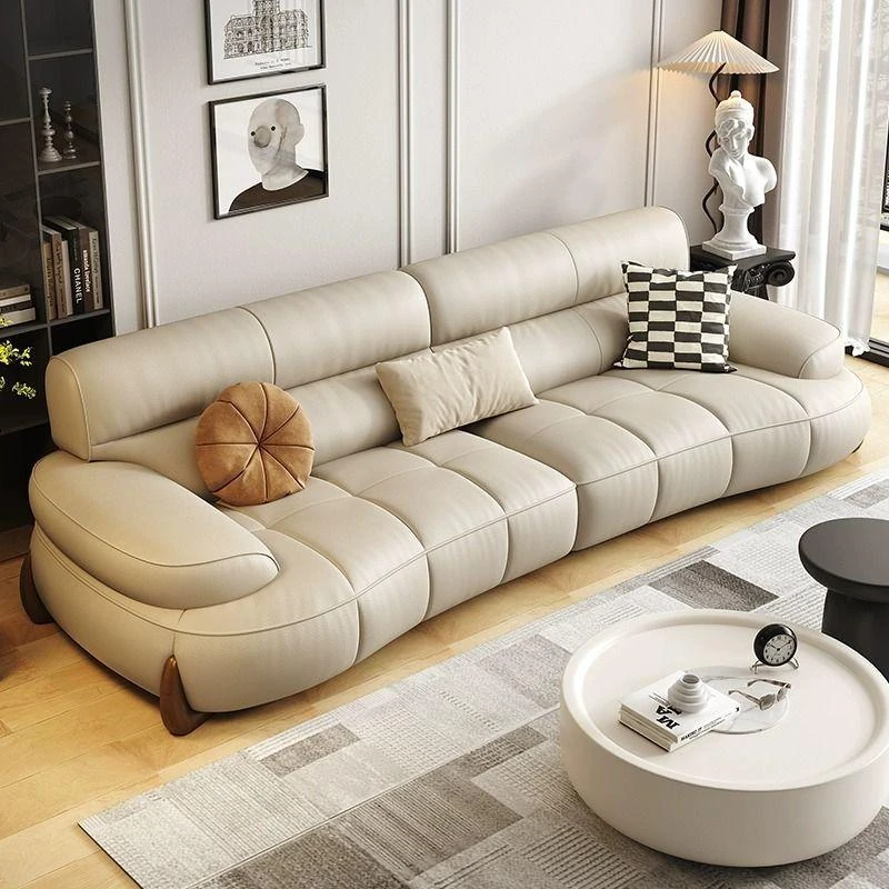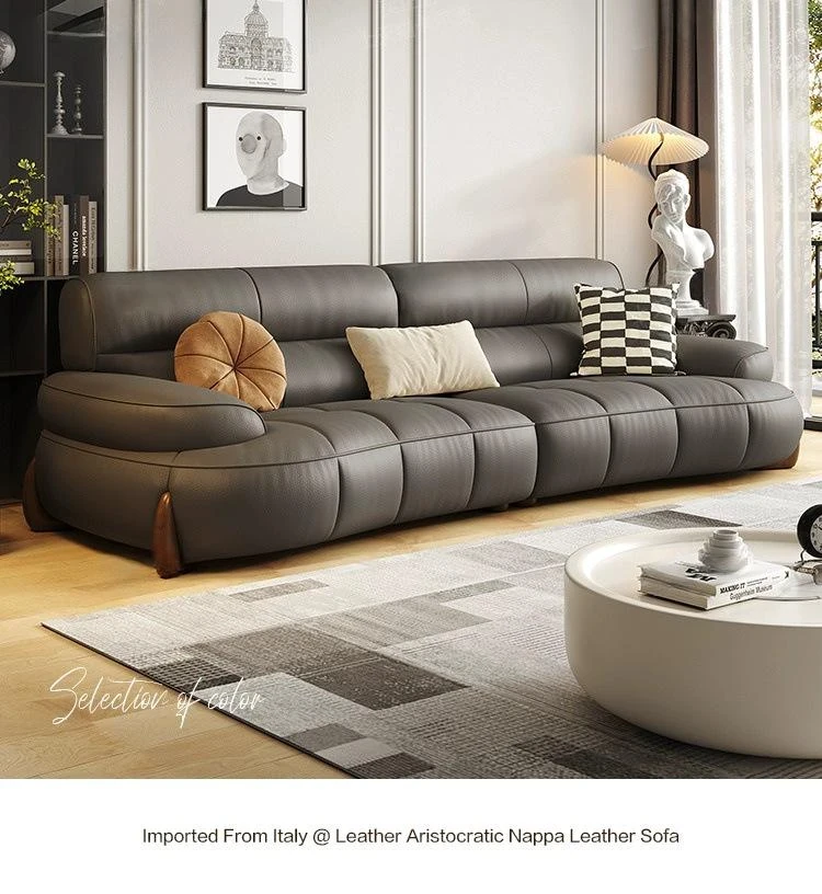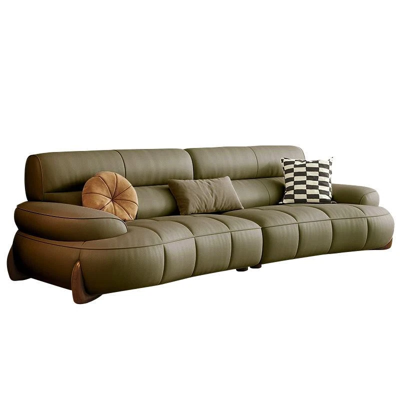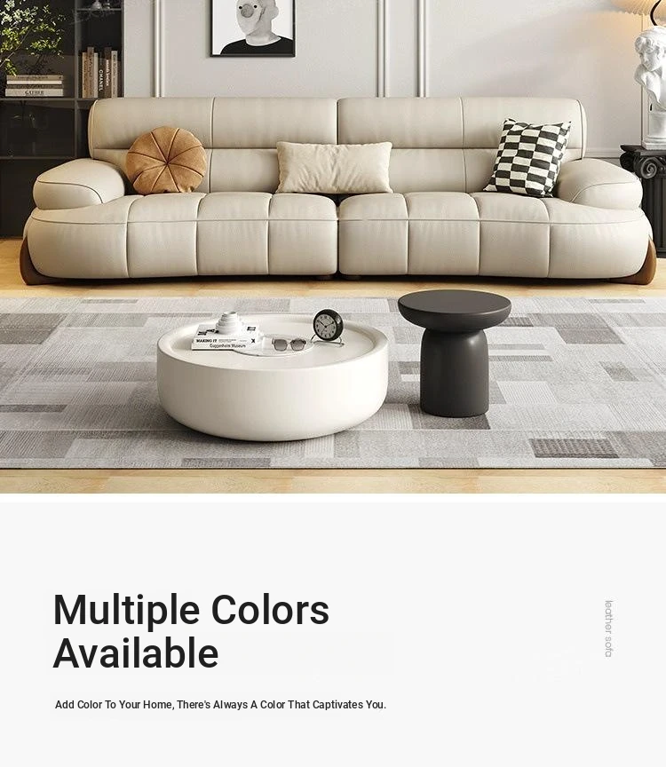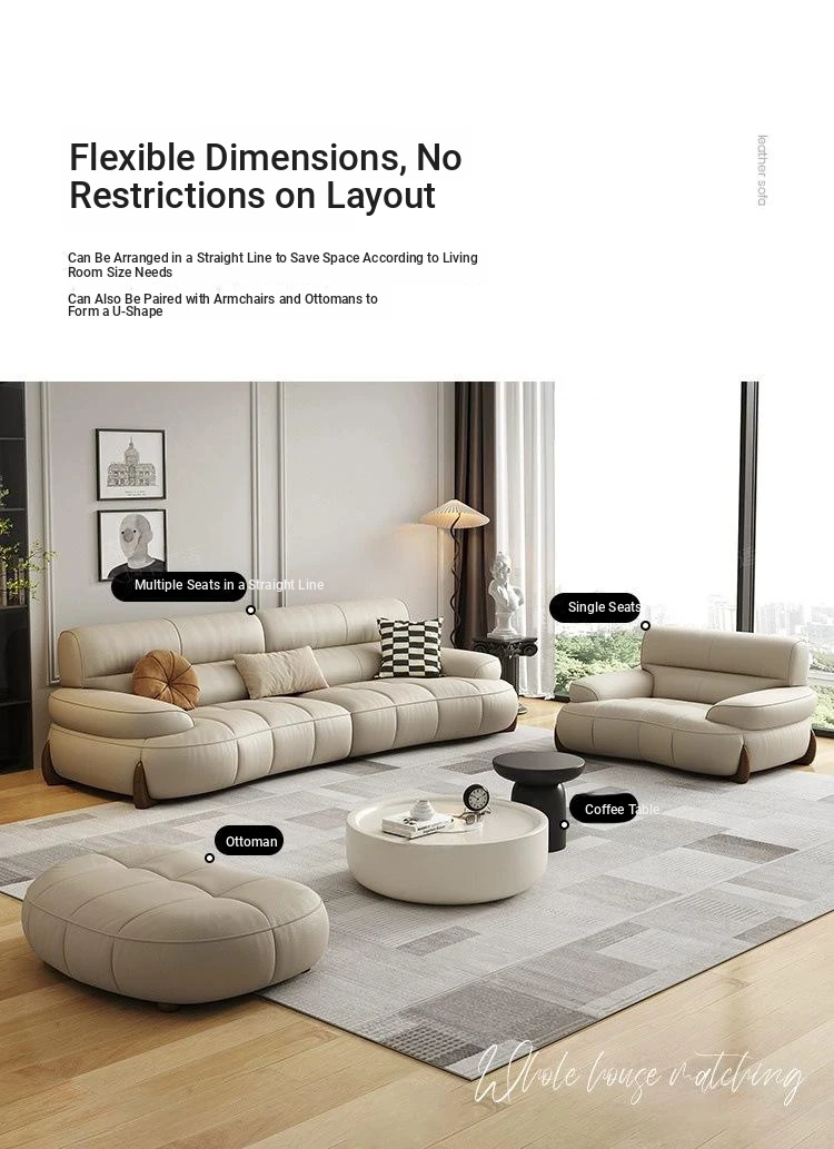 W* American Minimalist Genuine Leather Curved Piano Key Sofa - High Back Top Layer Cowhide Sofa for Living Room, Perfect for Small to Medium Spaces