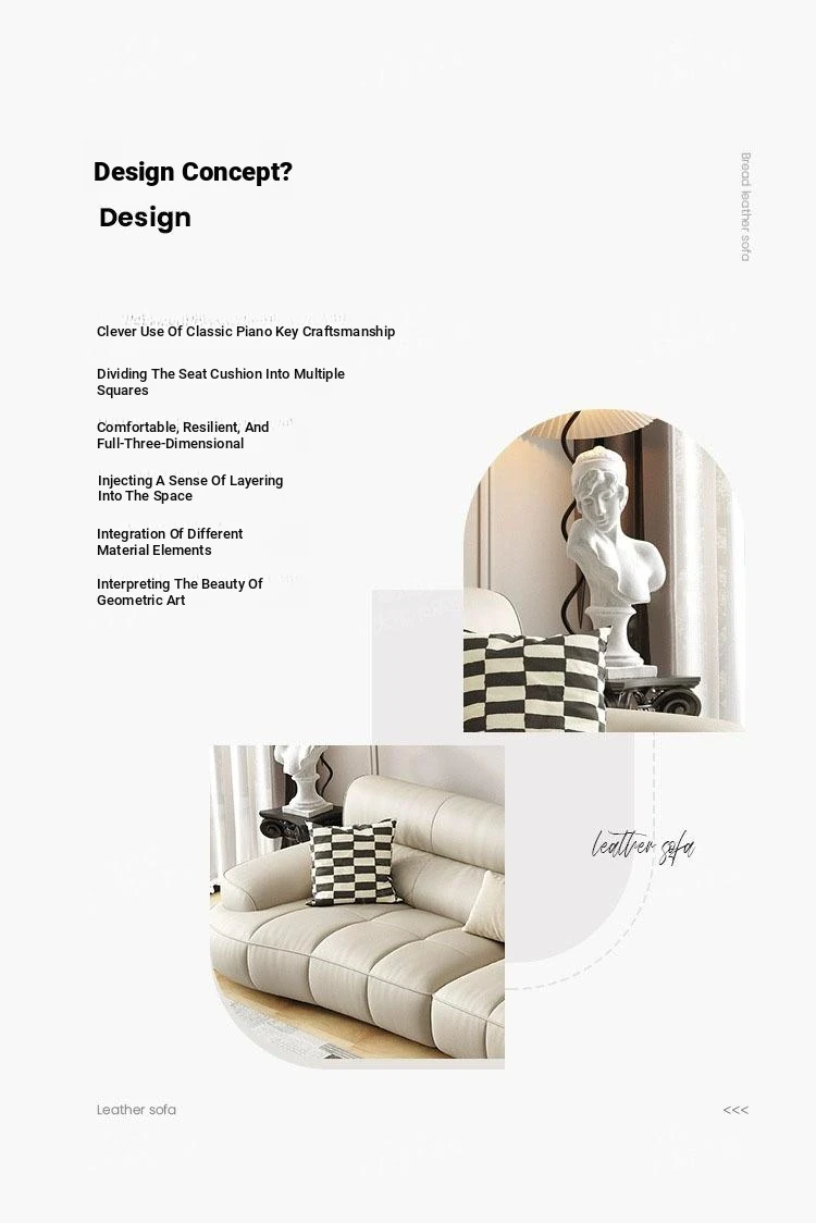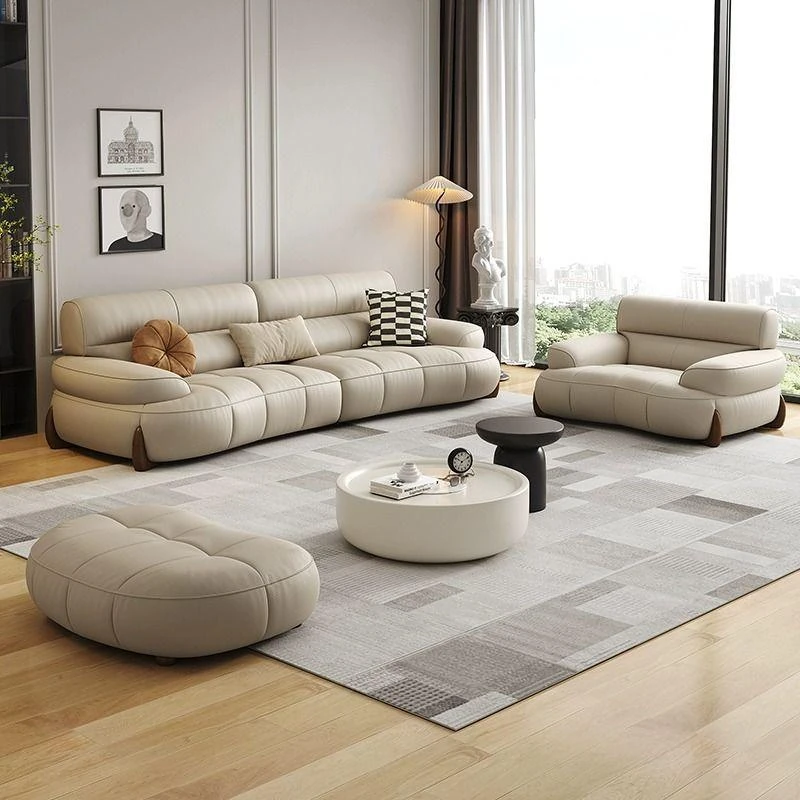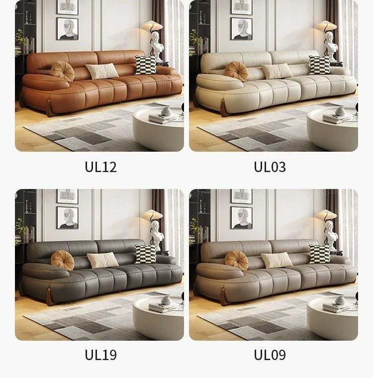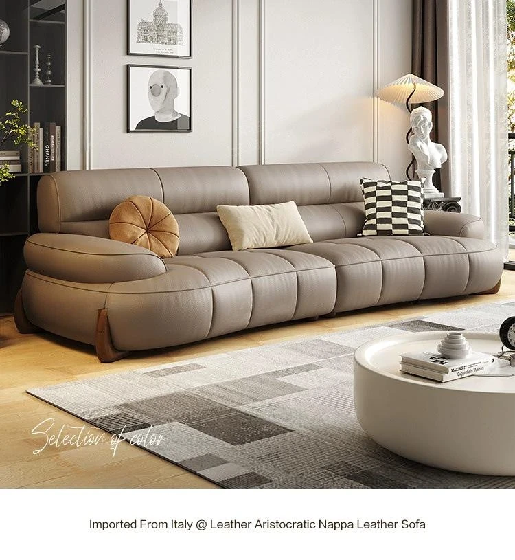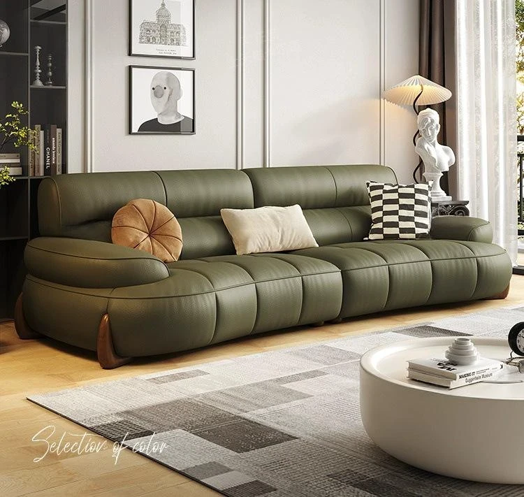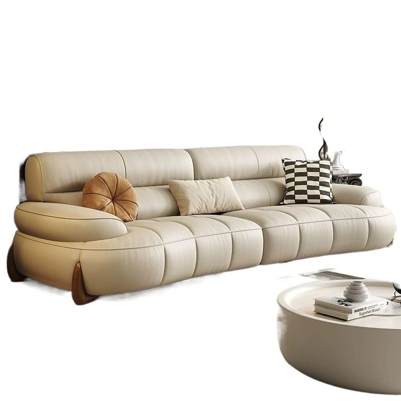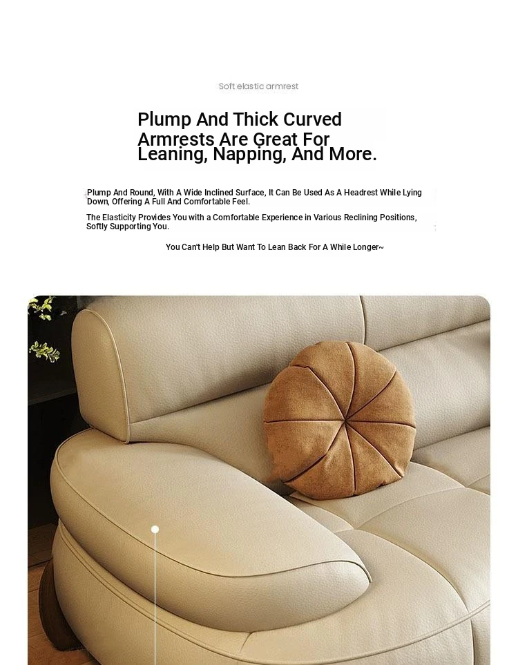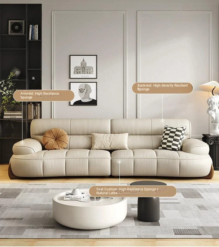 W* American Minimalist Genuine Leather Curved Piano Key Sofa - High Back Top Layer Cowhide Sofa for Living Room, Perfect for Small to Medium Spaces