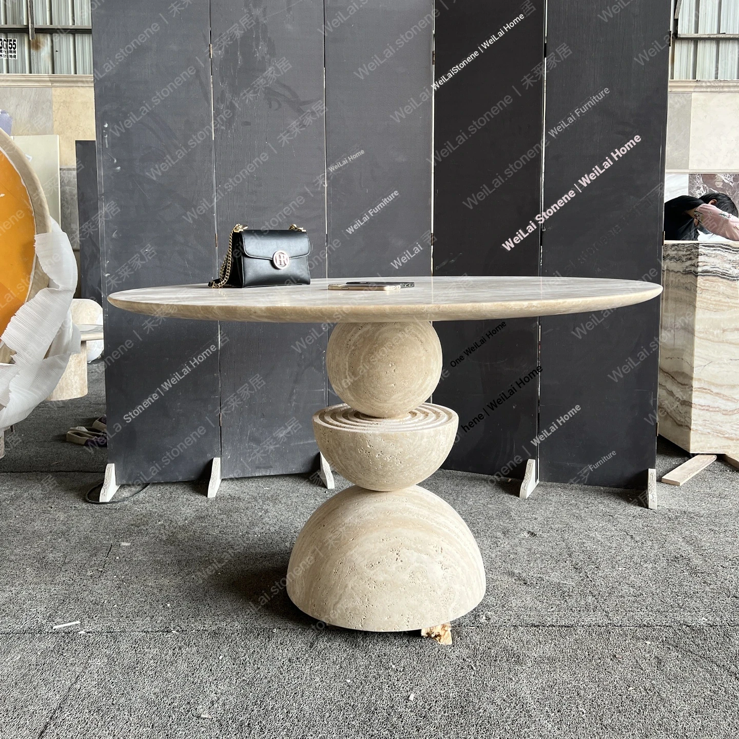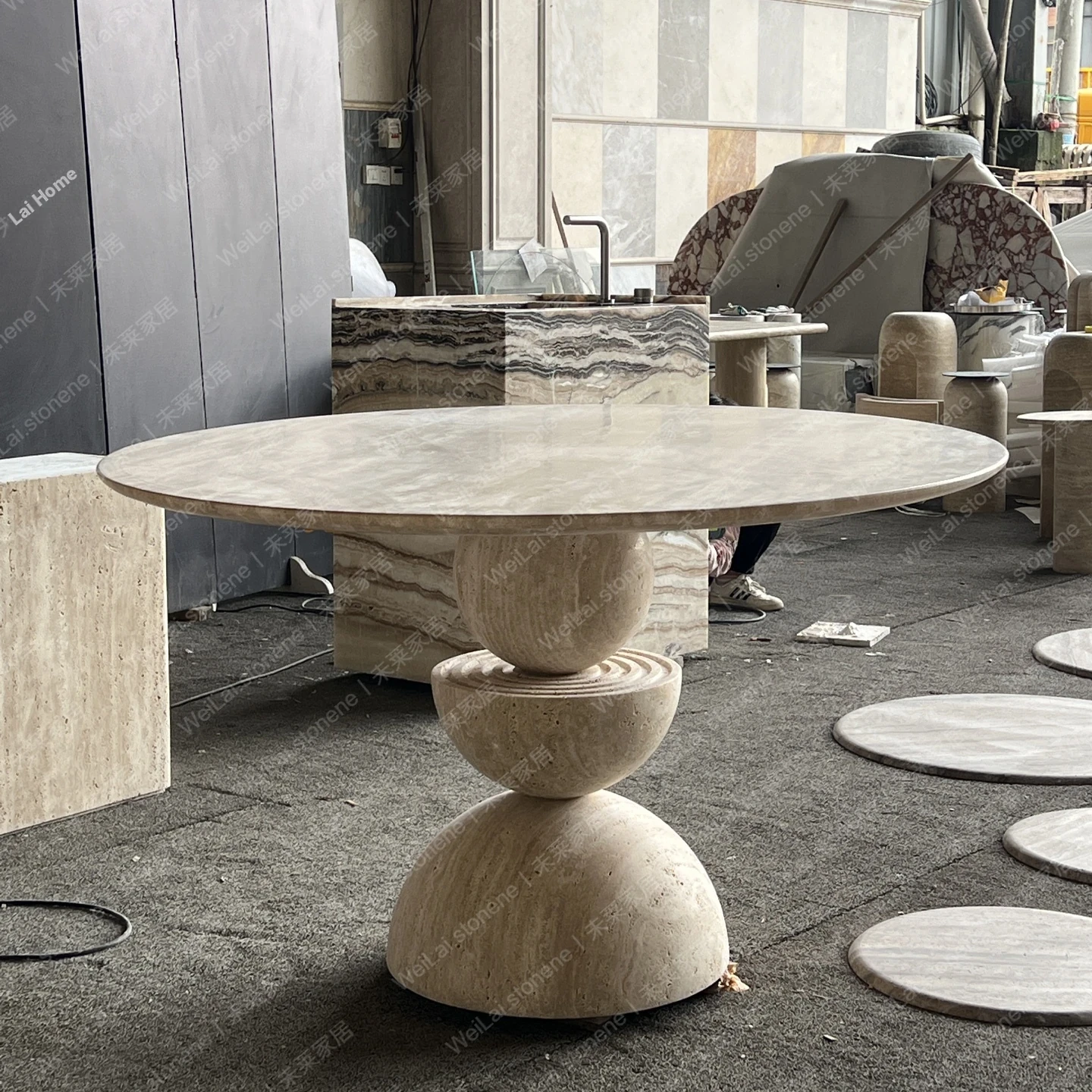 "Wabi-Sabi Natural Stone Round Dining Table – Elegant Design for Modern Minimalist Hotels and Clubs, Perfect for Meetings and Gatherings"
