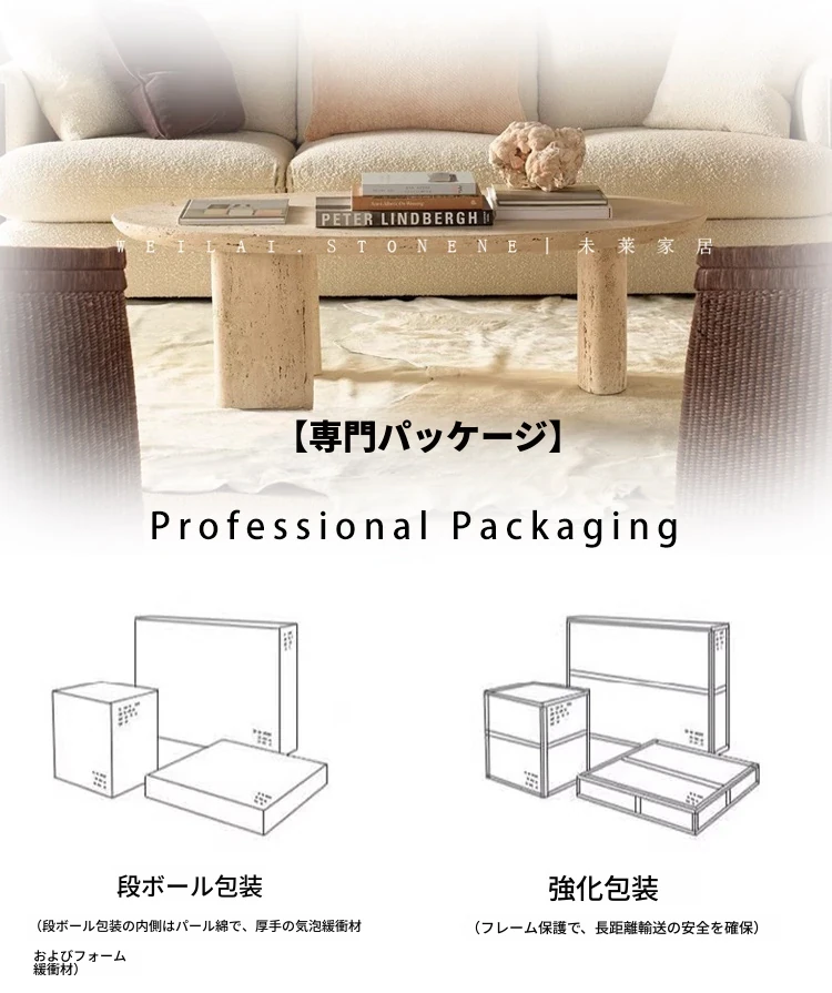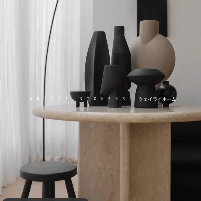 2025年新作!天然洞石を使用した現代的でシンプルなデザインの創造的なダイニングテーブル。侘寂の美を感じる高級感あふれるラウンドテーブルで、リビング空間を格上げ!